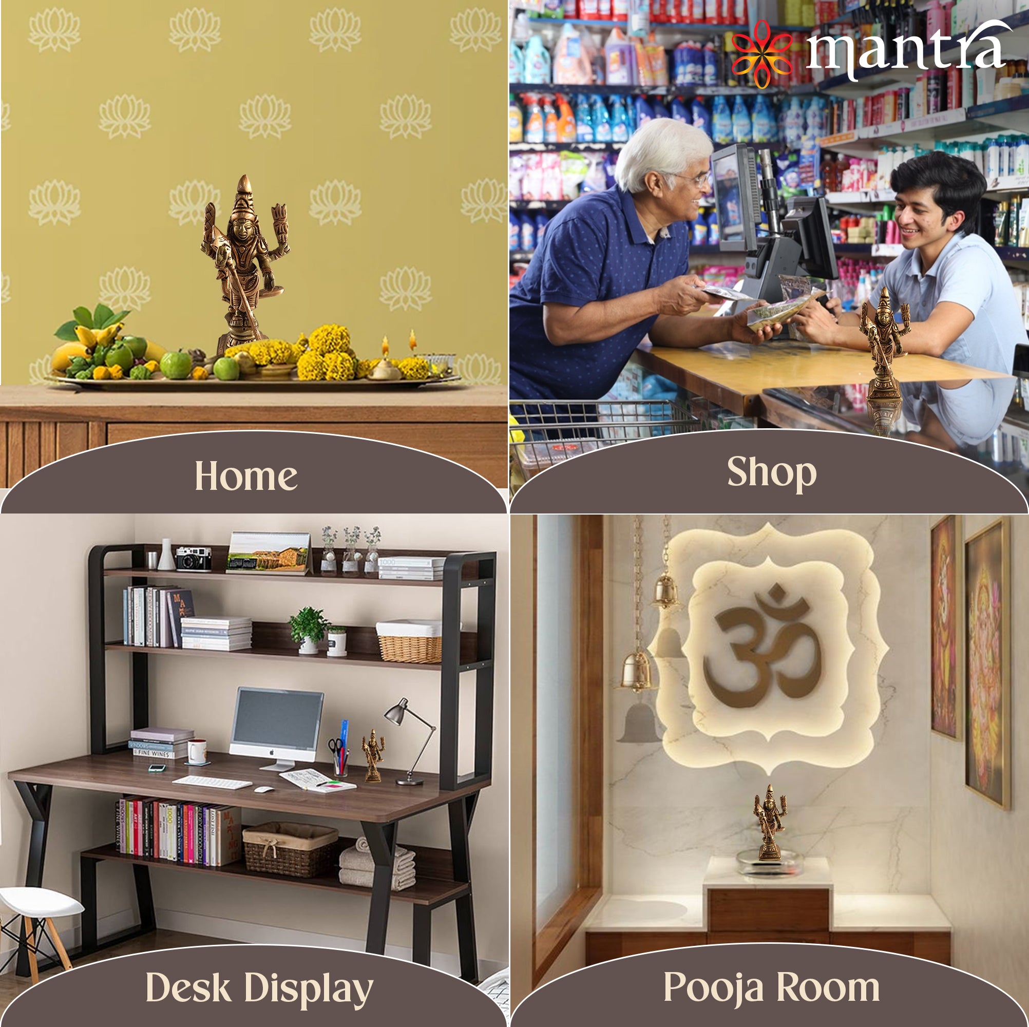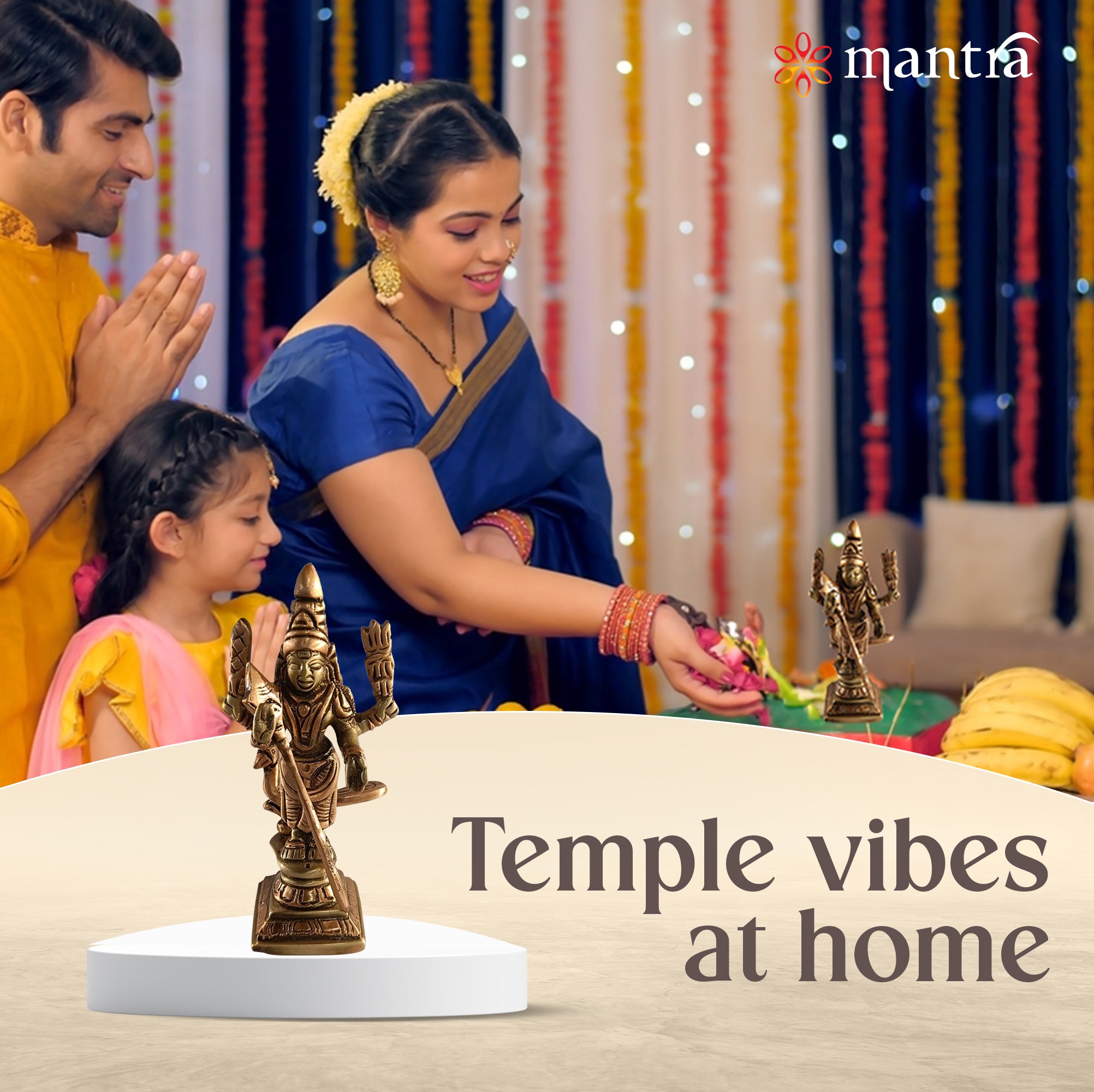 1. Golden Grace: Elegantly crafted with a gleaming copper and brass antique finish, this Mantra’s Murugan statue invites serenity, prosperity, and positivity into your home.