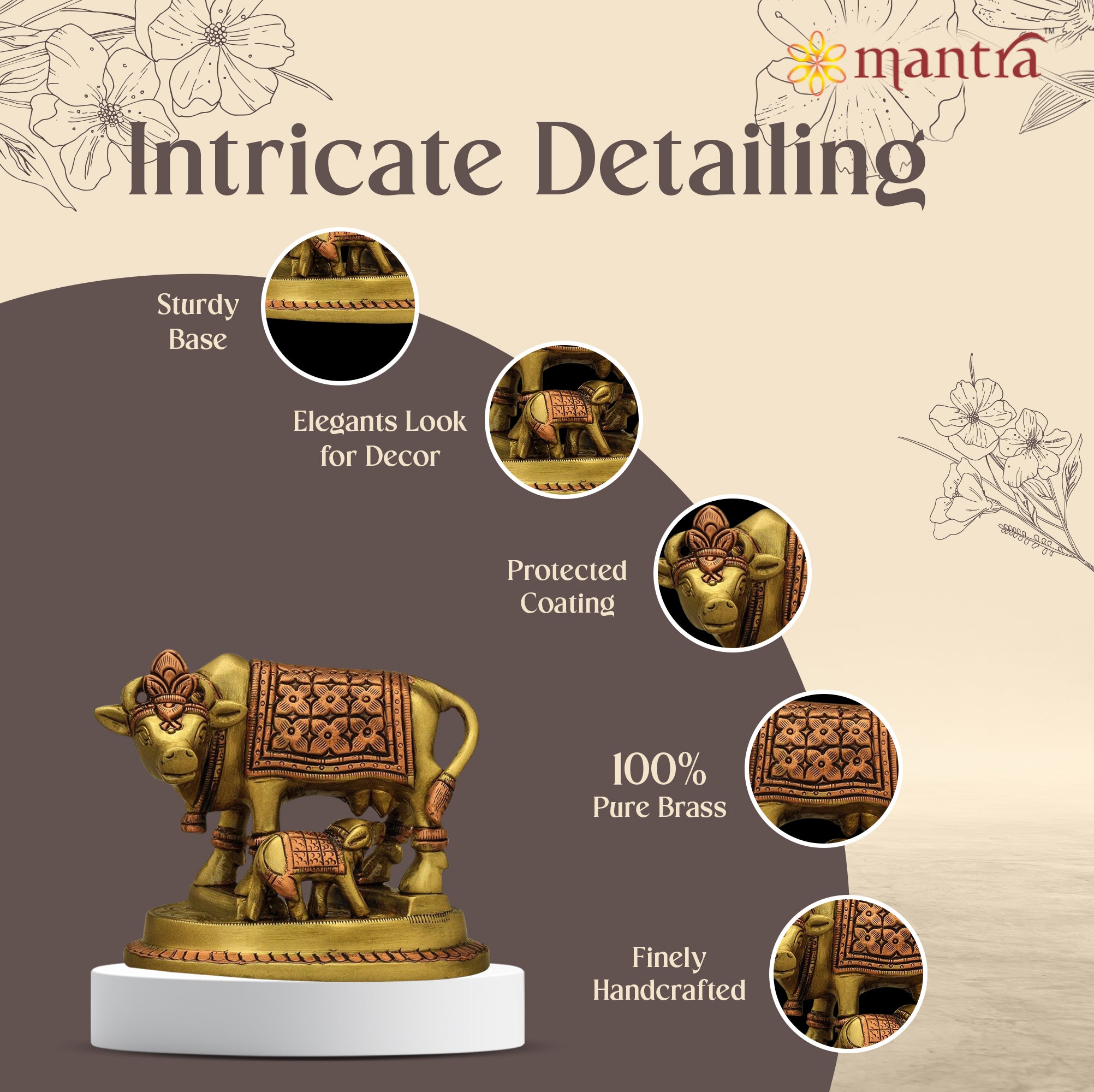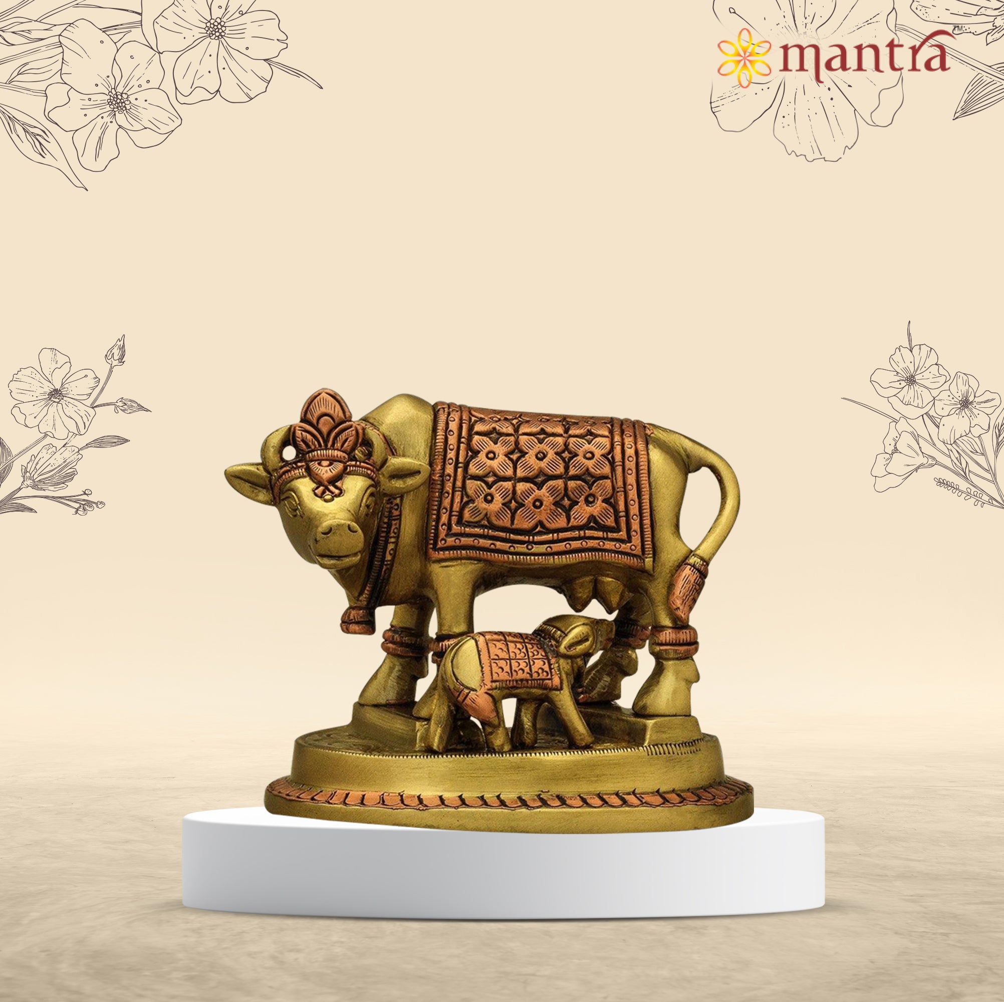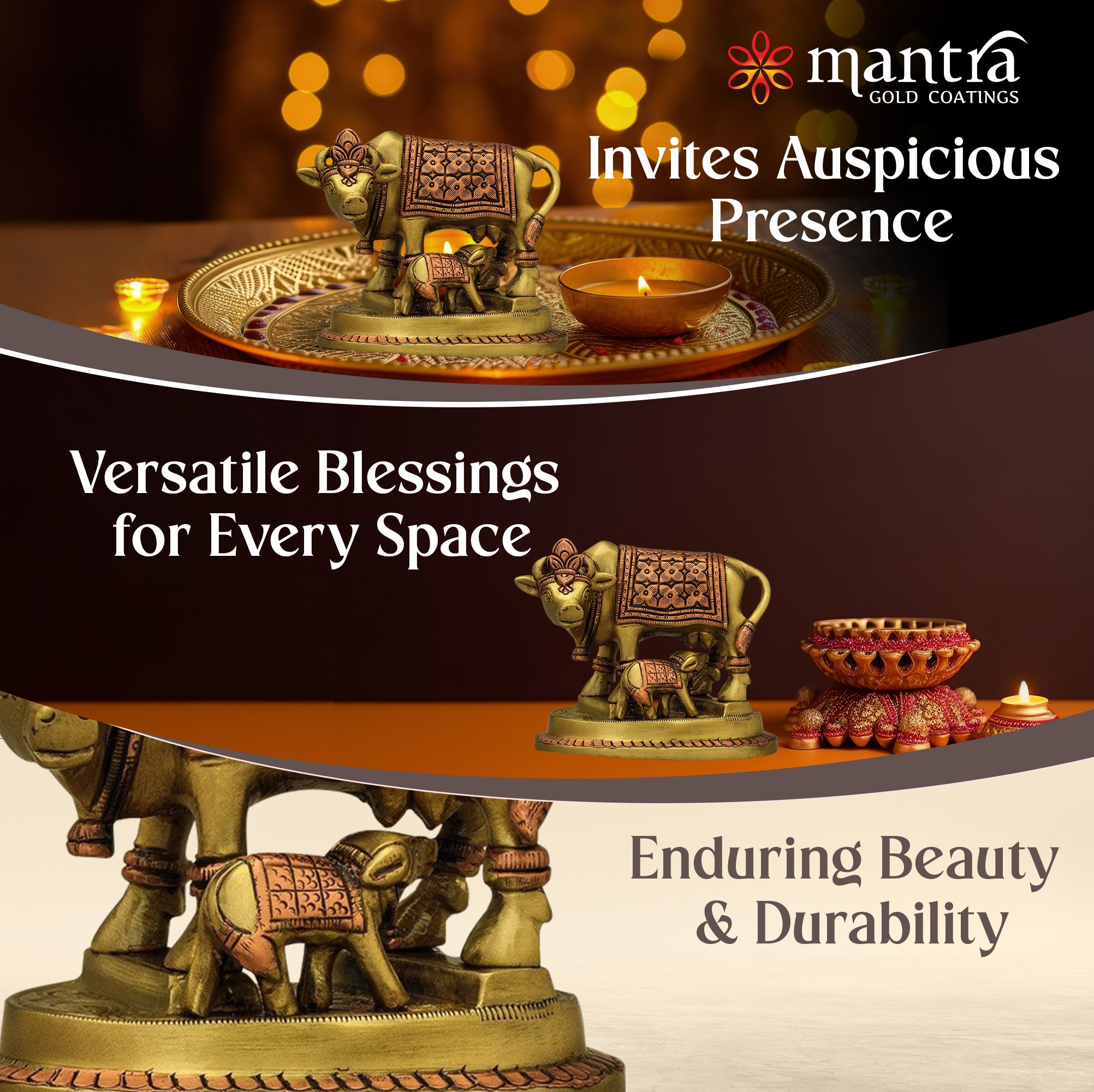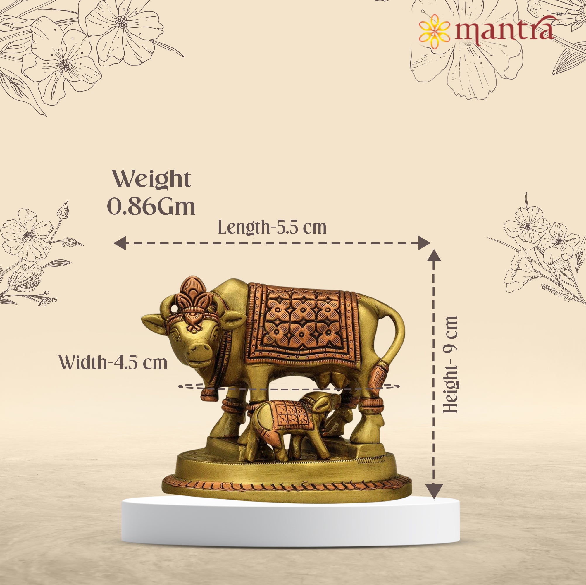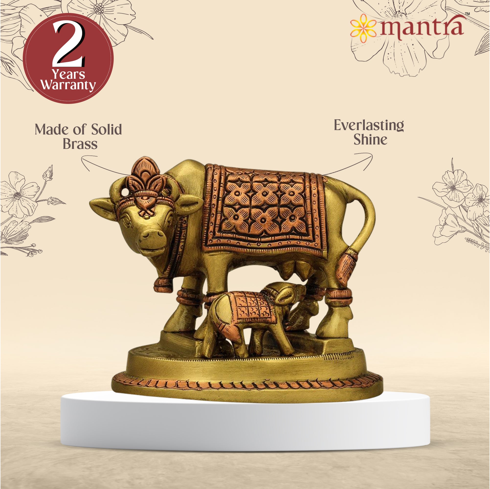 MANTRA DIVIT Gomatha Idol For Home | Pure Brass Made Gomatha (Dual Tone – Brass & Copper Finish) | Kamdhenu cow with calf vastu, Gomatha idol For Home Decoration, Office Desks, Pooja Room, Gifting (4” Height)