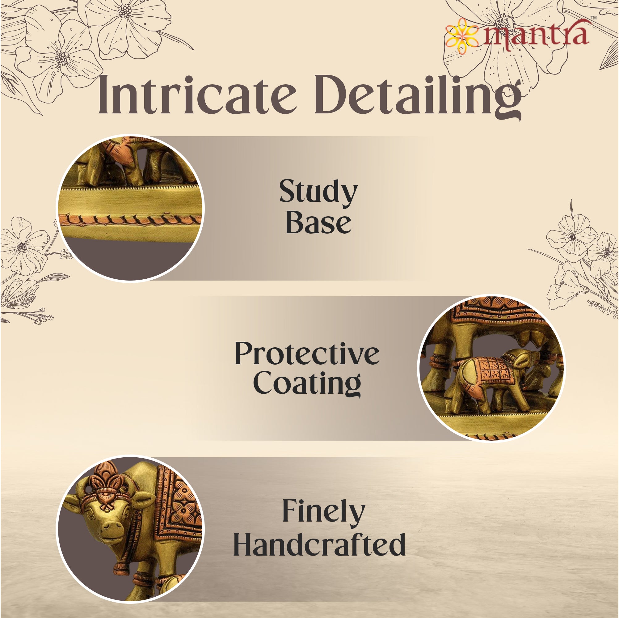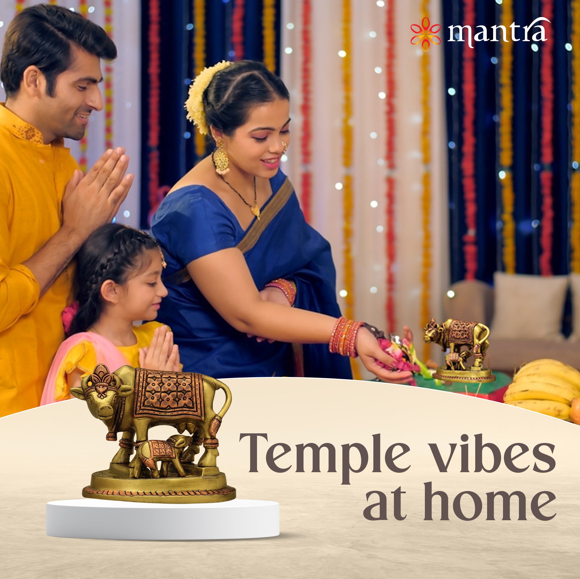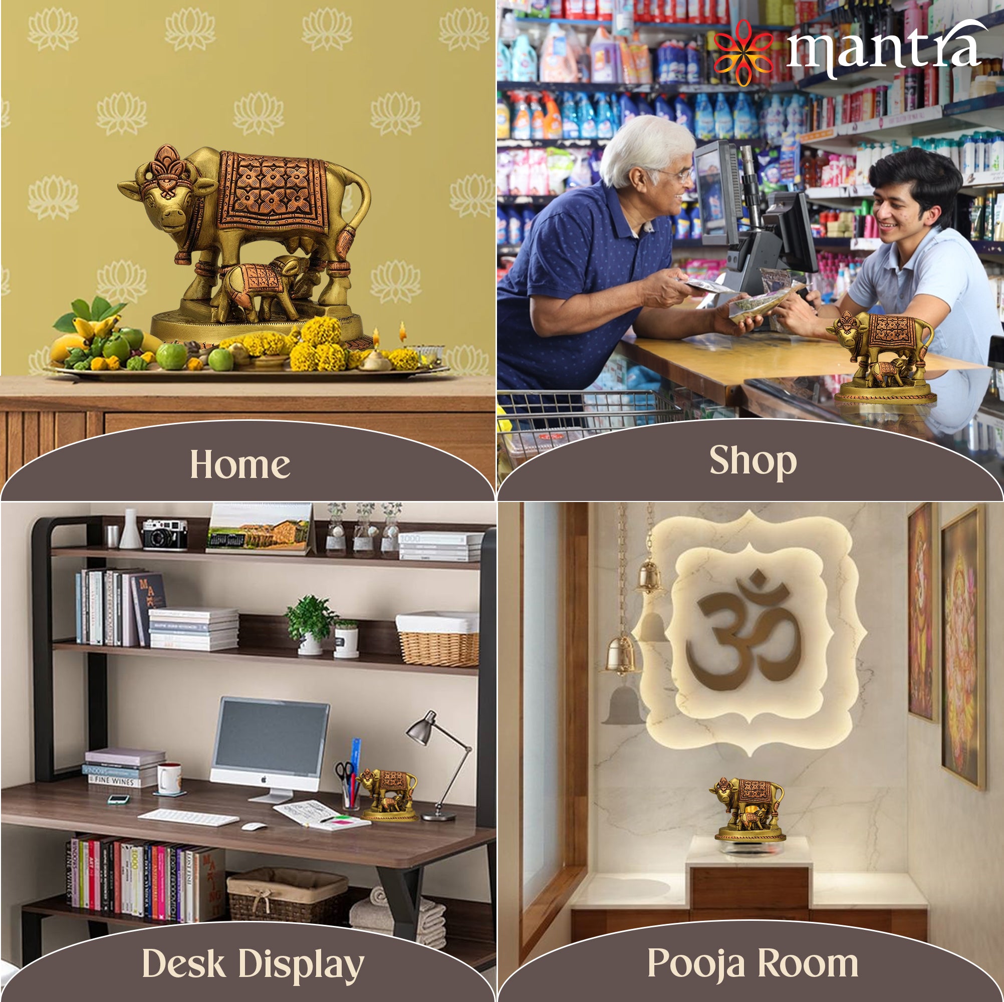 Exquisite Craftsmanship: Hand-crafted with meticulous attention to detail, This Gomatha is a stunning testament to the skill of Mantra’s expert artisans. This idol perfectly captures the divine essence of kamdhenu vastu .
