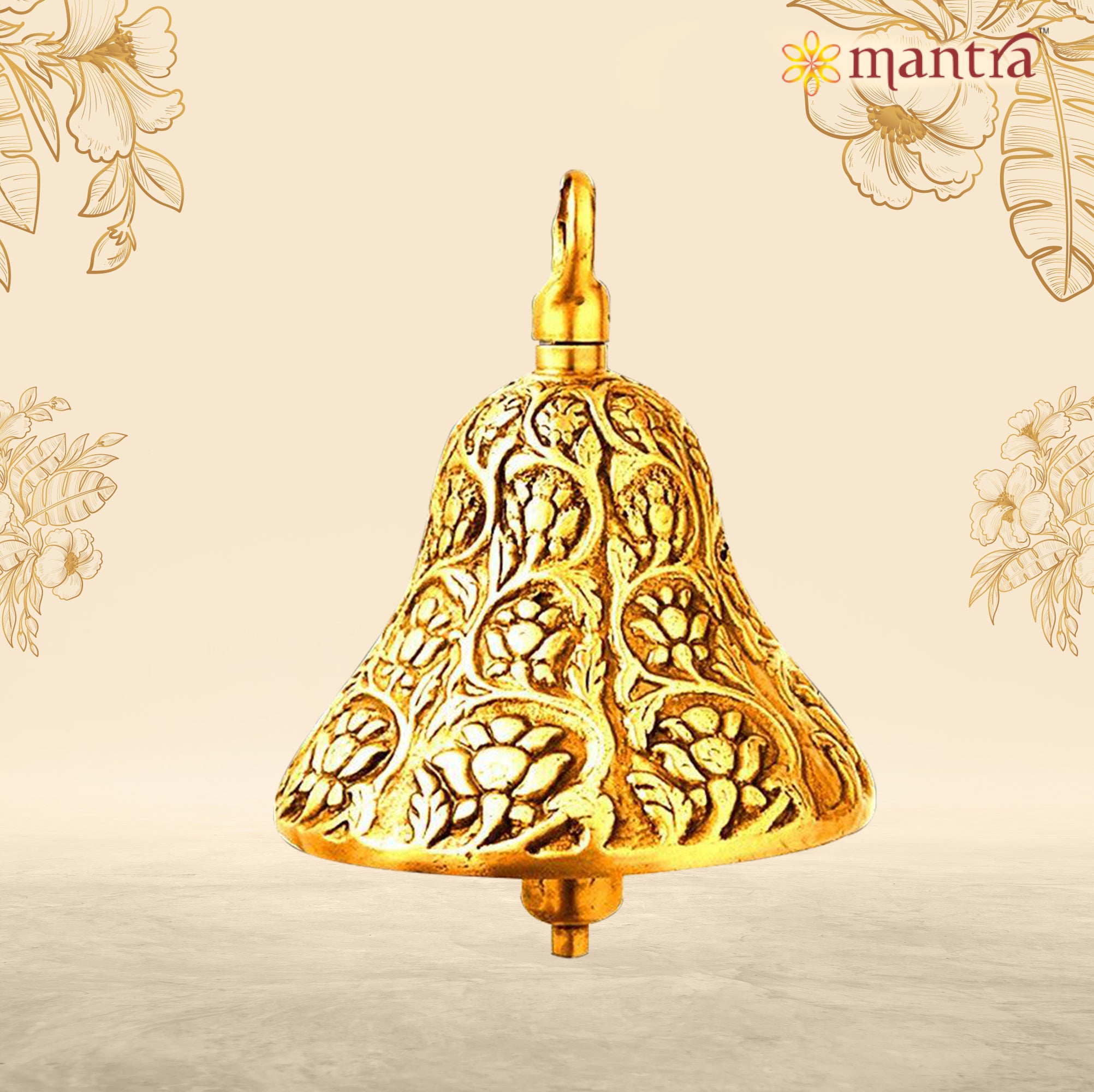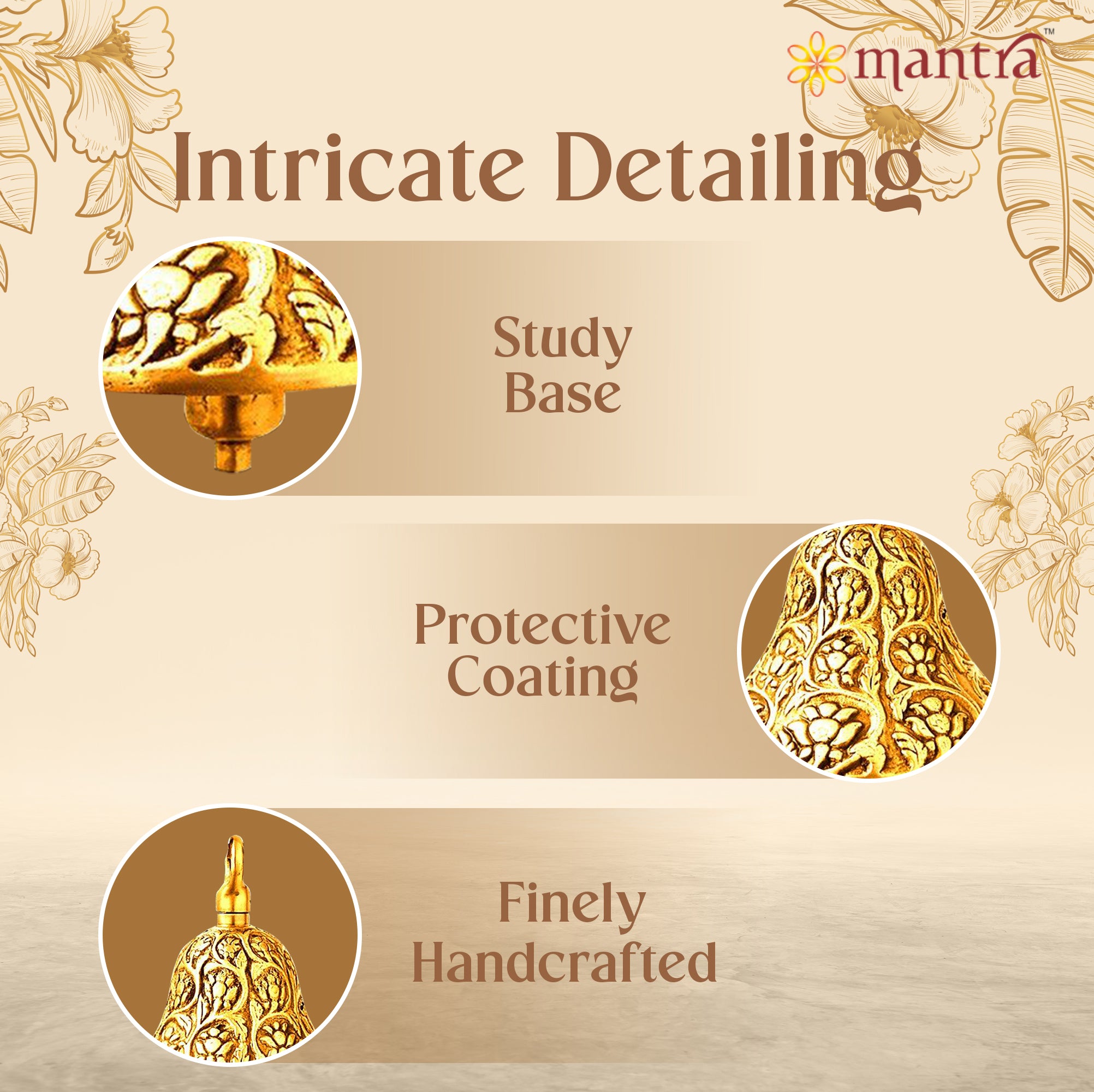 MANTRA Wall Hanging Design Bronze Bell for Home | Pure Bronze Made Design Bell (24K Gold Plated Finish) Wall Décor for Home Decoration, Pooja Room, Gifting (8” Height)