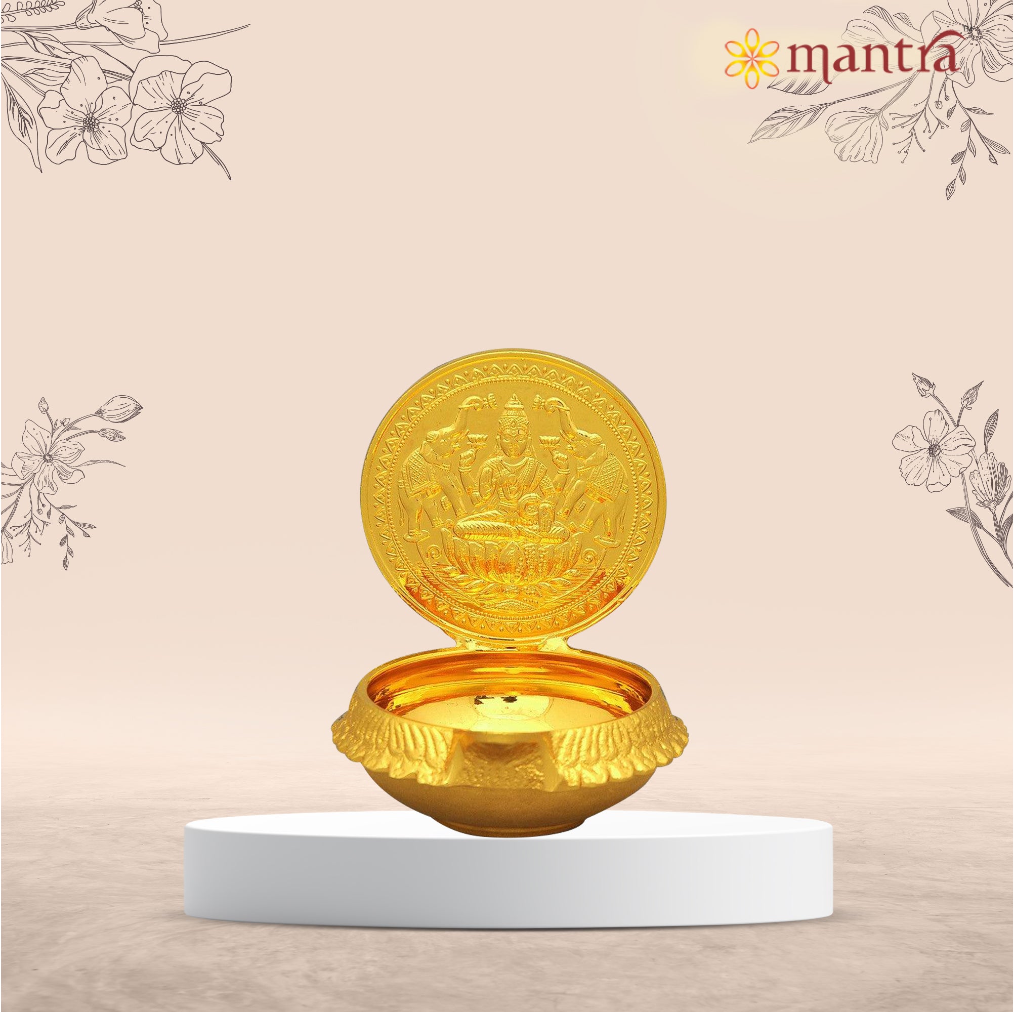 Golden Grace: Experience the most spiritual journey with our Gajalakshmi brass diya, crafted from the finest solid brass with 24 carat gold-plated finish. This exquisite Mantra’s akhand diya pays homage to the revered deity Gajalakshmi the goddess of fortune.