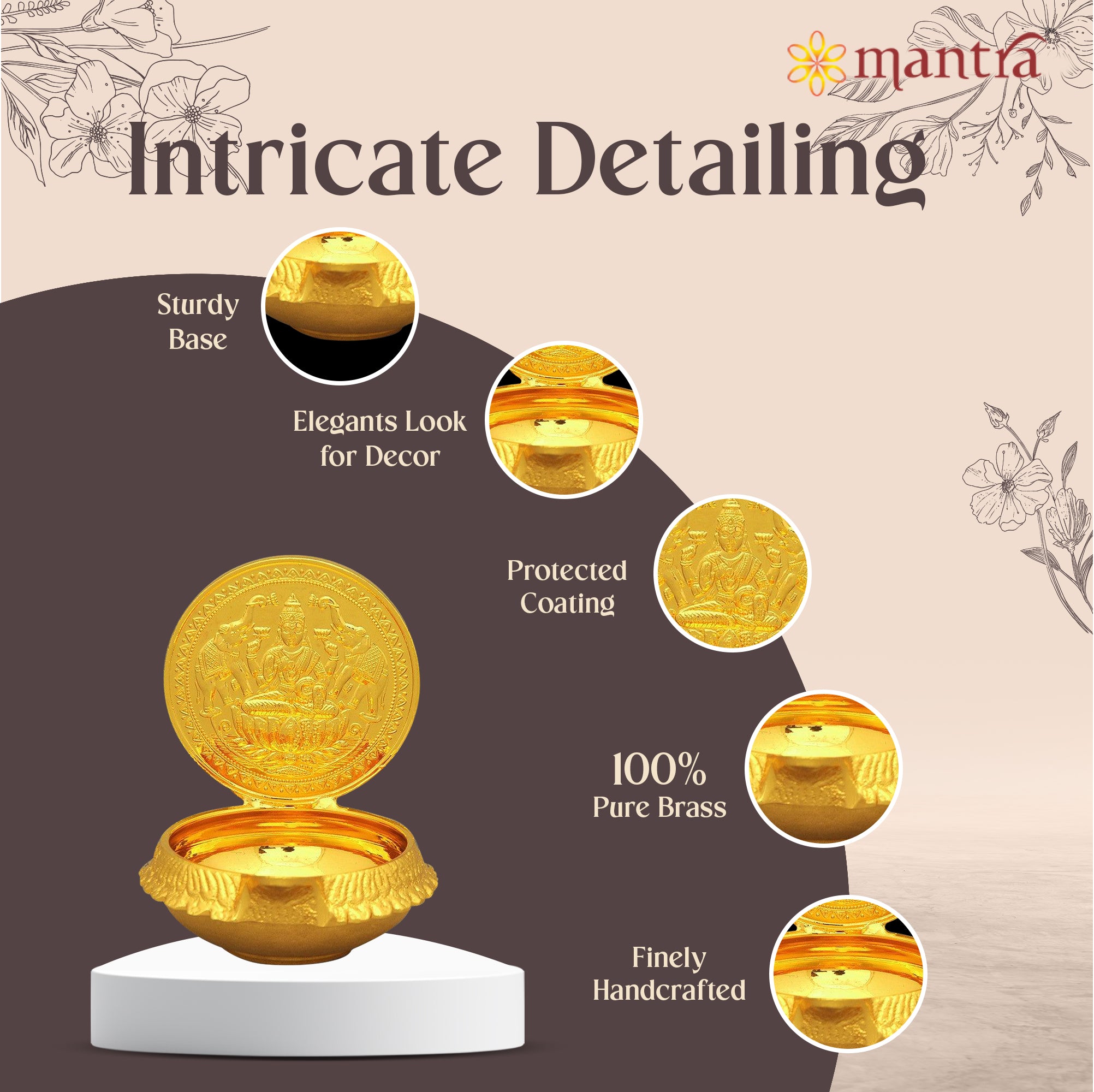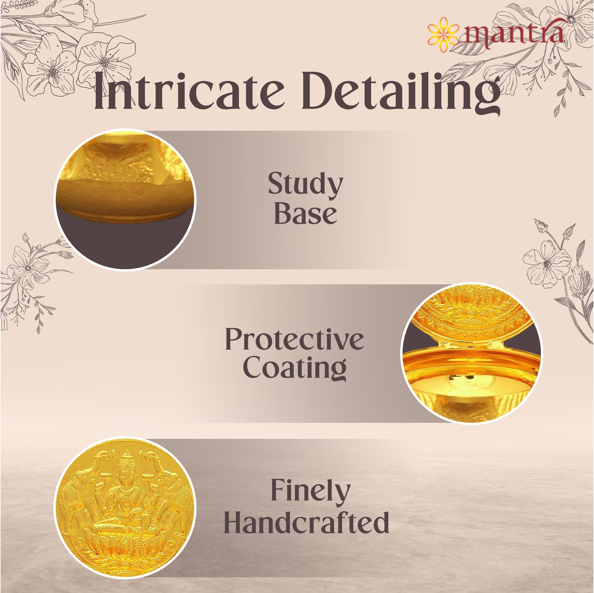 Peace and protection: Experience long lasting elegance and assured peace of mind with Mantra’s 1-year Gold Plating warranty. The use of high-quality materials in this brass diya ensures durability, a lustrous finish, and resistance to tarnishing