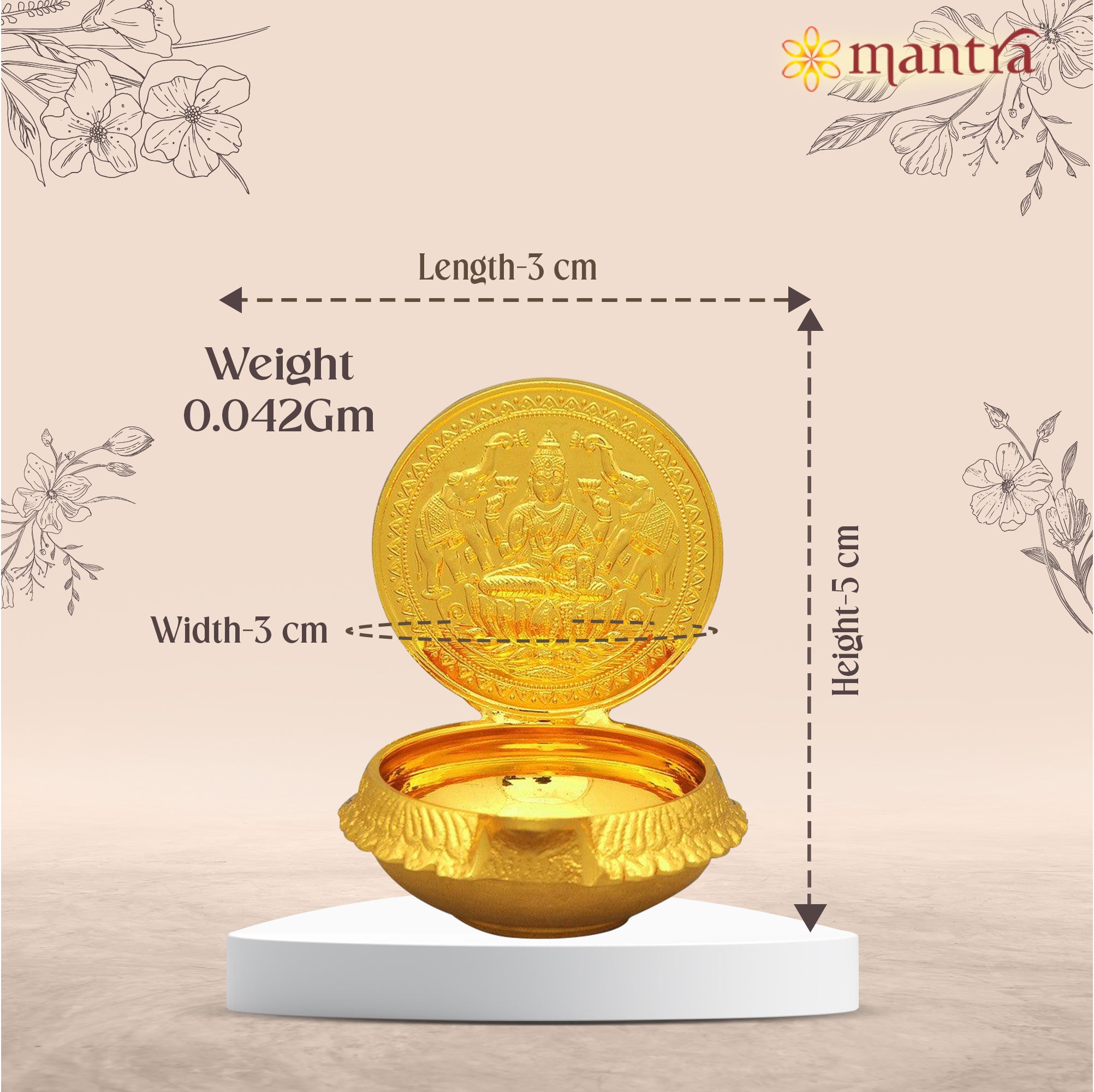 MANTRA MUKTI Gajalakshmi Lamp For Pooja | Brass Made Akhand Diya For Puja (Gold Plated With 1-Year Plating Warranty) | Oil Lamp For Akhand Jyoti/Deepam (2.4” Height)