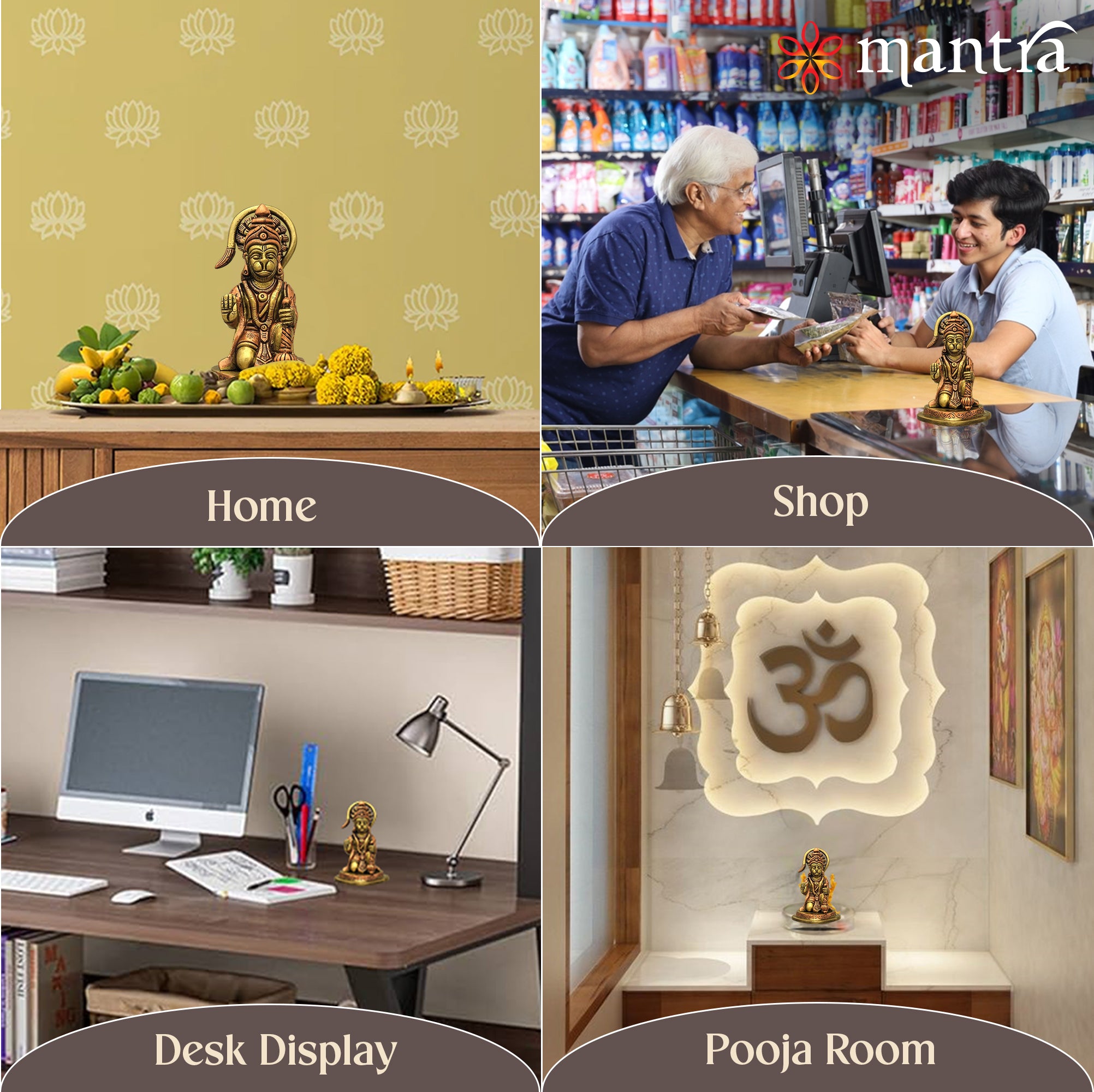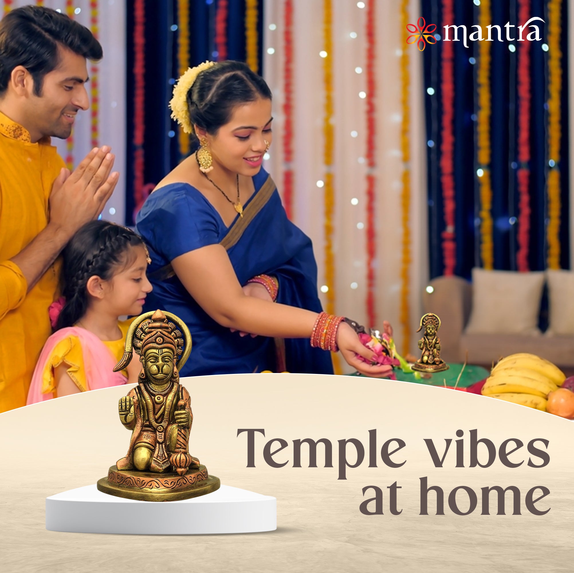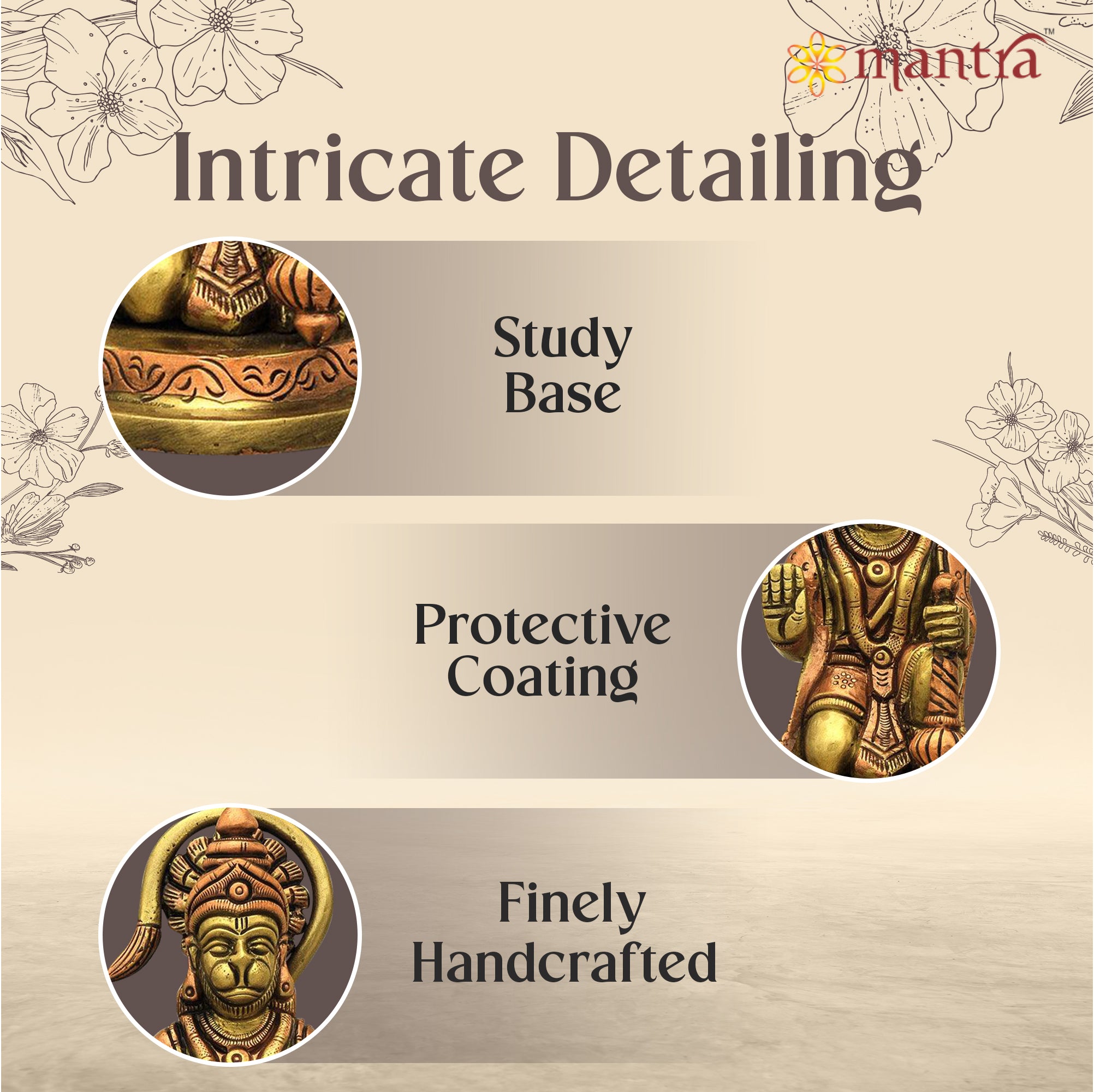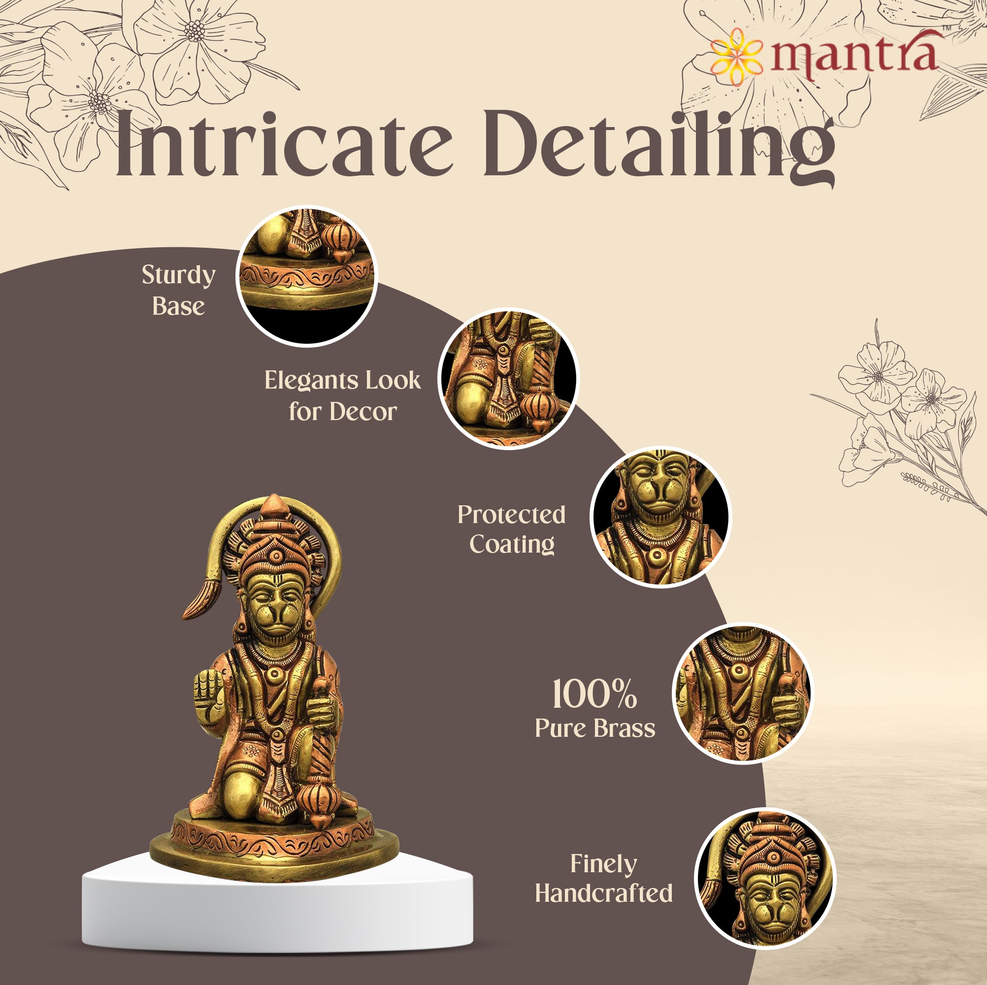 Elegance & Protection: Experience long lasting elegance with Mantra’s Hanuman Idol made of solid brass metal and brass copper finish is to prevent oxidation and dirt deposition.