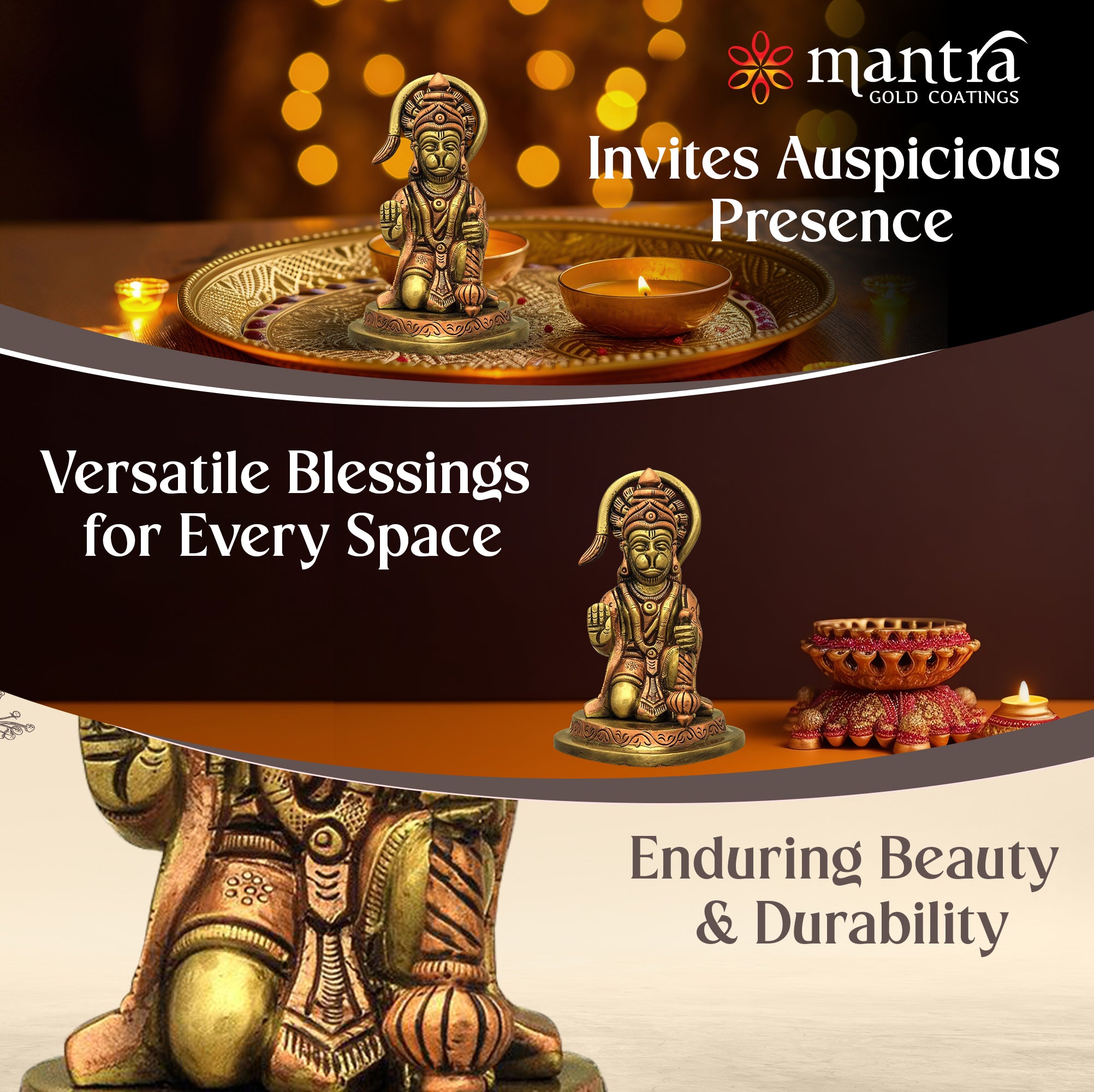 Title: MANTRA DIVIT Lord Hanuman Sitting Idol For Home | Pure Brass Made Anjaneya Statue (Dual Tone – Brass & Copper Finish), God Hanuman Murti For Home Decoration, Office Desks, Pooja Room, Gifting (4” Height)