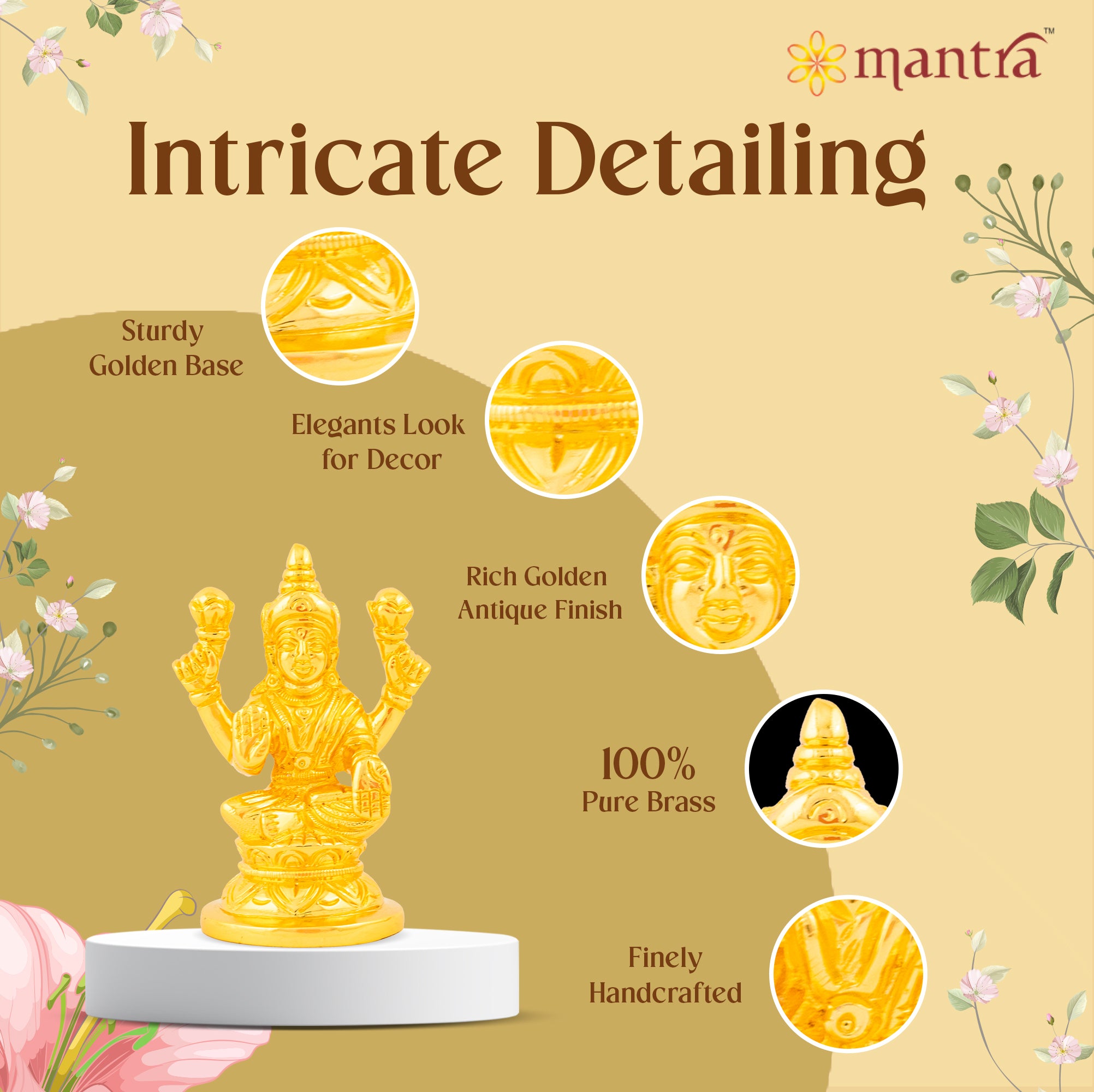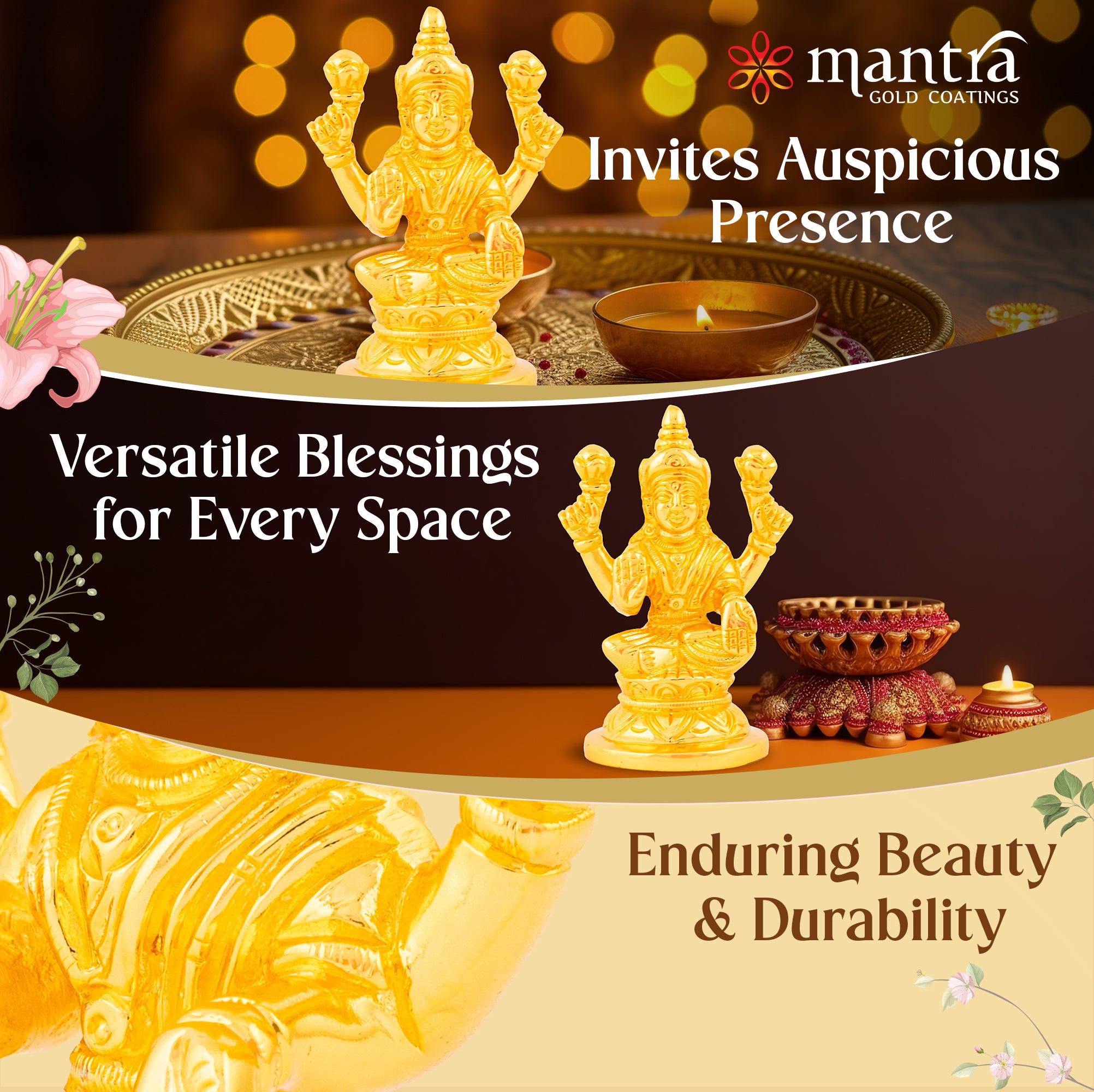 - Peace & Protection: Experience long lasting elegance and assured peace of mind with Mantra’s 1-year warranty for gold plating. Mantra’s lakshmi devi idol is made of solid brass metal coated with pure 24 carat gold.