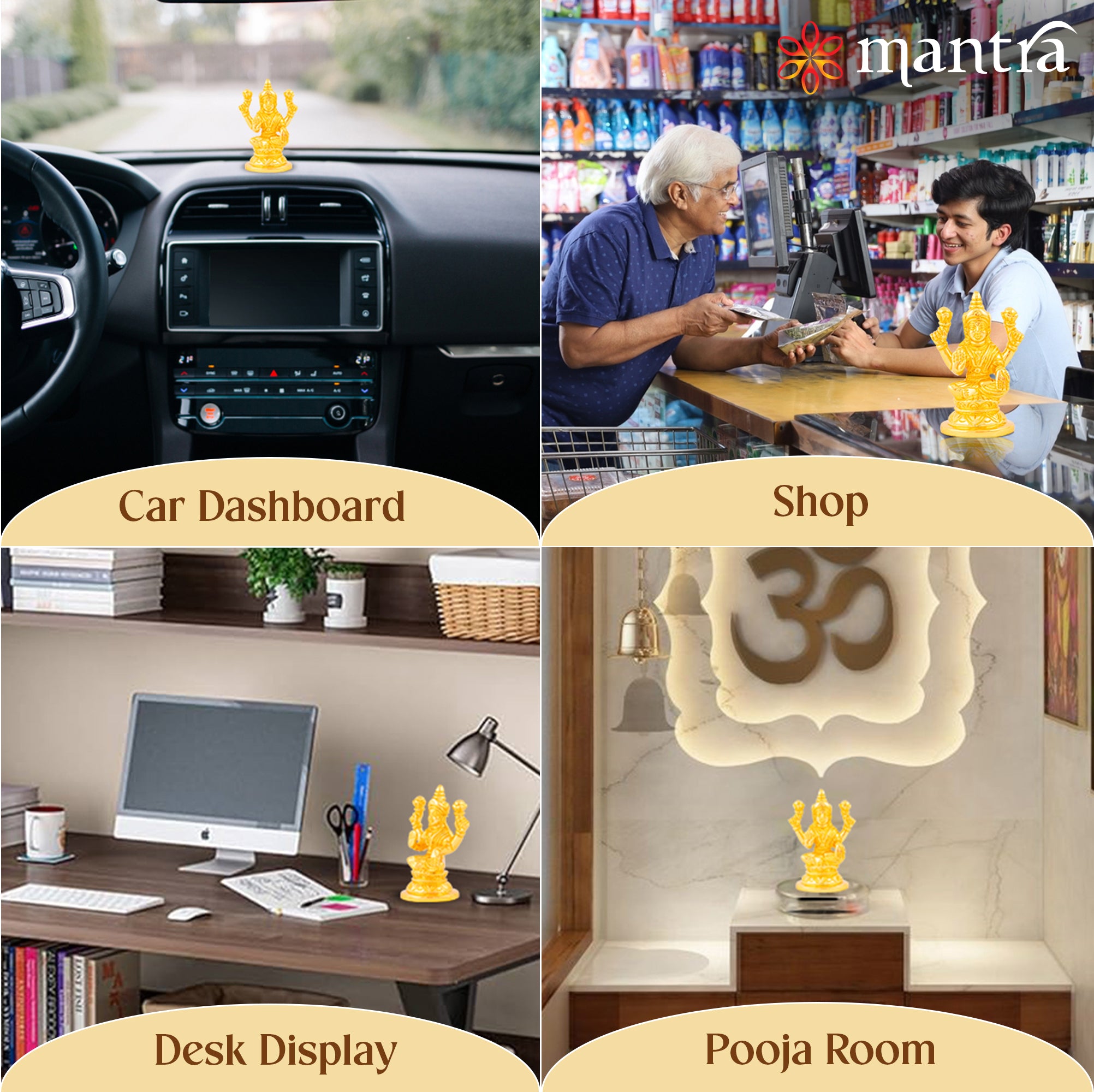 - Golden Grace: Elegantly crafted with a gleaming gold-plated finish, this Mantra’s lakshmi devi idol invites serenity, prosperity, and positivity into your home.