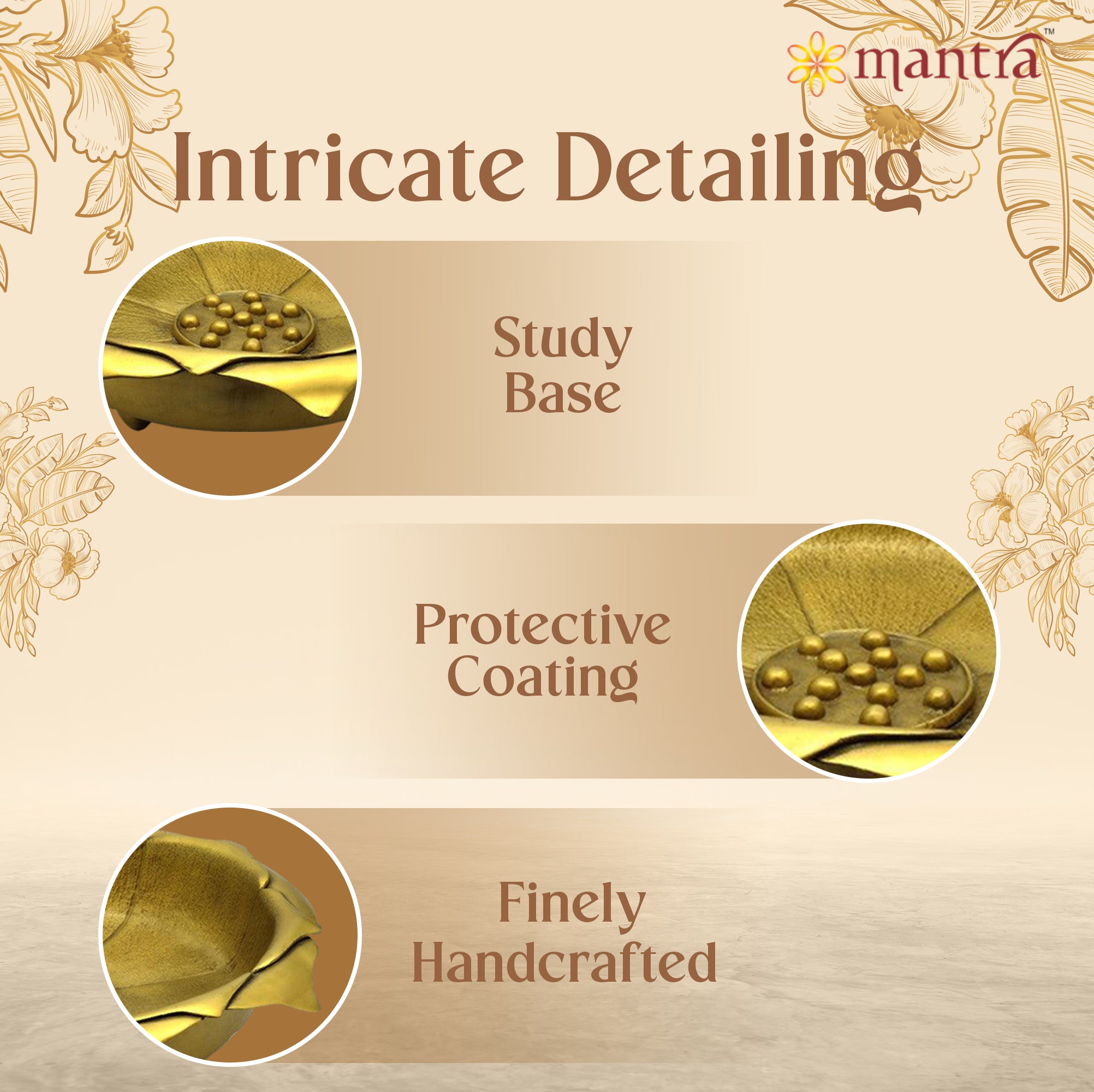 Pure Solid Brass: Elegantly crafted with 100% pure brass and a brass antique finish, this Mantra’s urli with lotus adds more aesthetics and brings positivity to your home.