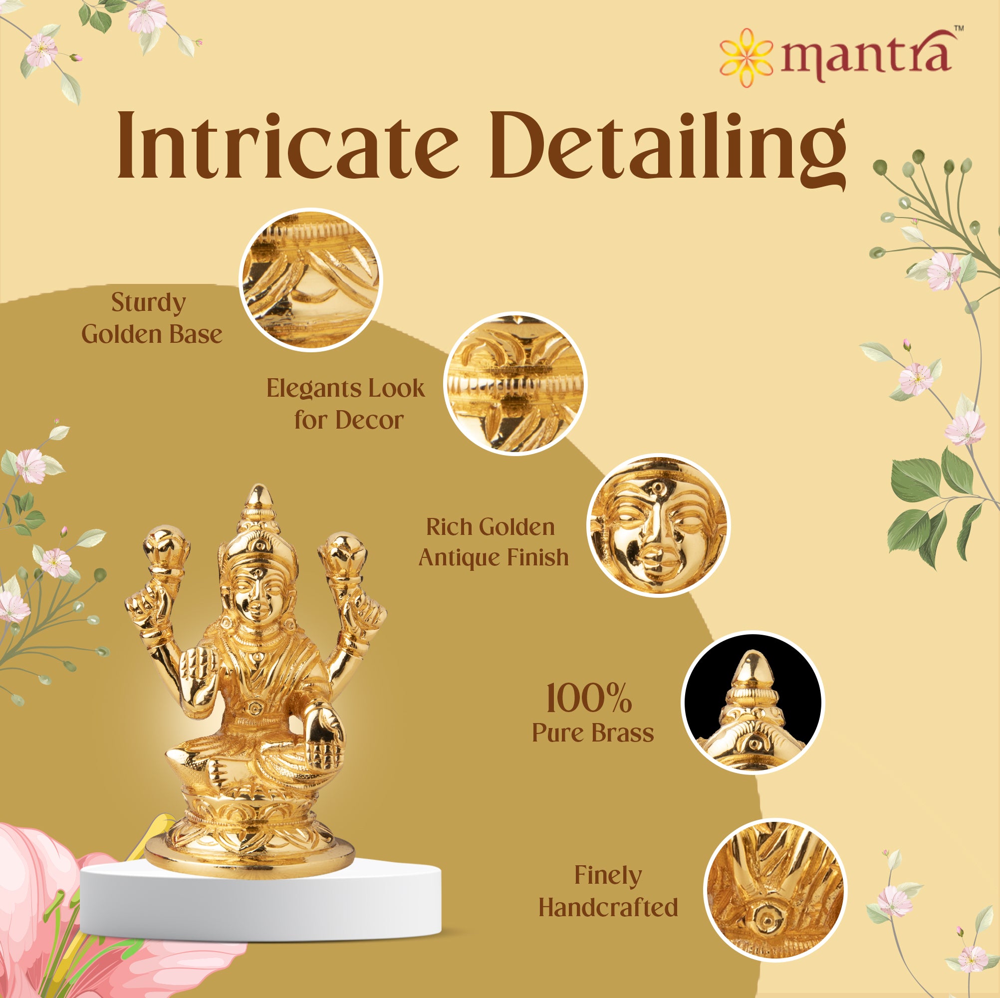 - PEACE & PROTECTION: Experience long lasting elegance and assured peace of mind with Mantra’s 1-year warranty for gold plating. Mantra’s lakshmi devi idol is made of solid brass metal coated with pure 24 carat gold.