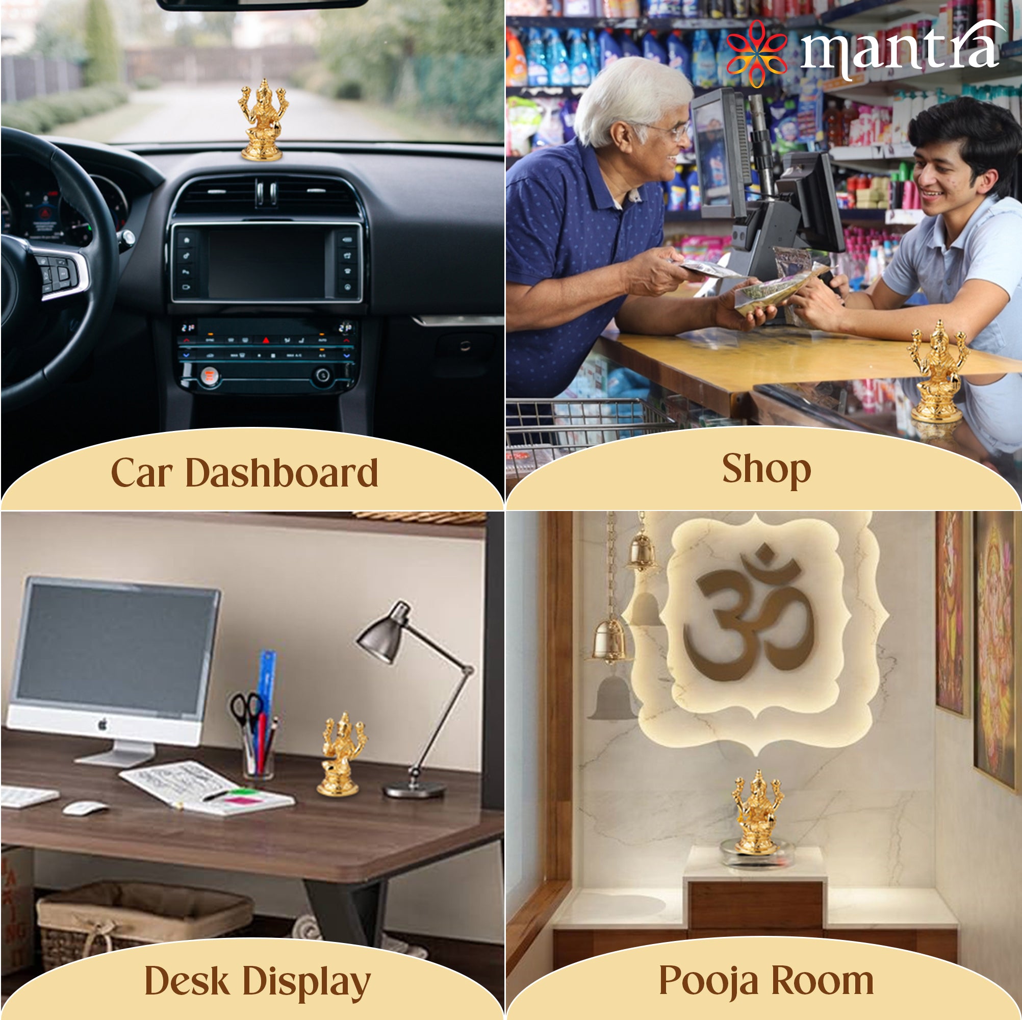 MANTRA DIVIT Laksmi Devi Idol | Pure Brass Made Lord Laxmi Murti (24K Gold Plated), Mahalakshmi God Idol for Home Decoration, Car Dashboard, Office Desks, Pooja Room, Gifting (Gold Plated 3.2")