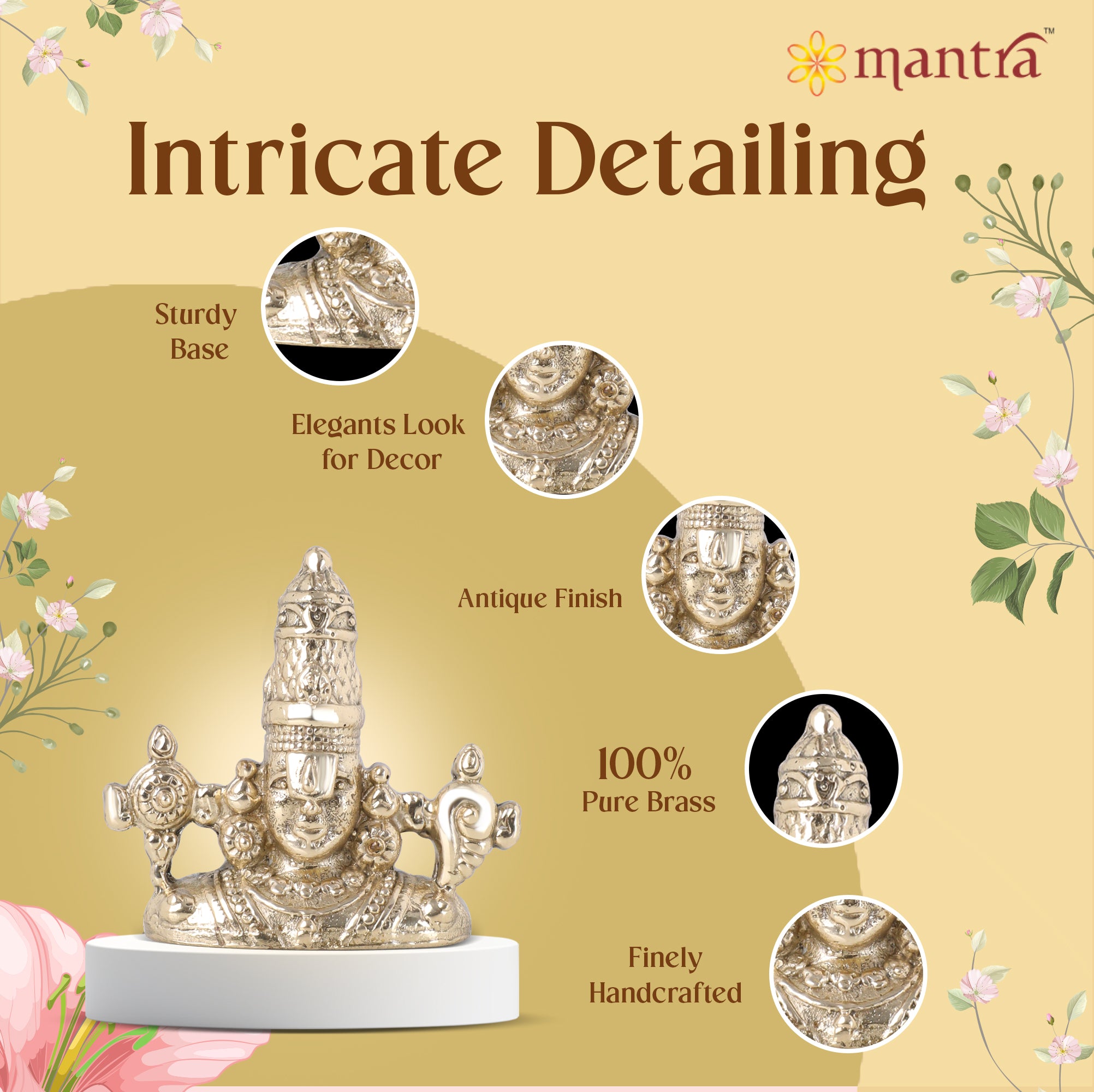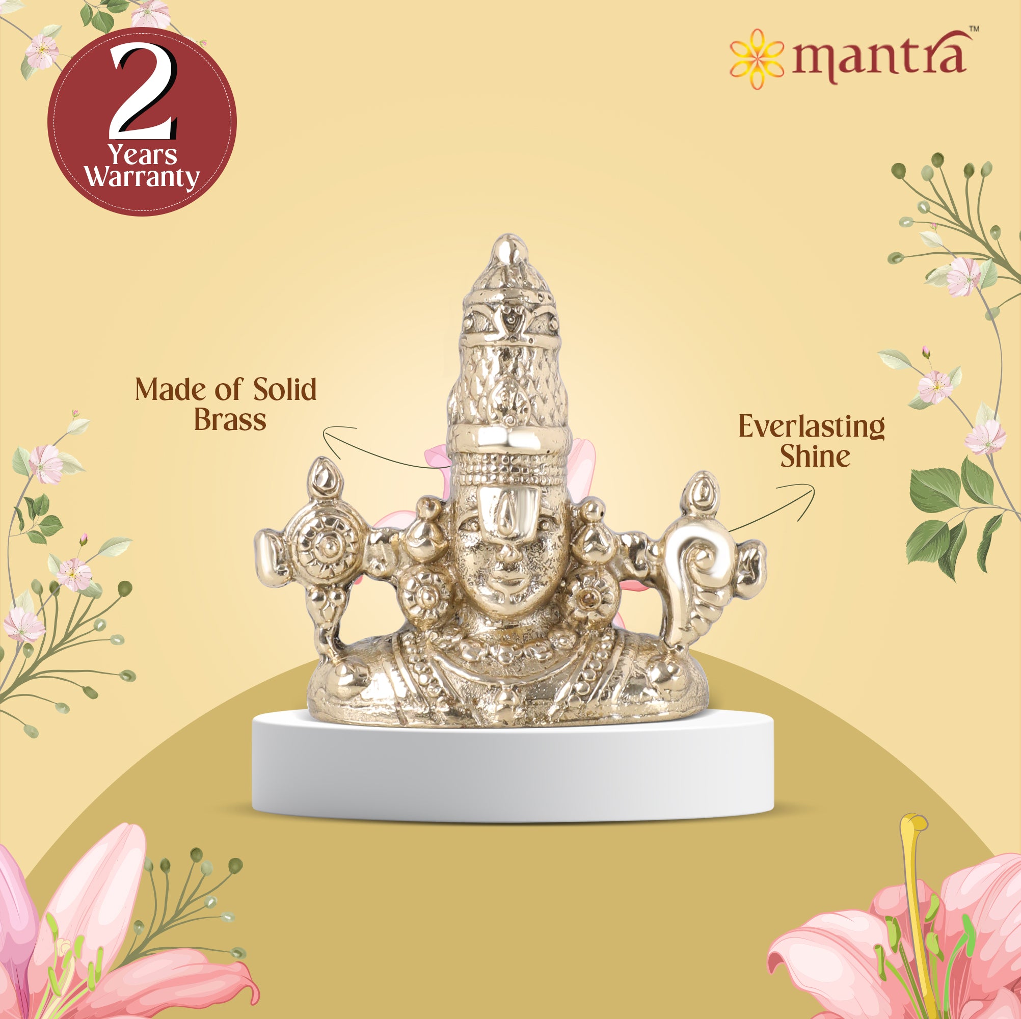 - PURE SOLID BRASS: Elegantly crafted with 100% pure solid brass metal, this Mantra’s Tirupati Balaji idol invites serenity, prosperity, and positivity into your home.