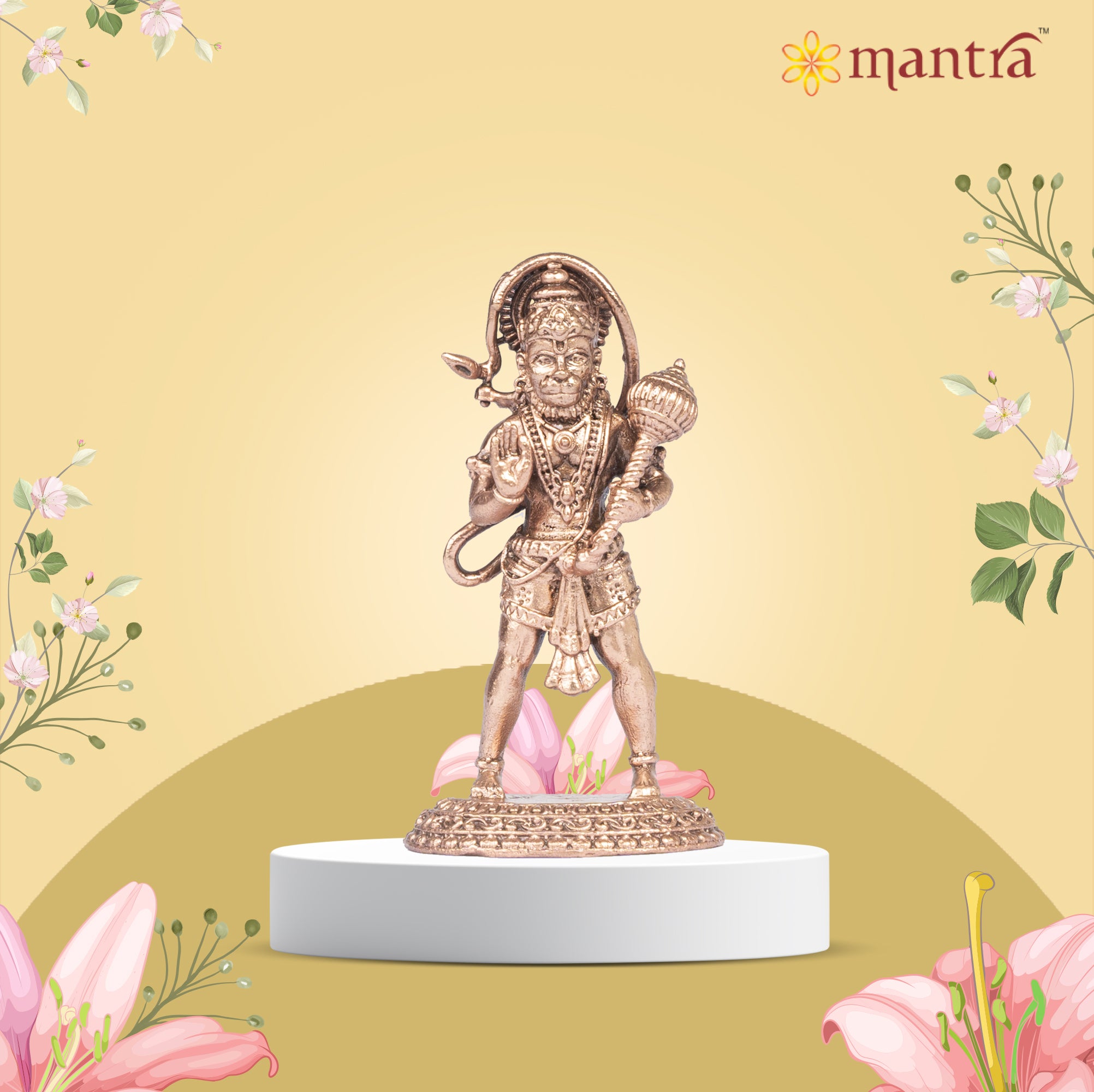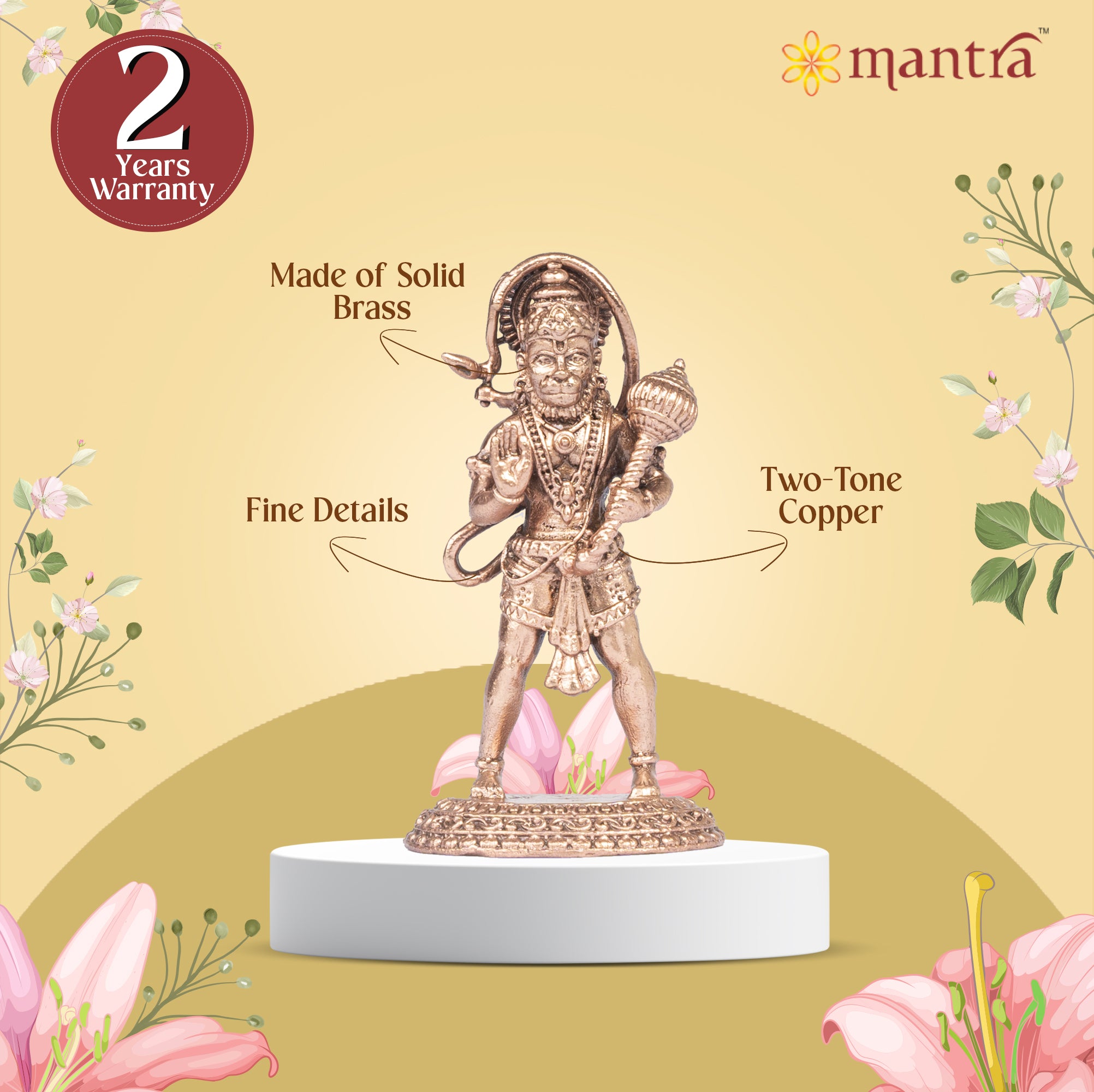 MANTRA DIVIT Lord Hanuman Idol | Pure Copper Idol with Polished Lacquer Finish | 2.6” Height