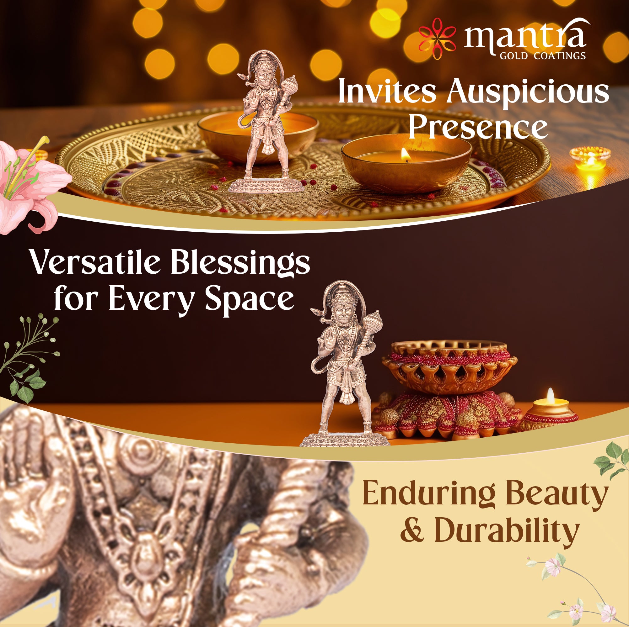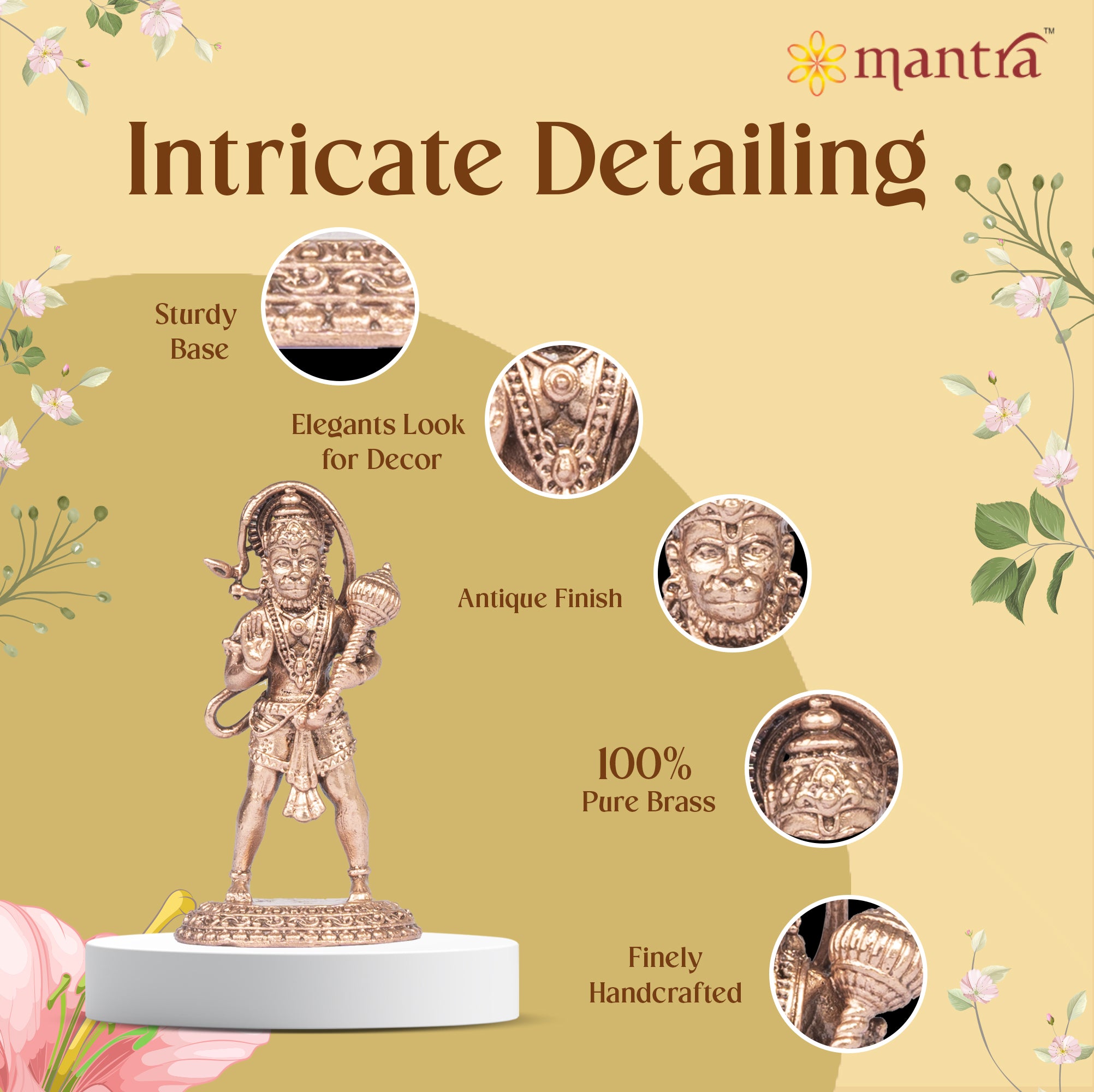 MANTRA DIVIT Lord Hanuman Idol is purely hand-crafted with meticulous attention to detail by expert artisans. The Lacquer finish protects the surface of the idol from dirt, stain or oxidation for years.