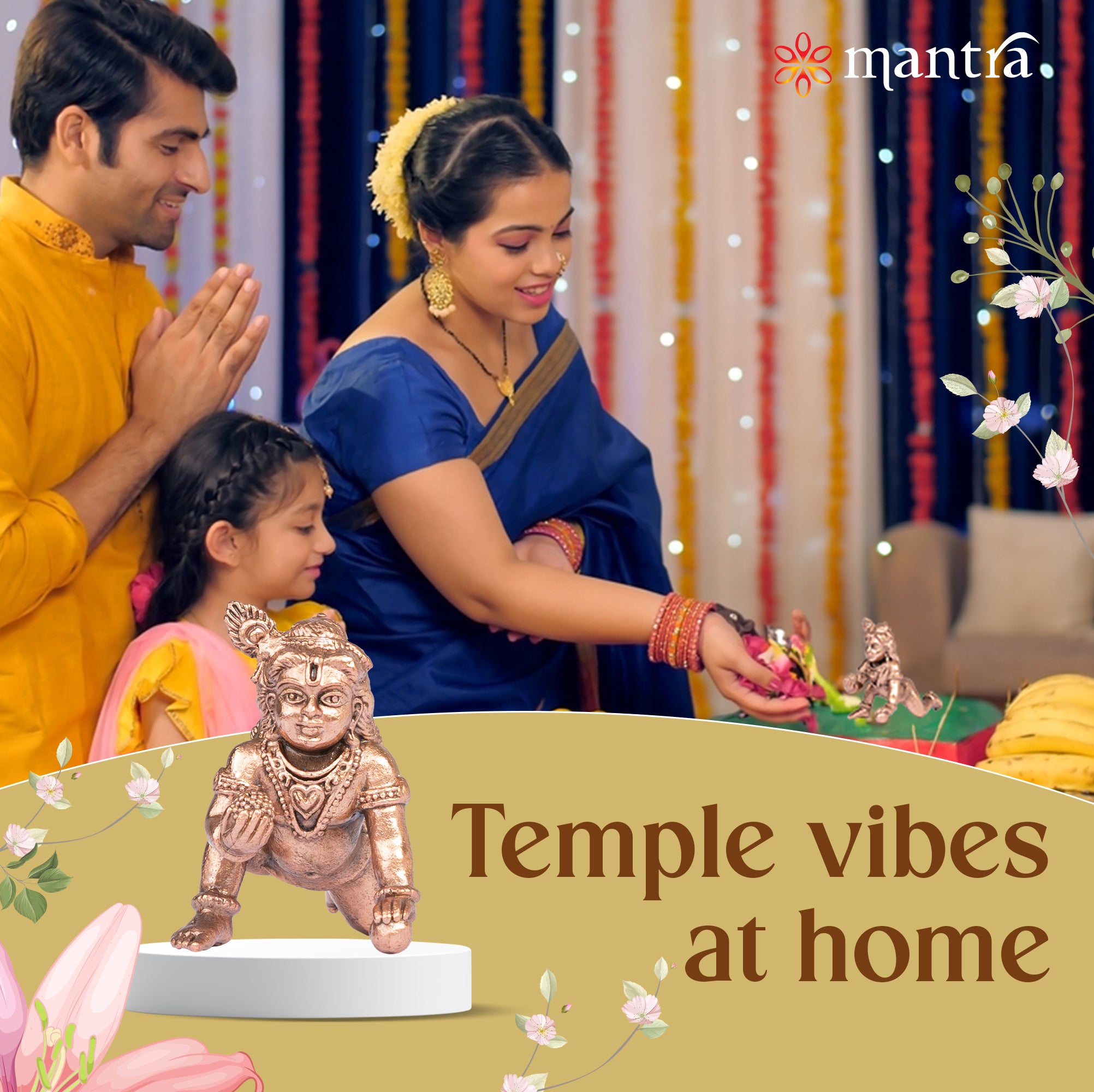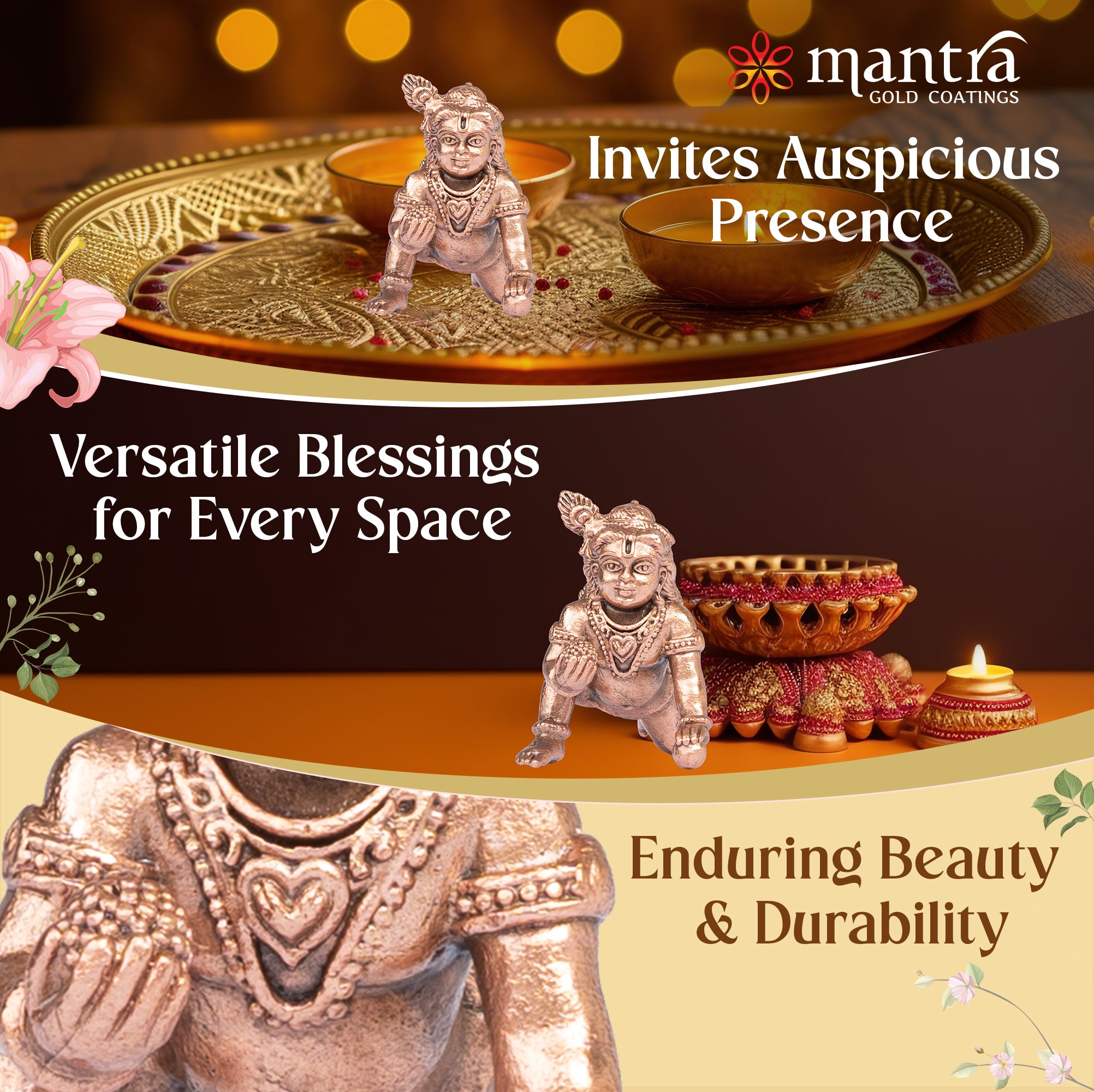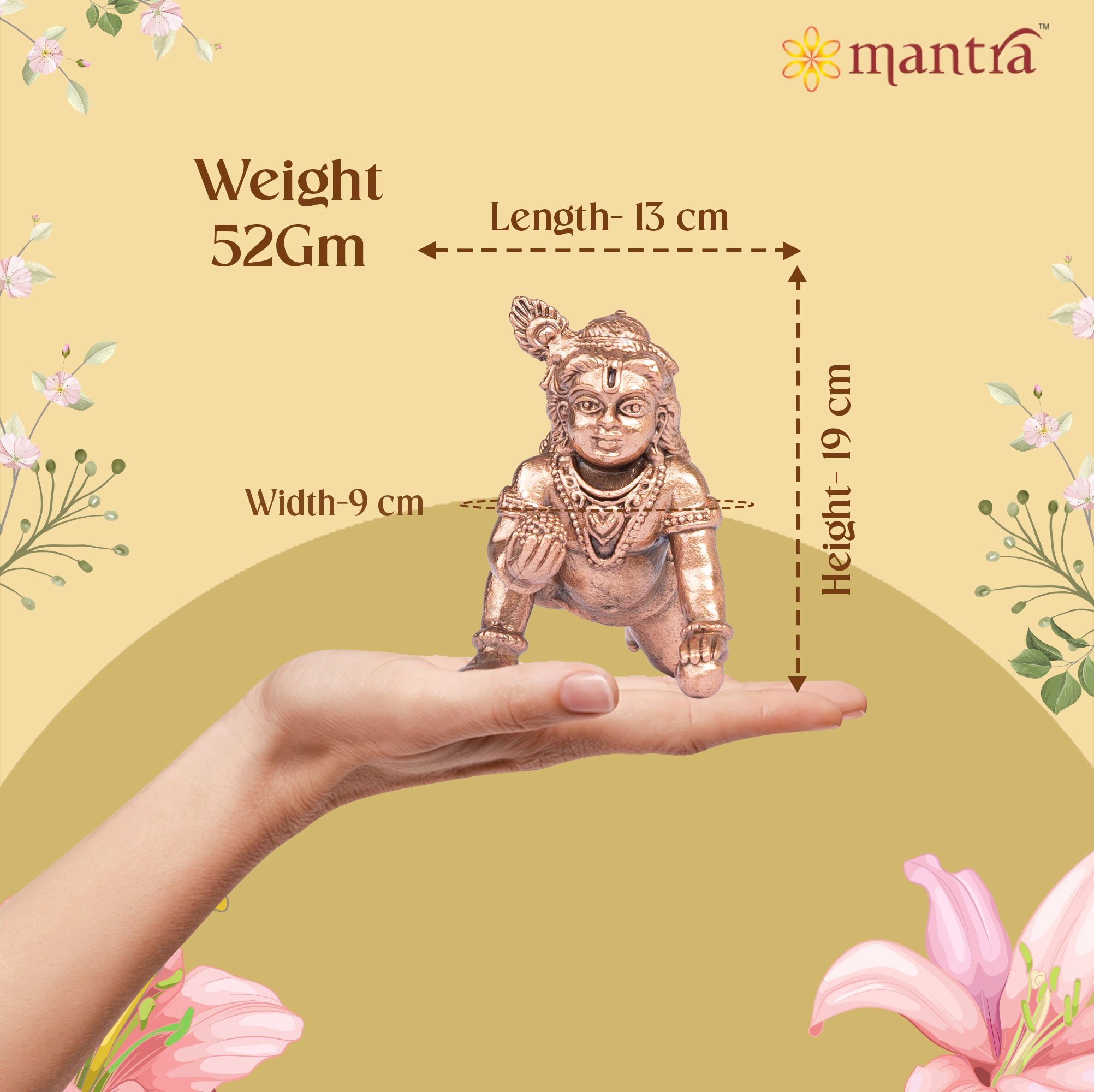 MANTRA DIVIT Crawling Krishna Idol | Pure Copper Idol with Polished Lacquer Finish | 1.7” Height