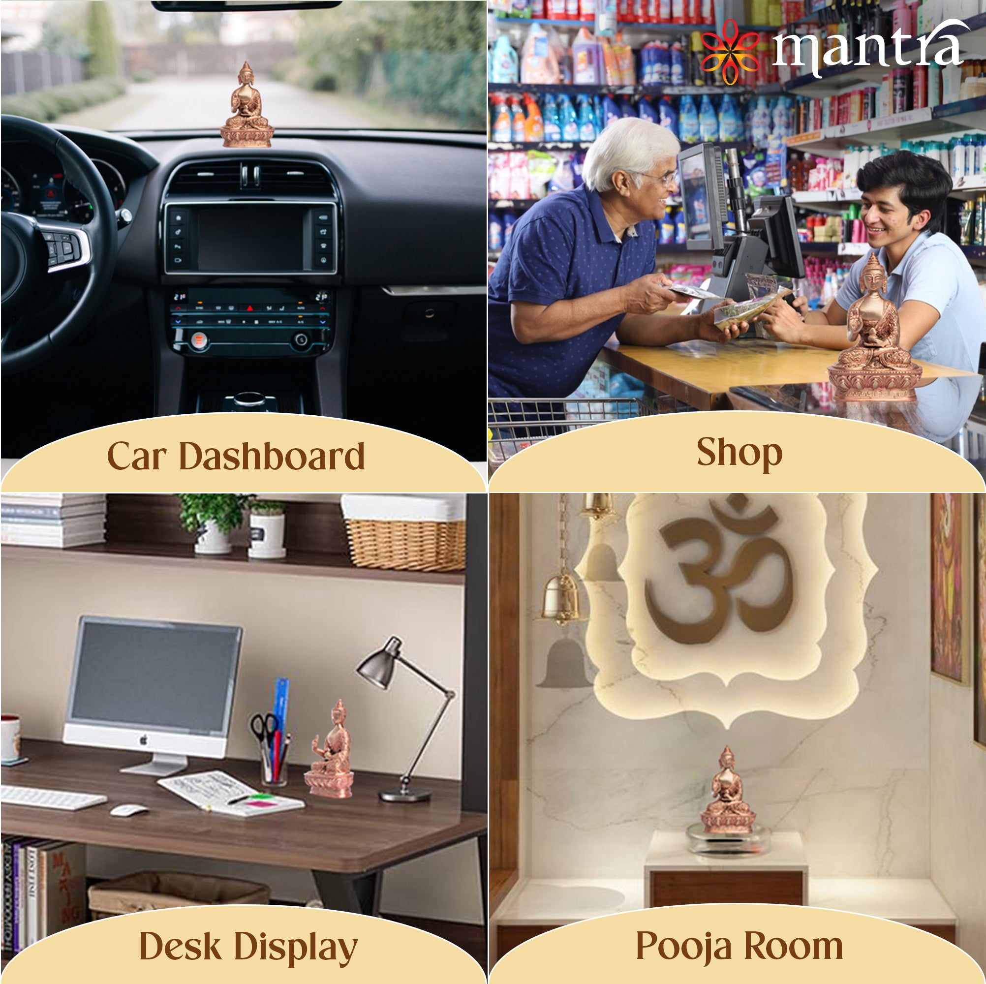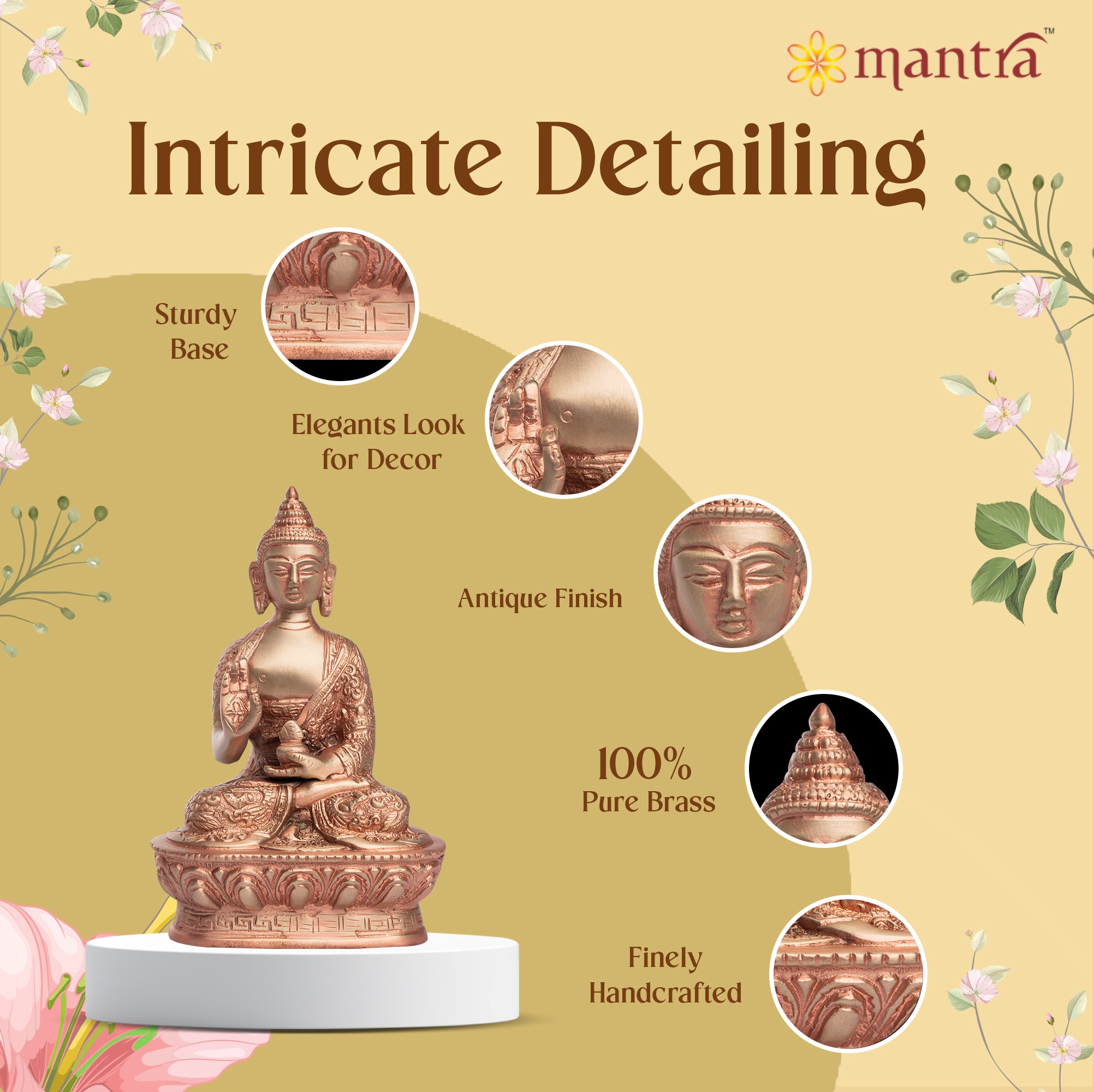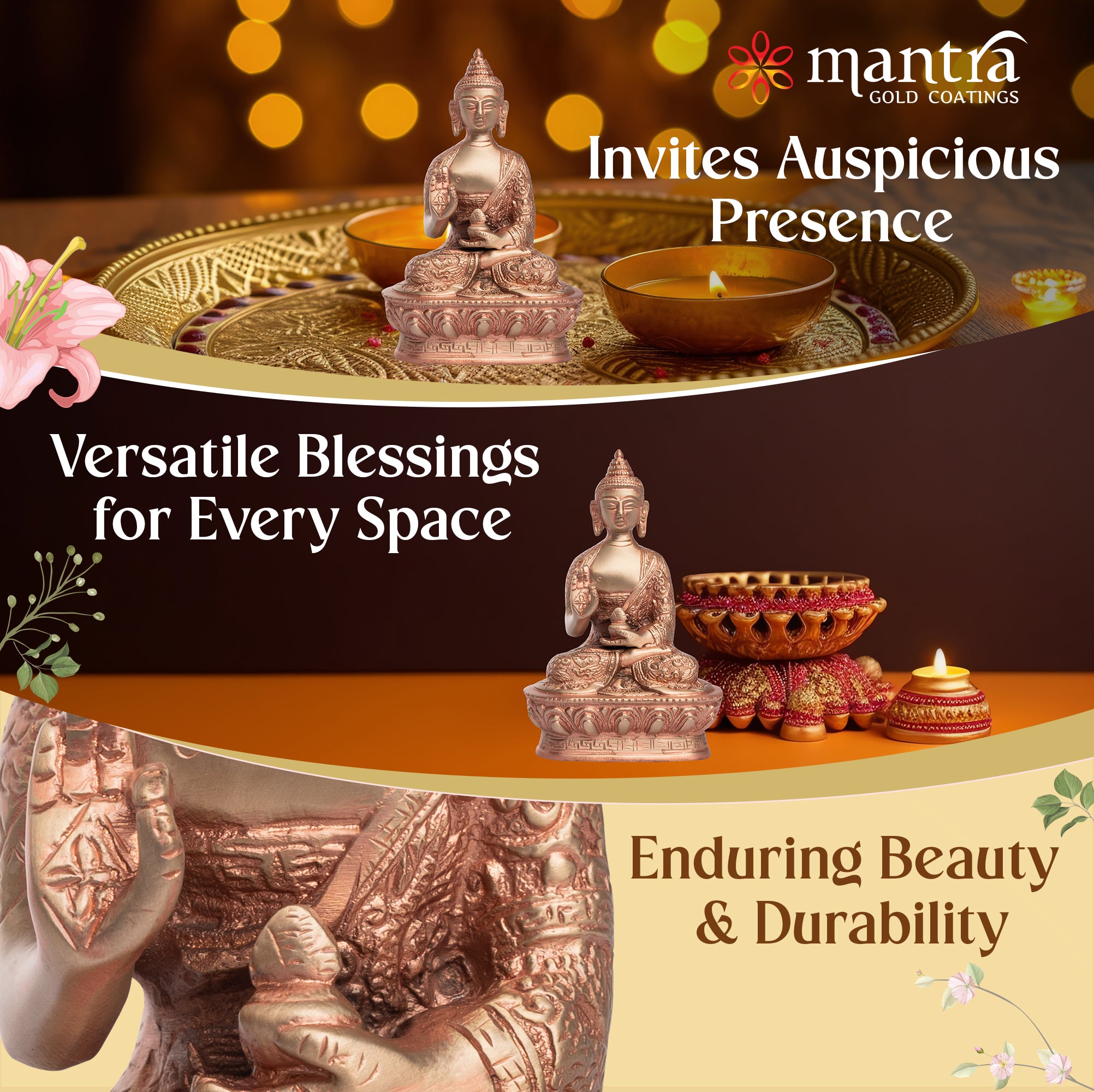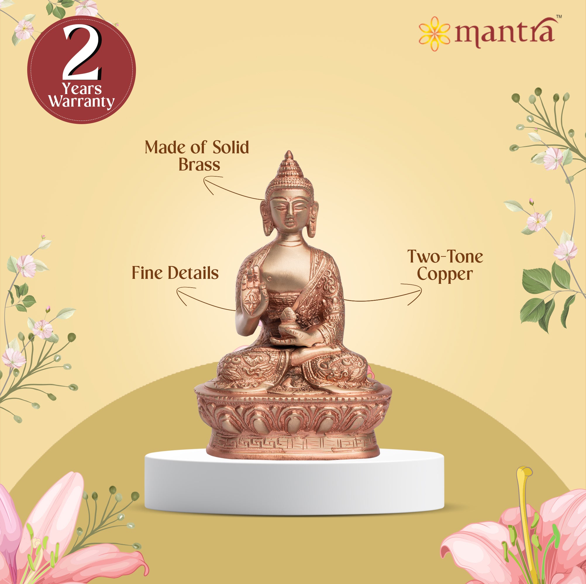 MANTRA DIVIT Buddha Idol For Home | Pure Brass Made Buddha Statue (Dual Tone – Brass & Copper Finish), Buddha idol For Home Decoration, Office Desks, Gifting (7.2” Height)