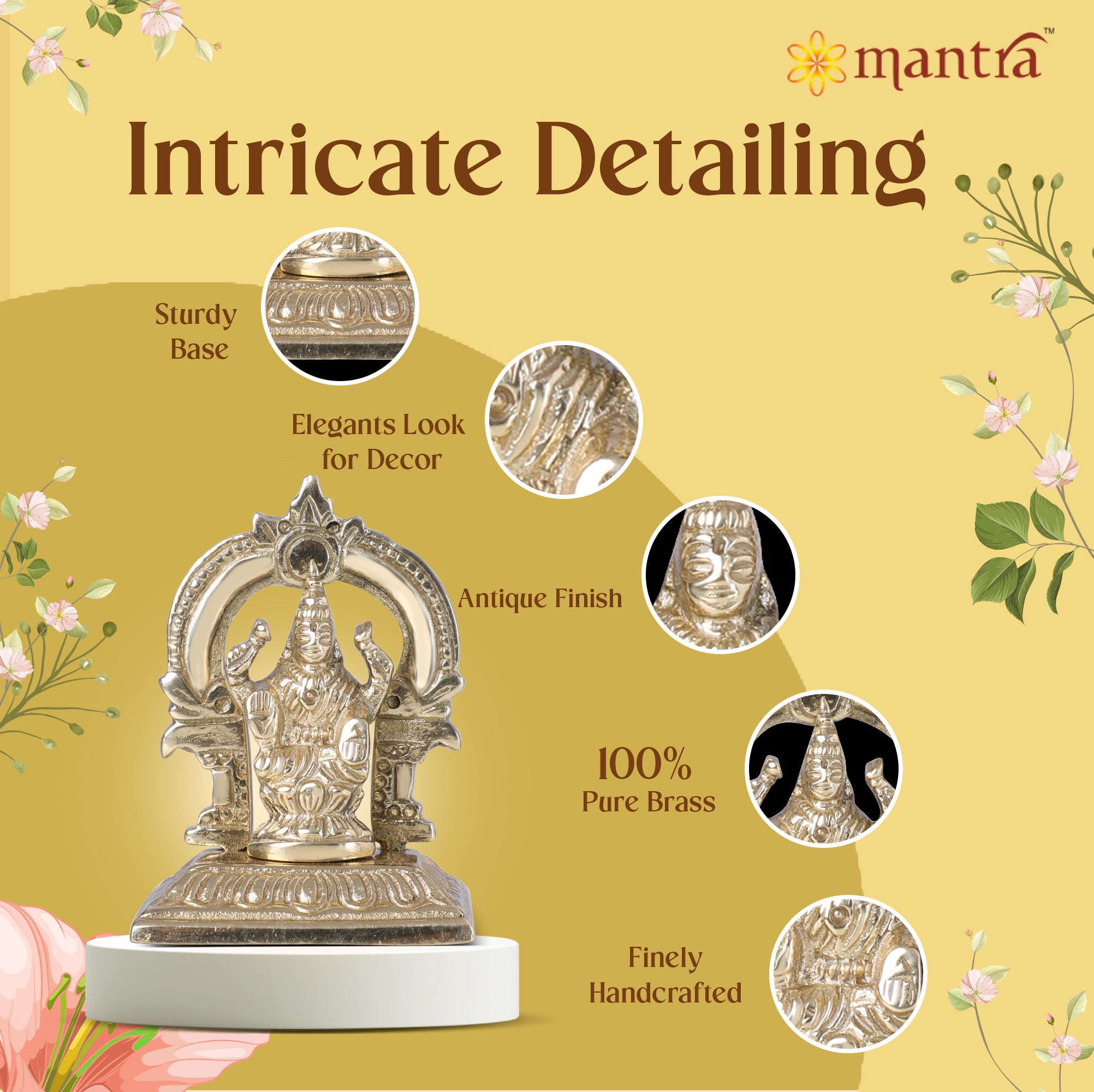 - PURE SOLID BRASS: Elegantly crafted with 100% pure solid brass metal, this Mantra’s Lakshmi Devi idol invites serenity, prosperity, and positivity into your home.