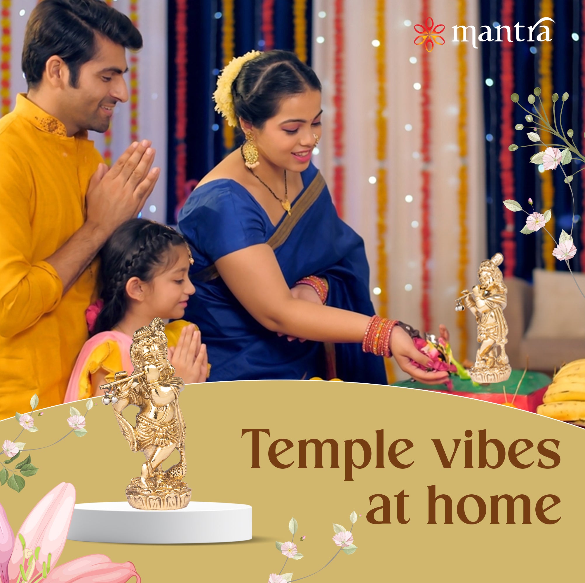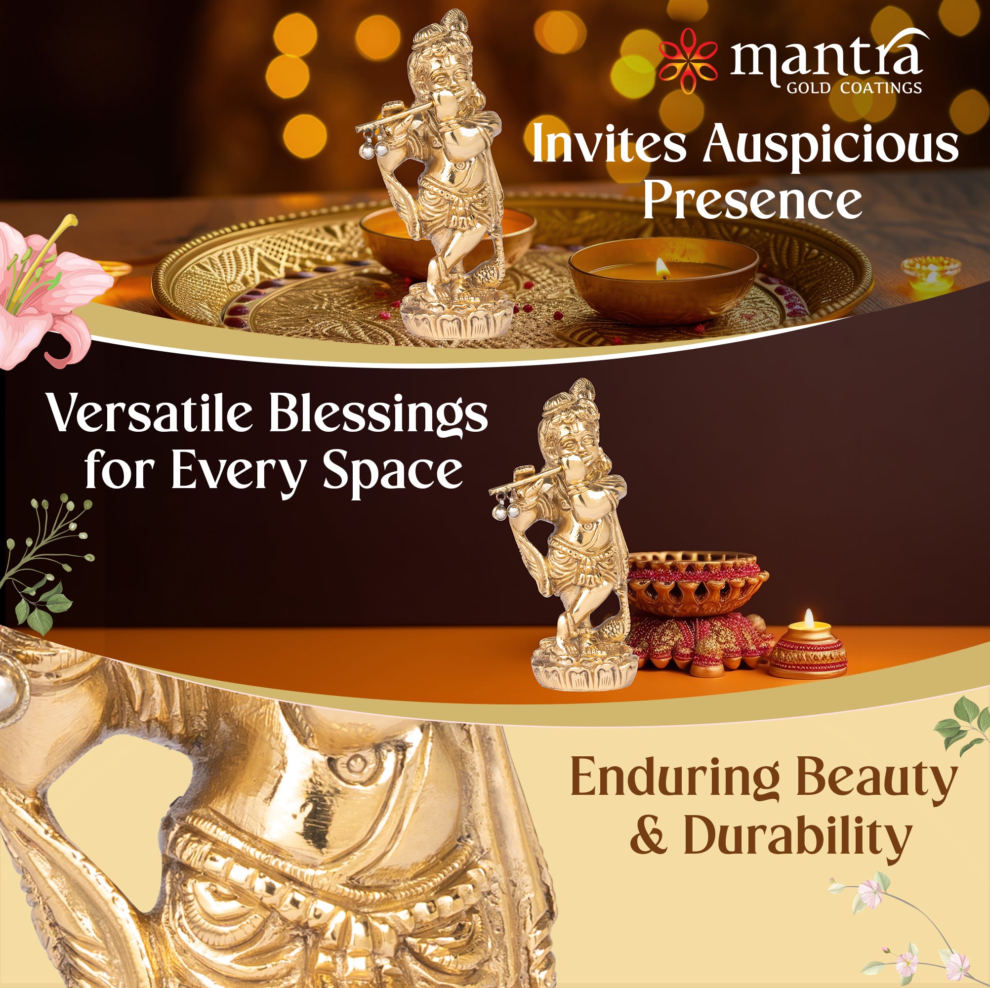 - Pure Solid Brass: Elegantly crafted with 100% pure brass and a gleaming polished lacquer finish, this Mantra’s Krishna idol invites serenity, prosperity, and positivity into your home.