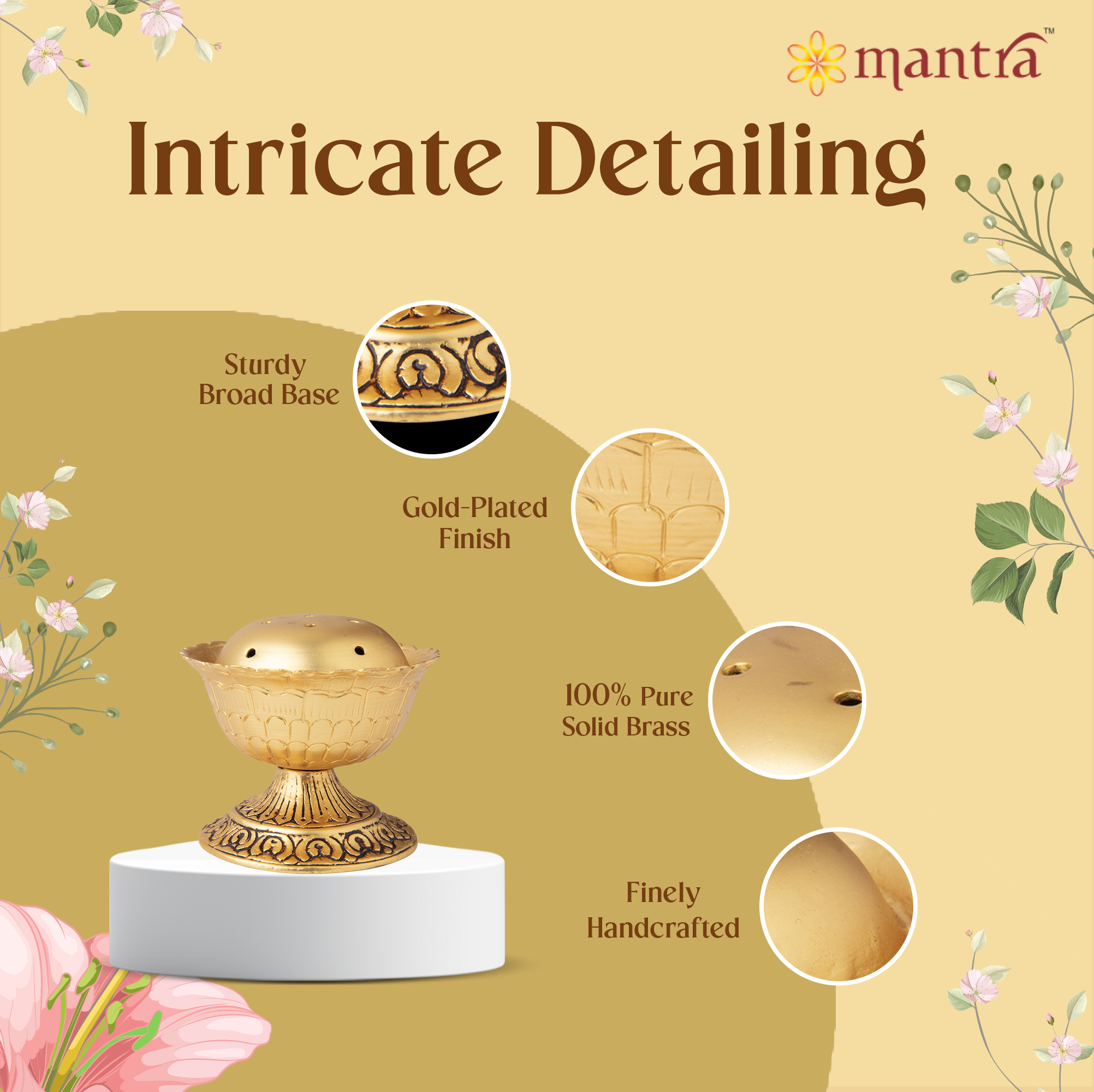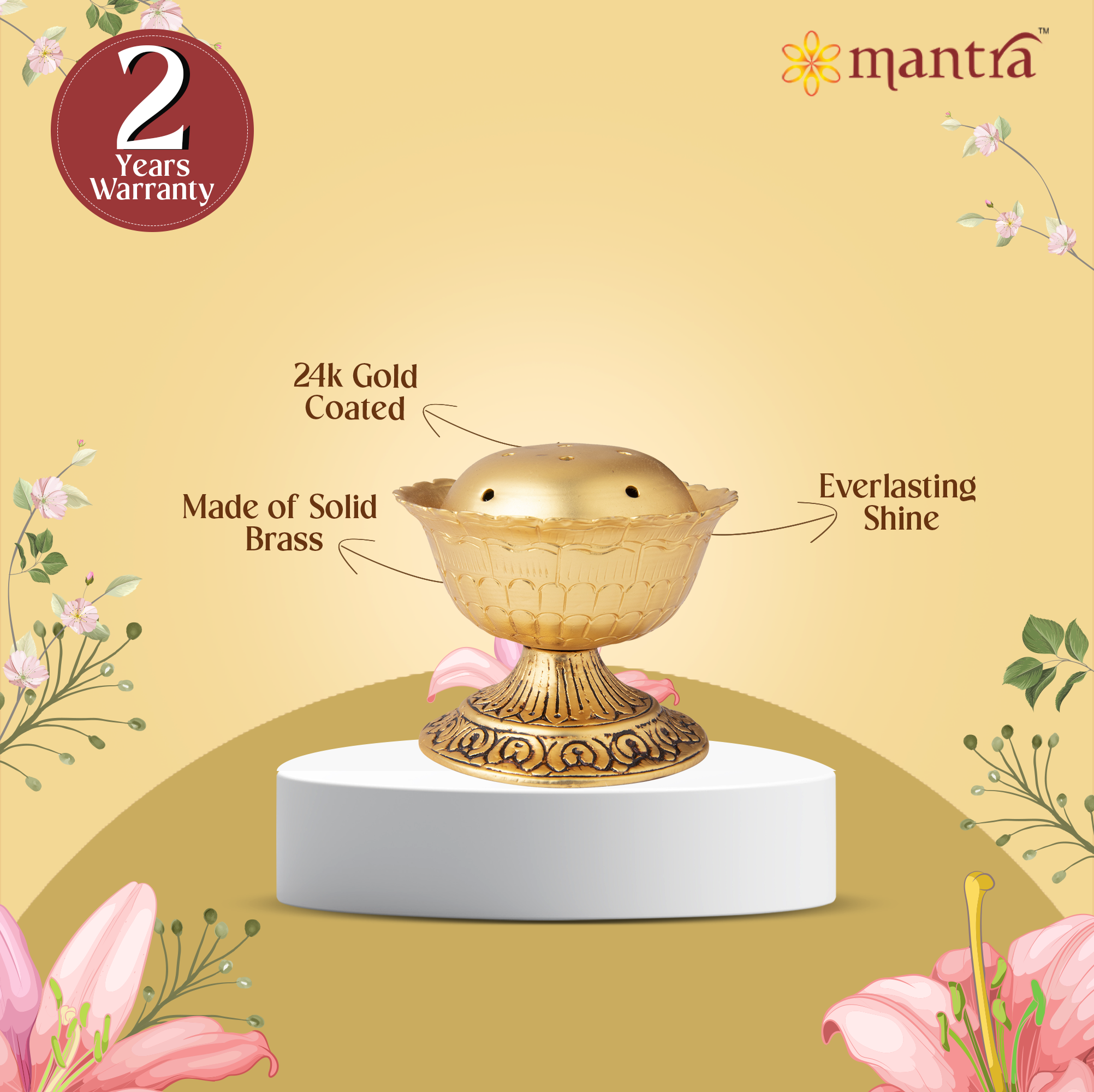 - Peace and protection: Experience long lasting elegance and assured peace of mind with Mantra’s 1-year Gold Plating warranty. The use of high-quality materials in this incense holder ensures durability, a lustrous finish, and resistance to tarnishing.