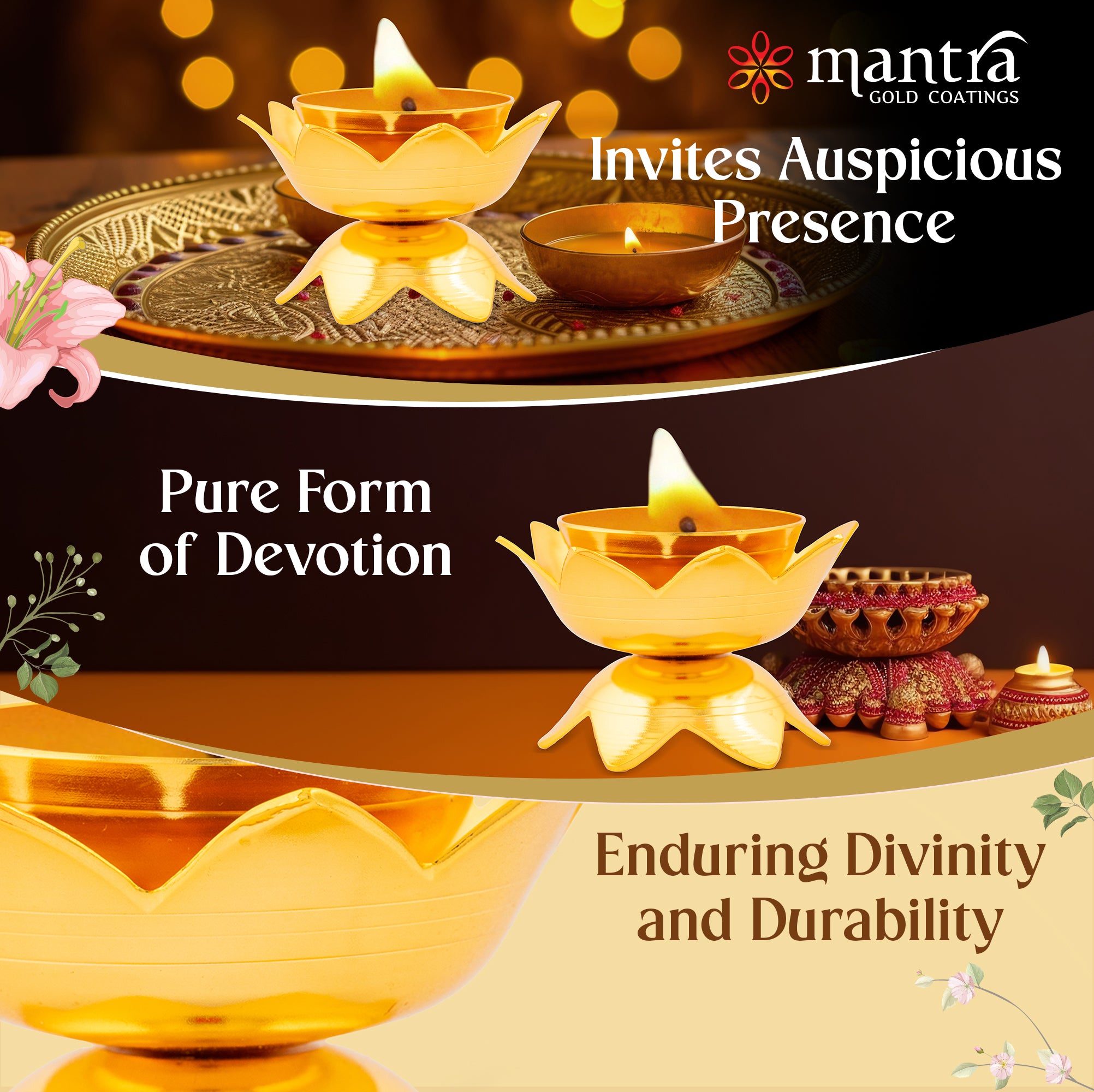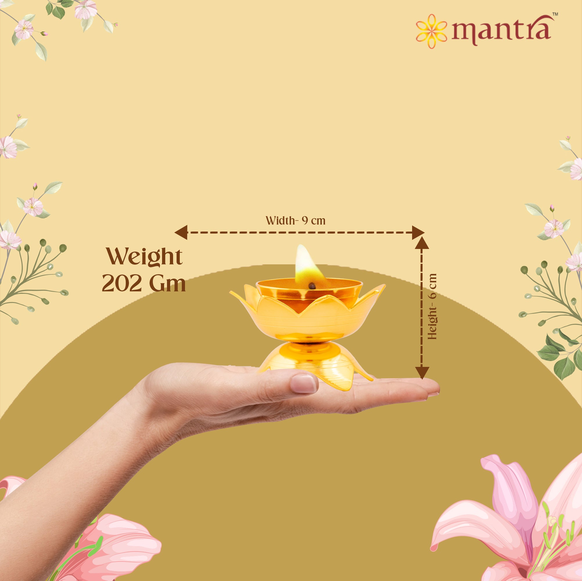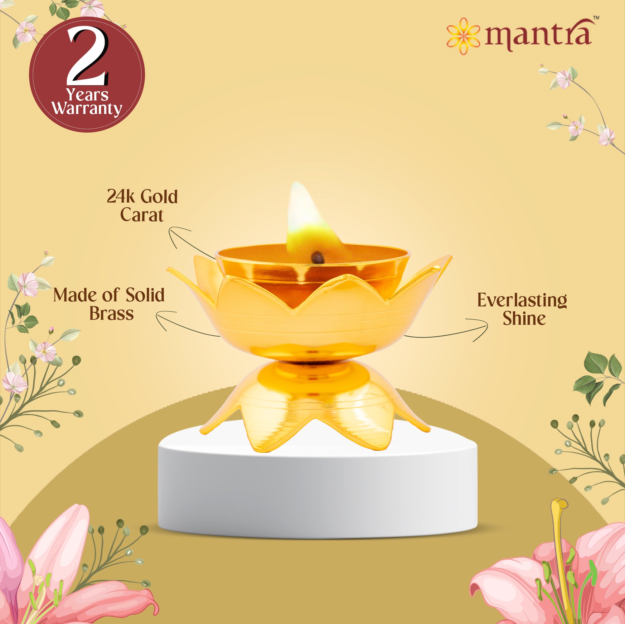 - Peace and protection: Experience long lasting elegance and assured peace of mind with Mantra’s 1-year warranty on its 24K micro gold plating. The use of high-quality materials and lacquer polishing in this brass diya ensures durability, a lustrous finish, and resistance to tarnishing.