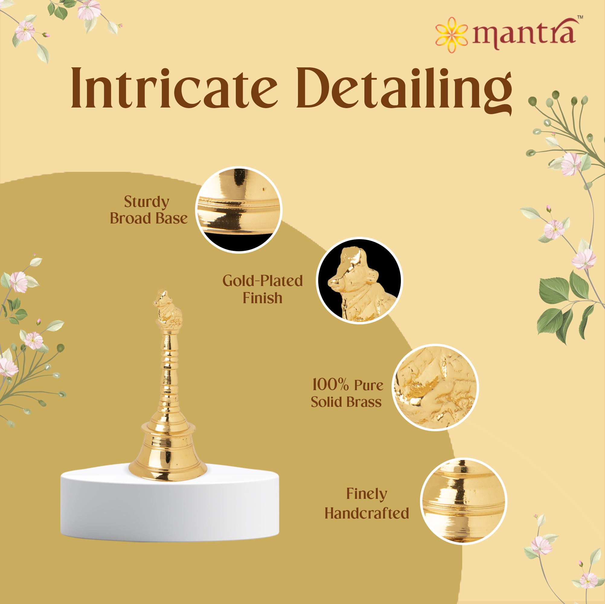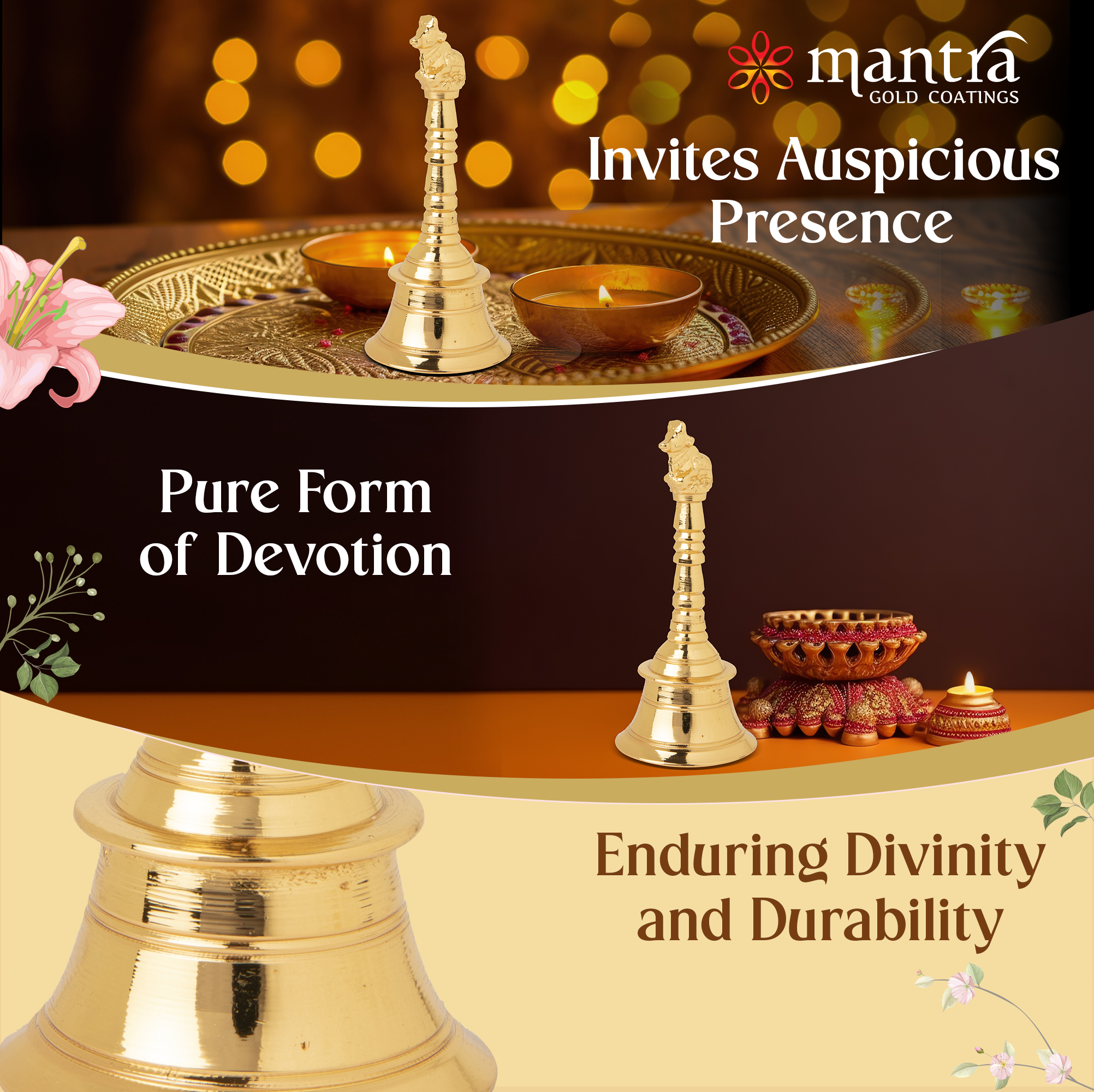 - Peace and protection: Experience long lasting elegance and assured peace of mind with Mantra’s 1-year Gold Plating warranty. The use of high-quality materials in this pooja bell ensures durability, a lustrous finish, and resistance to tarnishing.