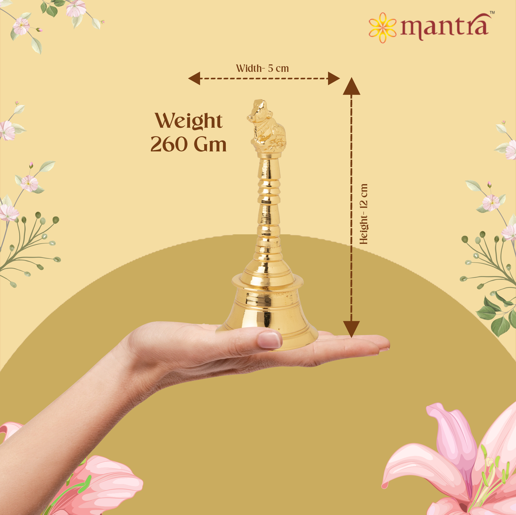 MANTRA MUKTI Nandi Pooja Bell for Home Mandir | Brass Bell for Pooja Room (Gold Coated with 1-year Warranty for Plating) | Puja Ghanti for Home Temple | Small Bell (4.8” Height)