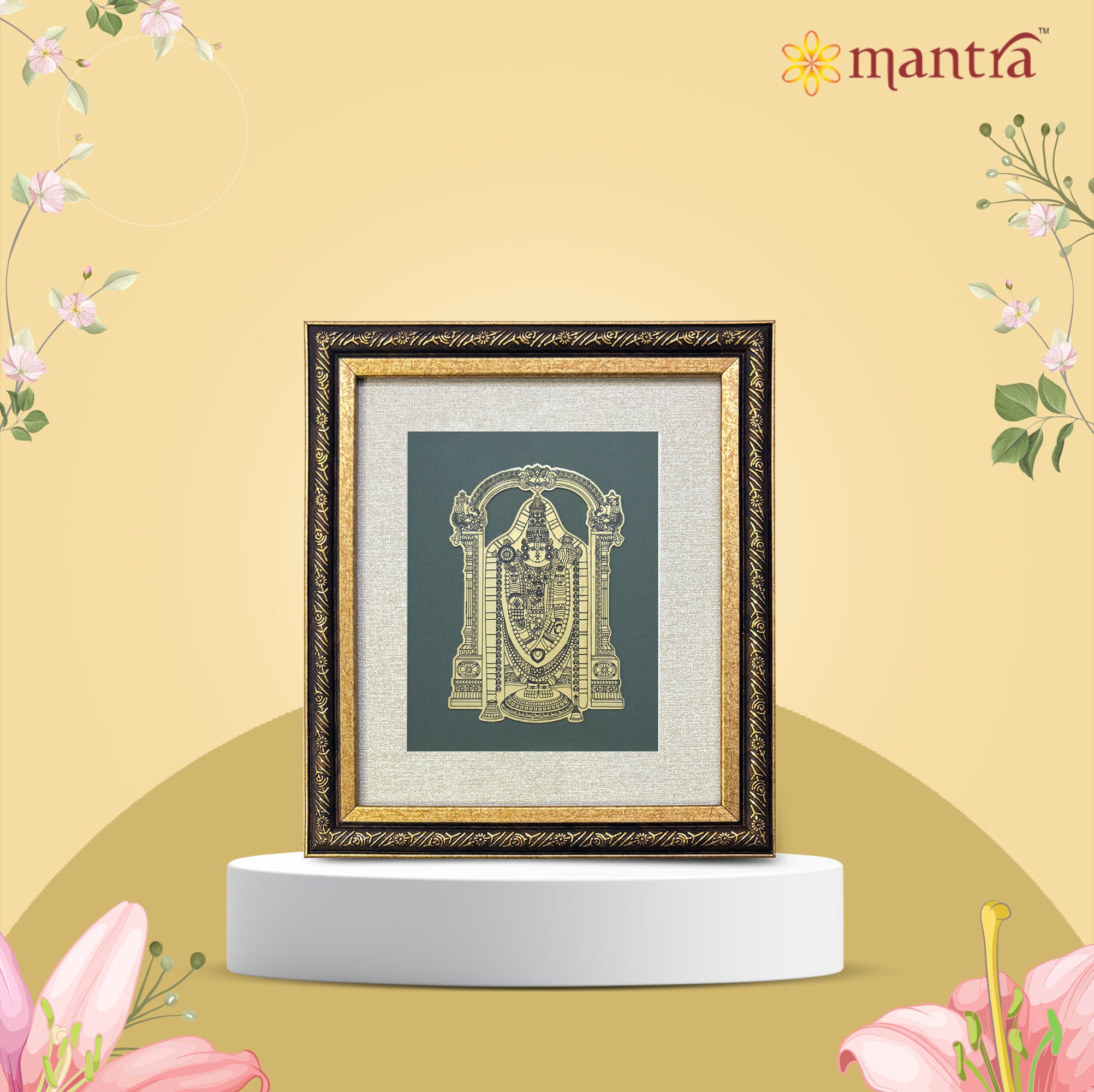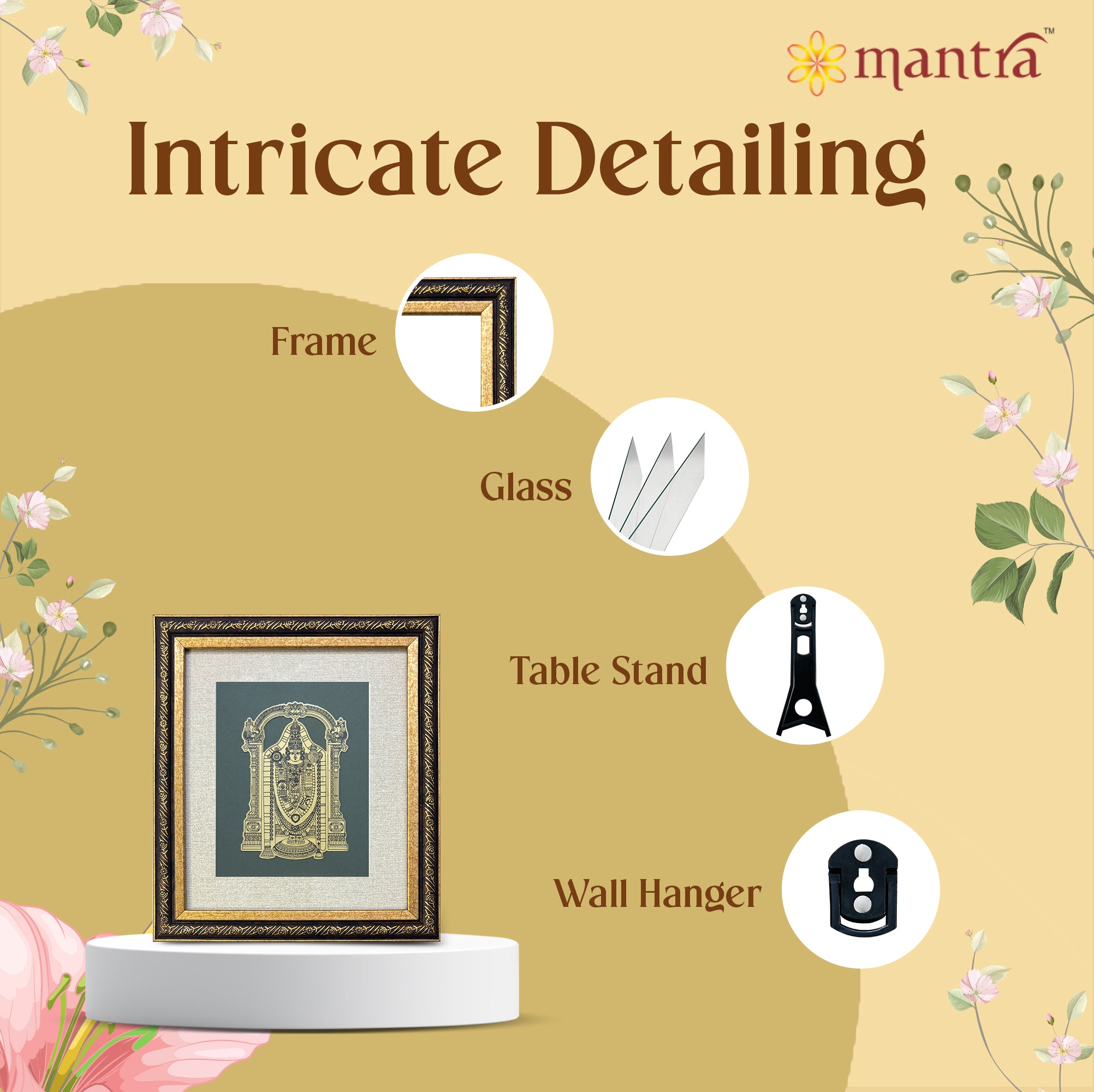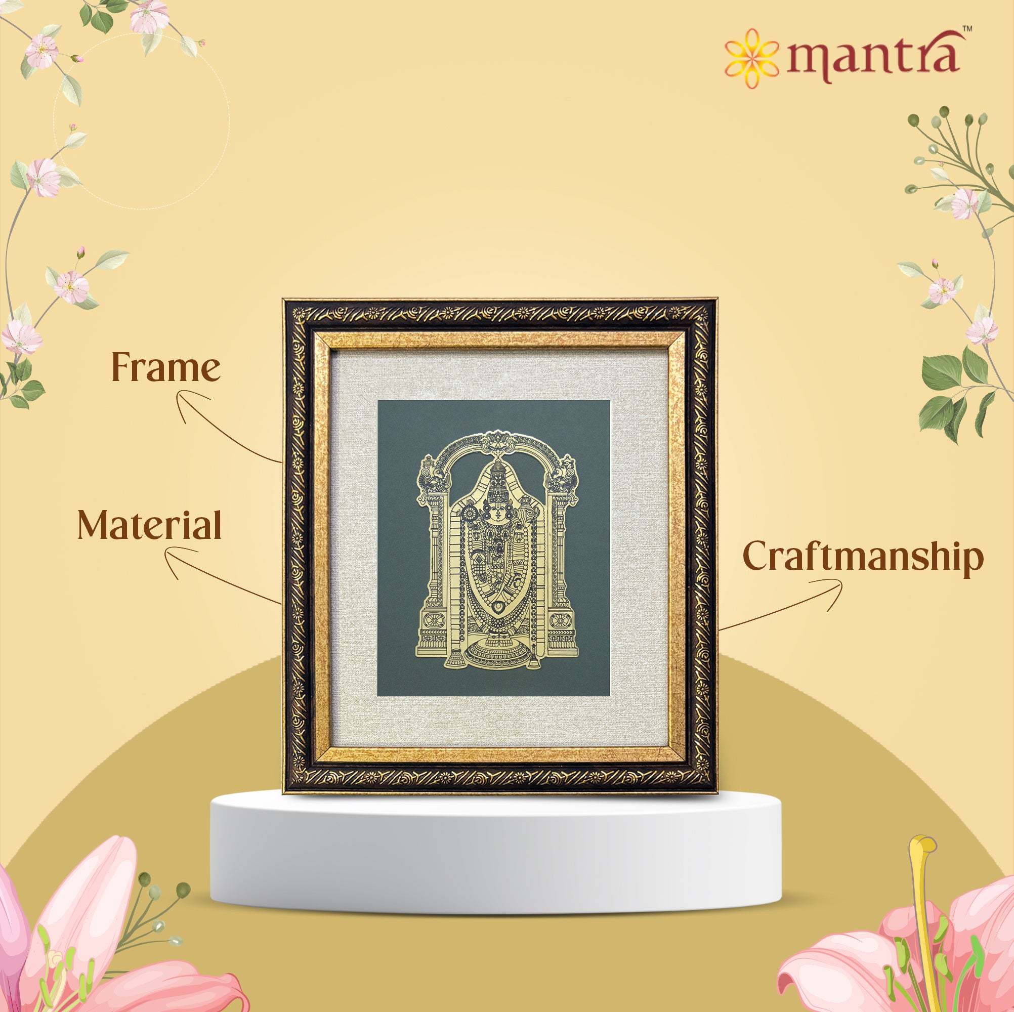 Mantra OJAS Brass Engraved (Antique Finish) Balaji Thayar Photo Frame | Home Decor Wall Decoration Gifting for Home, Living Room, Pooja Room, and Shops (8"x7")