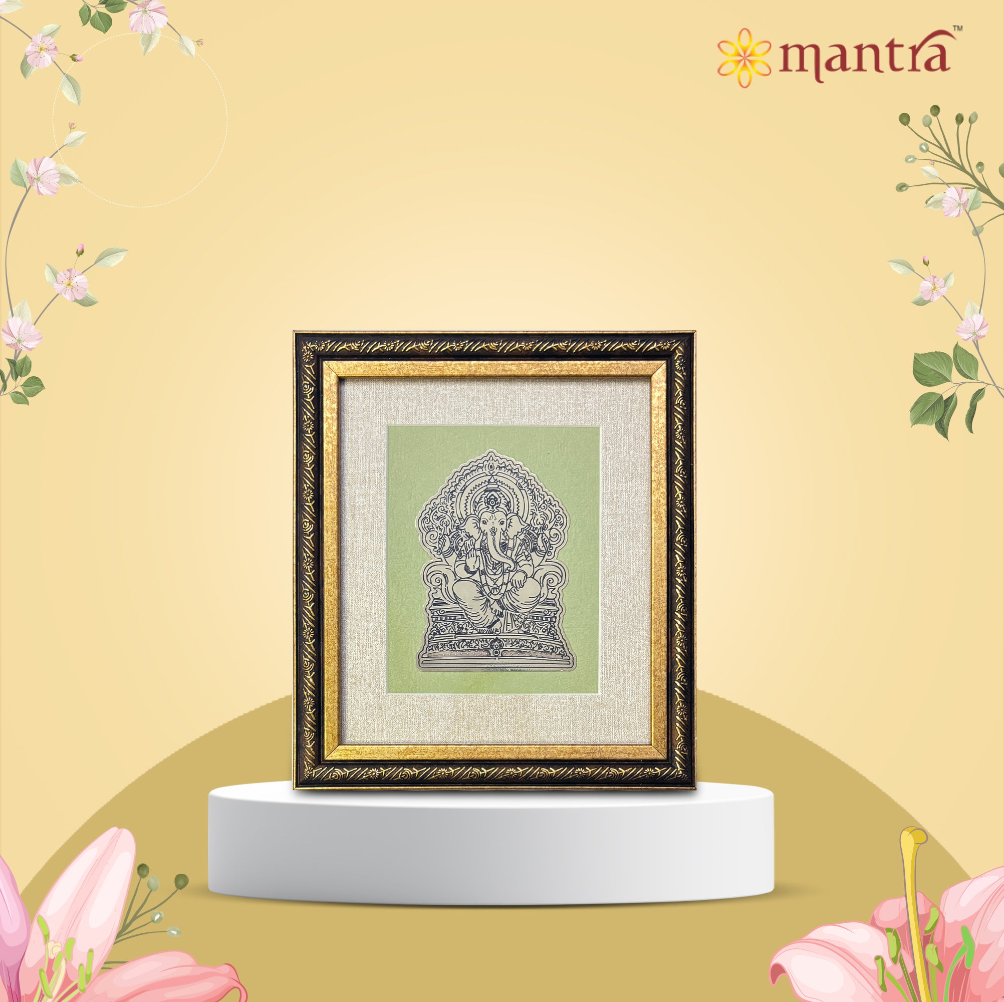 Mantra OJAS Brass Engraved (Antique Finish) Ganesha Photo Frame | Home Décor Wall Decoration Gifting for Home, Living Room, Pooja Room, and Shops (8"x7")