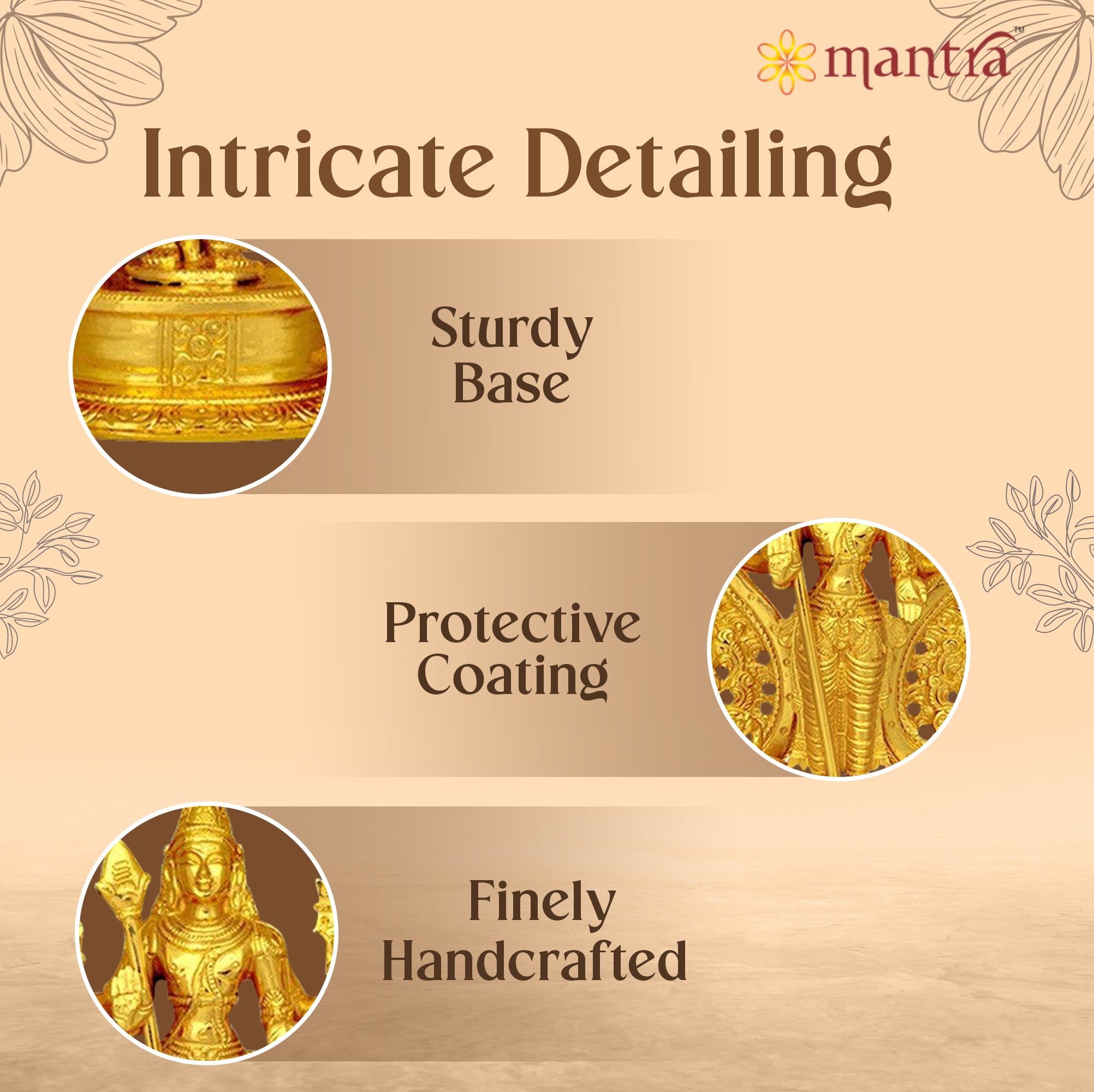 Peace & Protection: Experience long lasting elegance and assured peace of mind with Mantra’s 1-year warranty for gold plating. Mantra’s Murugan god idol is made of solid brass metal coated with pure 24 carat gold.