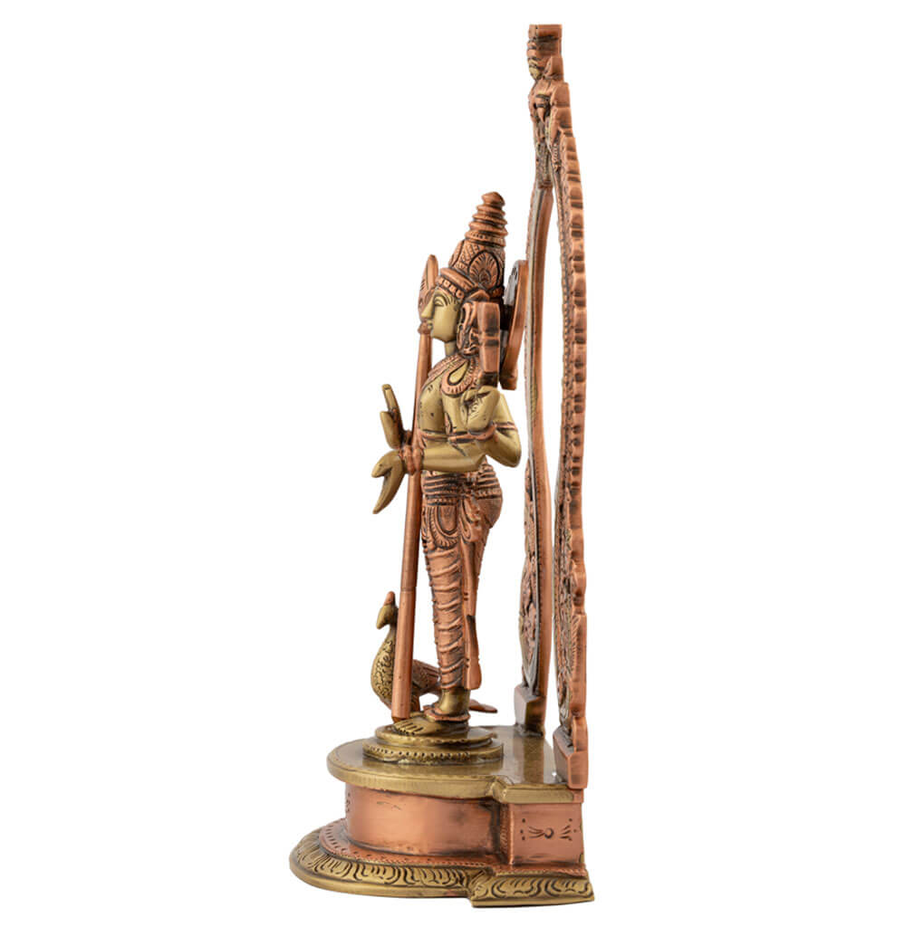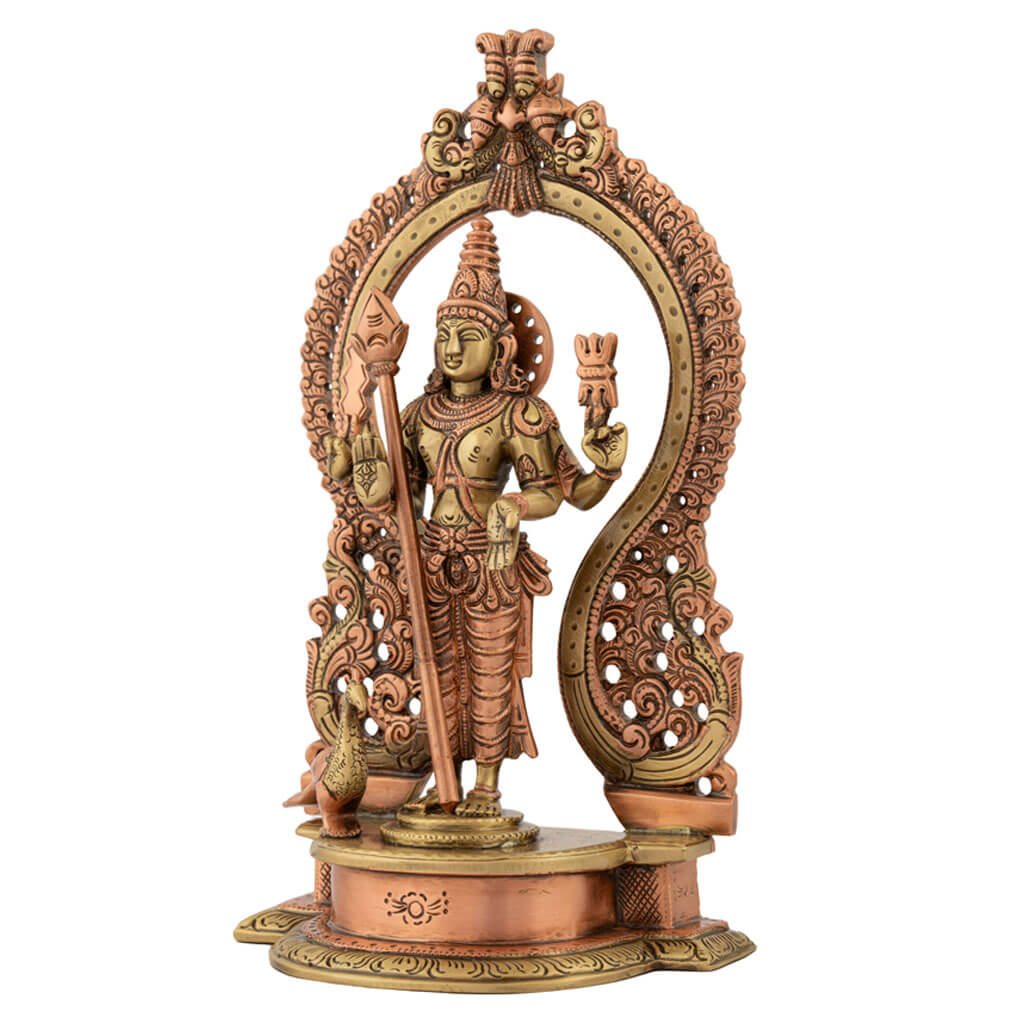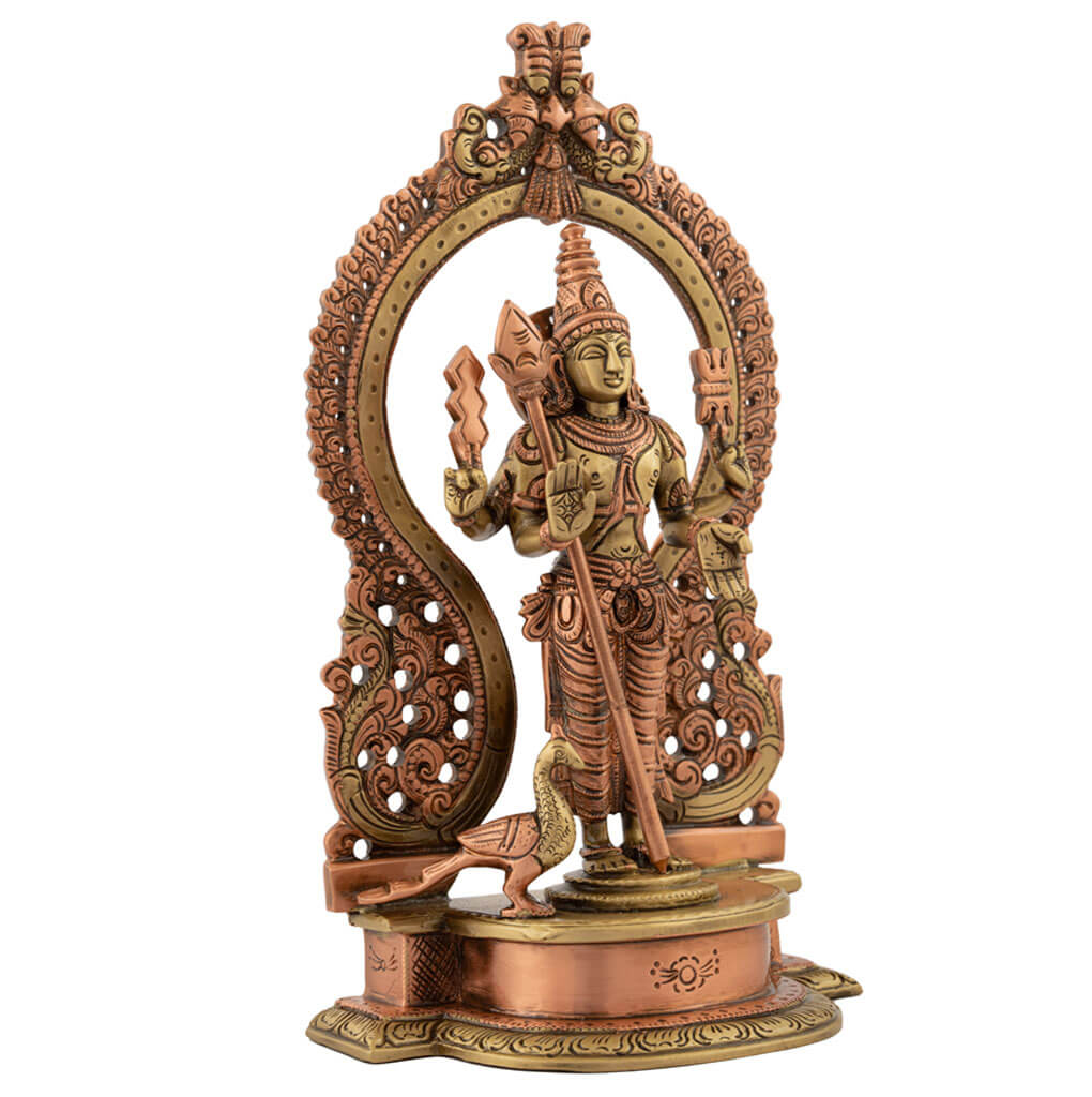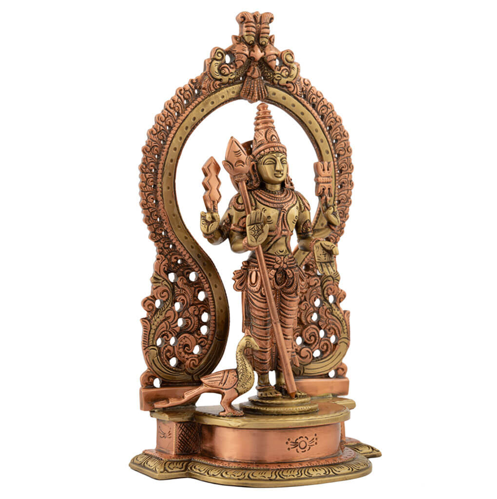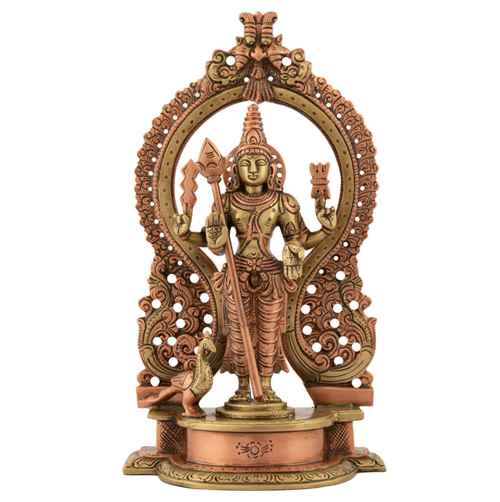 The son of Lord Shiva and Goddess Parvati. Murugan is often depicted holding a spear or vel and riding a peacock.The peacock is believed to symbolise vanity and ego, as it is known for its beautiful and colourful feathers.Lord Murugan's association with the peacock is rich in symbolism, representing the triumph over ego, the vanquishing of demons, and the embodiment of divine virtues.