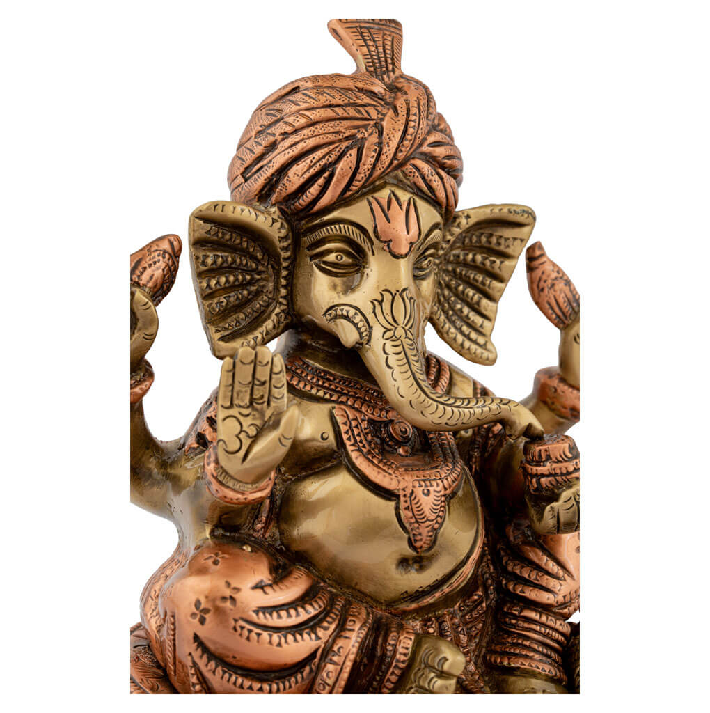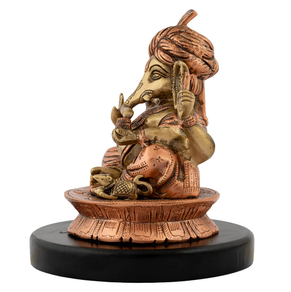 Pagadi Ganesha, also known as Turbaned Ganesha, is a unique form of Lord Ganesha depicted wearing a turban or Pagadi on his head. This particular representation of Ganesha holds cultural and religious significance in Hinduism. The turban symbolises honour, respect, and authority in many South Asian cultures, and its presence on Ganesha signifies these qualities.Pagadi Ganesha for success, wisdom, and overcoming obstacles in their endeavours