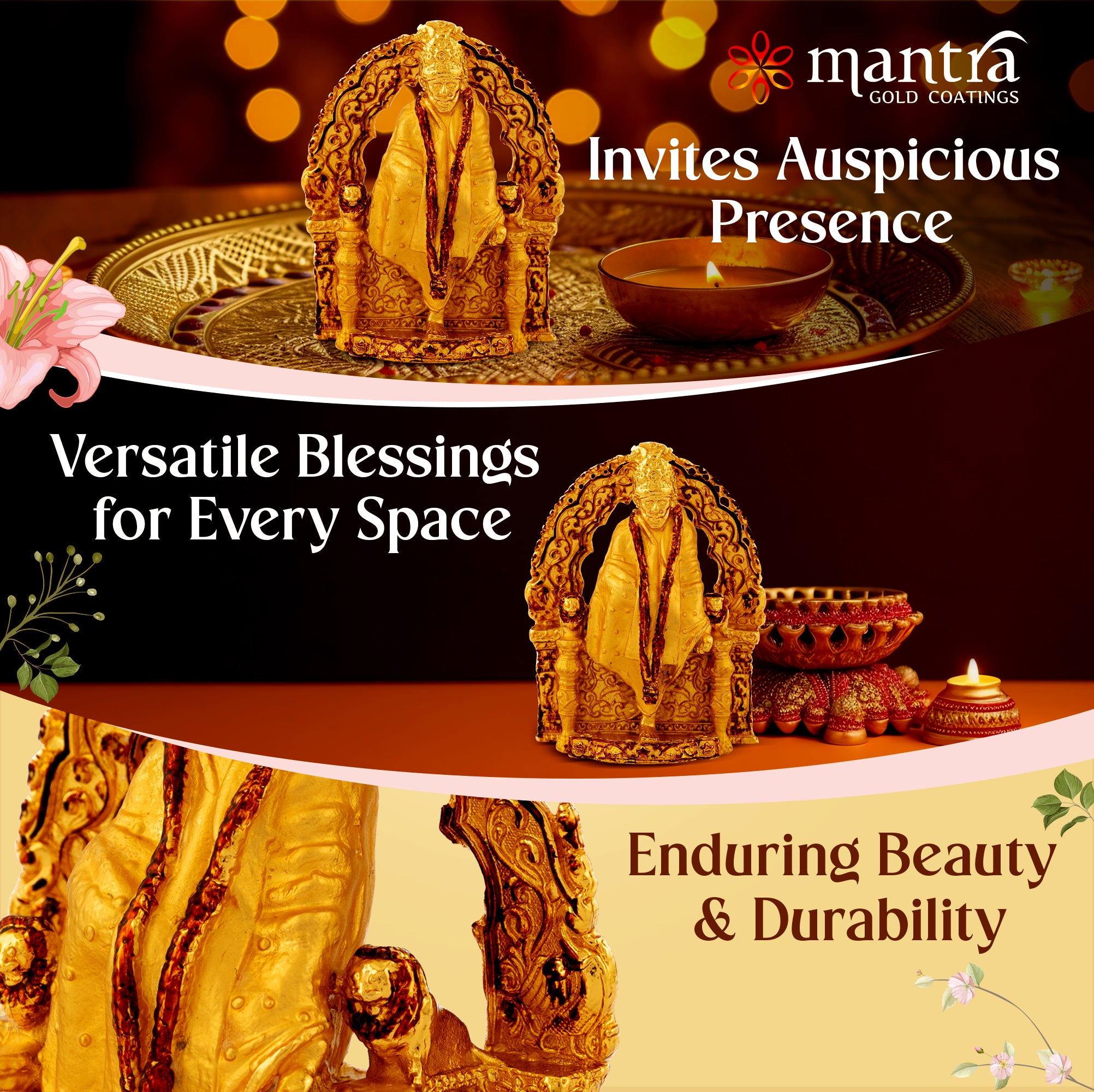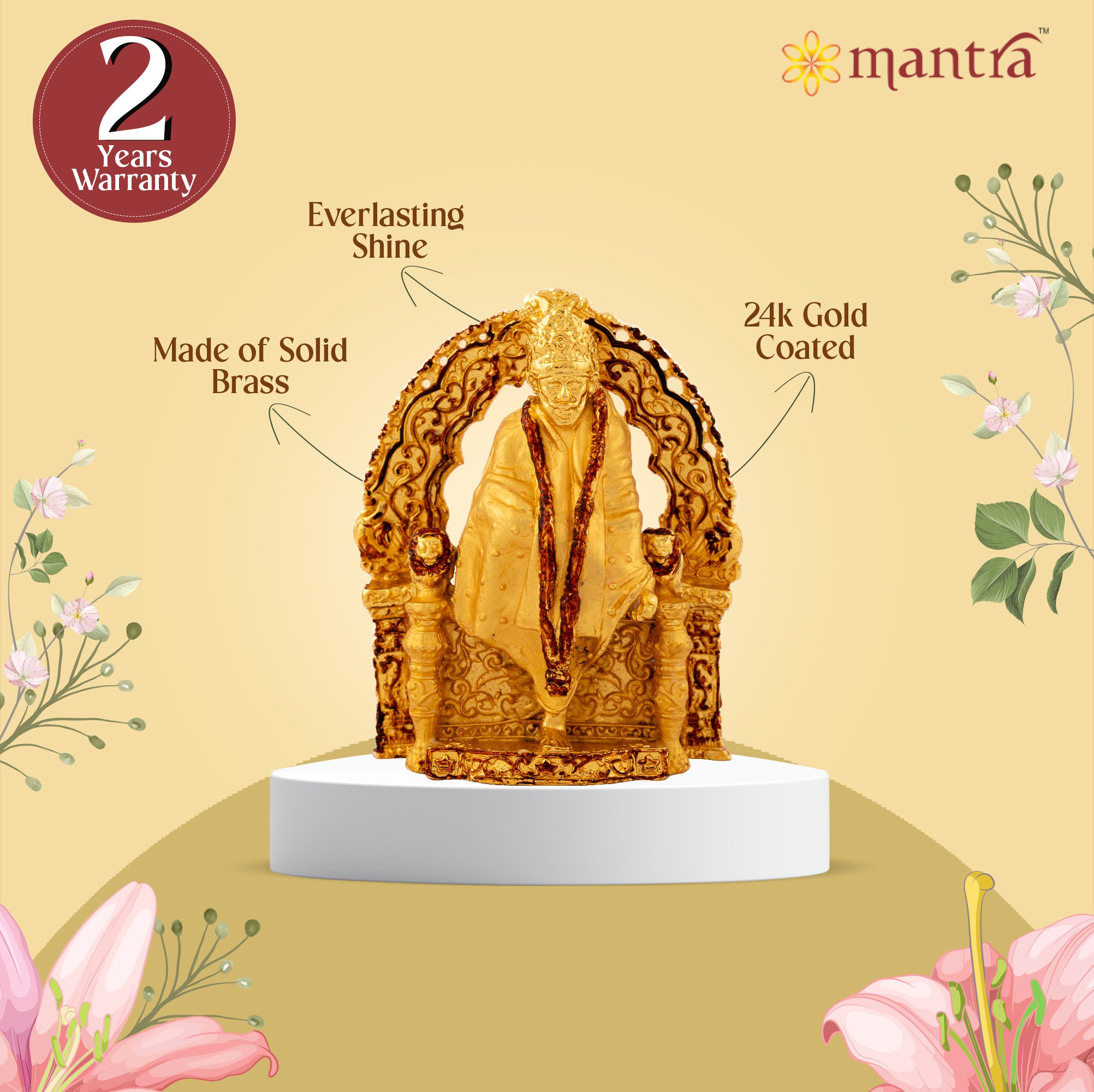 - Peace & Protection: Experience long lasting elegance and assured peace of mind with Mantra’s 1-year warranty for gold plating. Mantra’s Sai baba statue is made of solid brass metal coated with pure 24 carat gold.