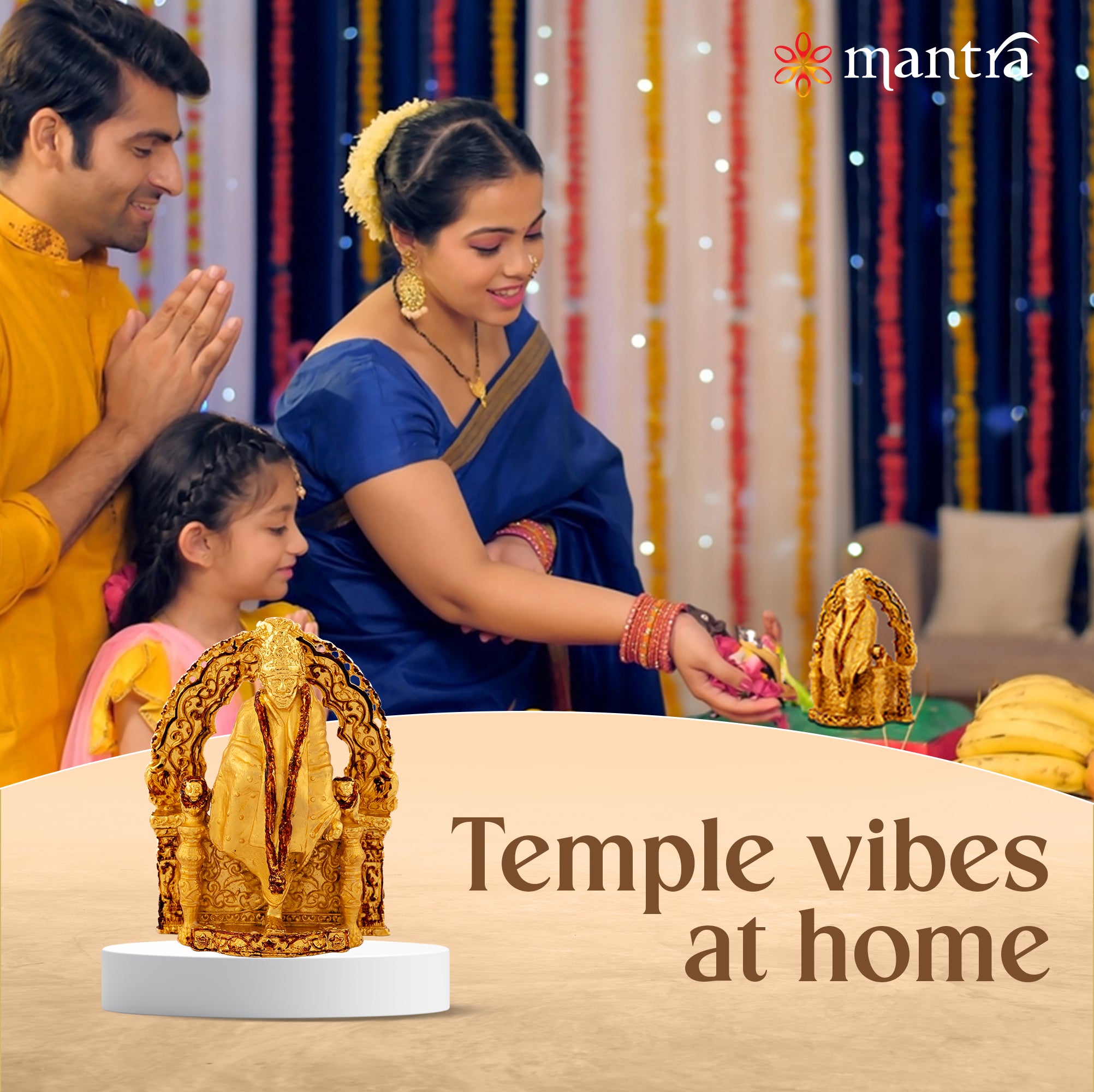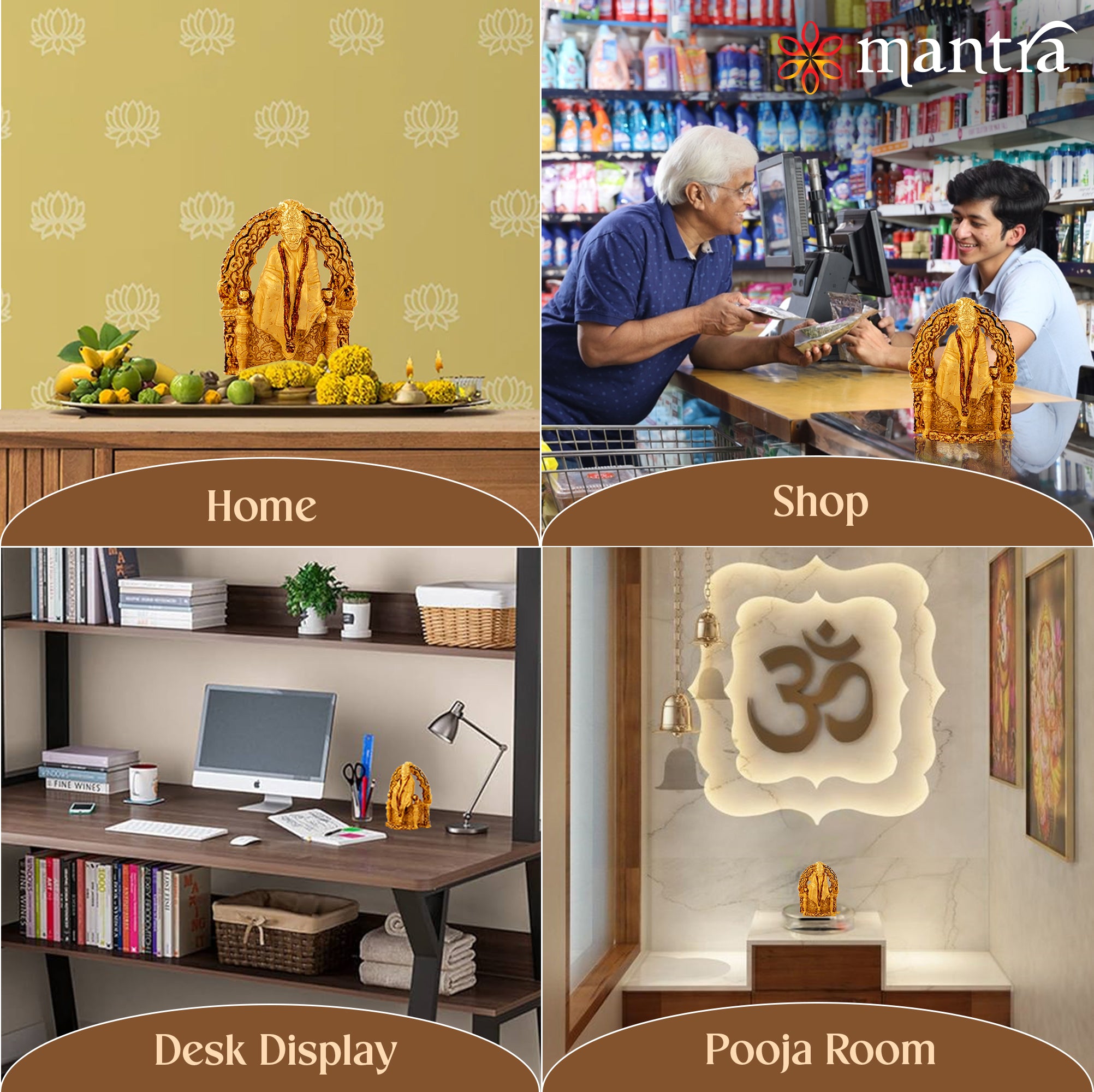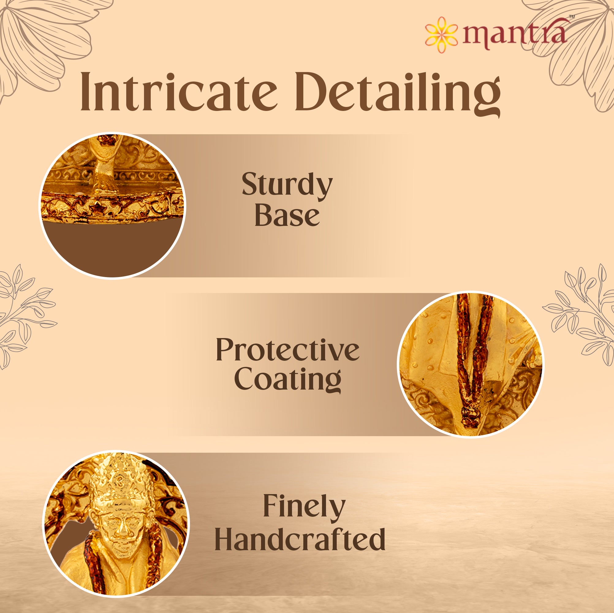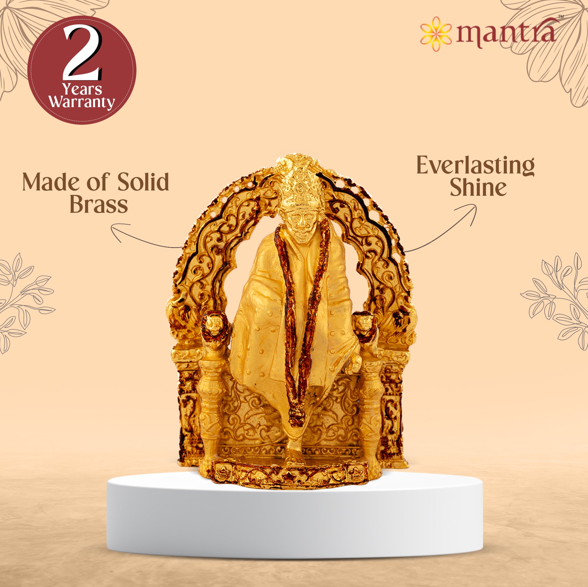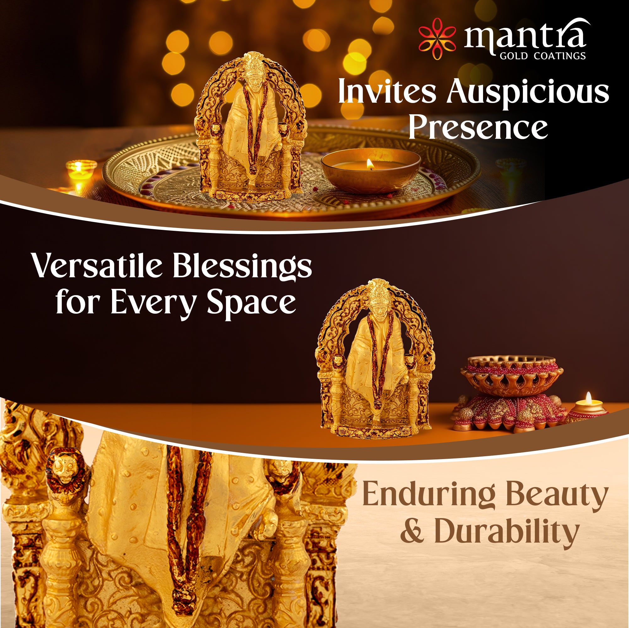 Peace & Protection: Experience long lasting elegance with Mantra’s Saibaba Idol made of solid copper metal and Gold antique finish is to prevent oxidation and dirt deposition.