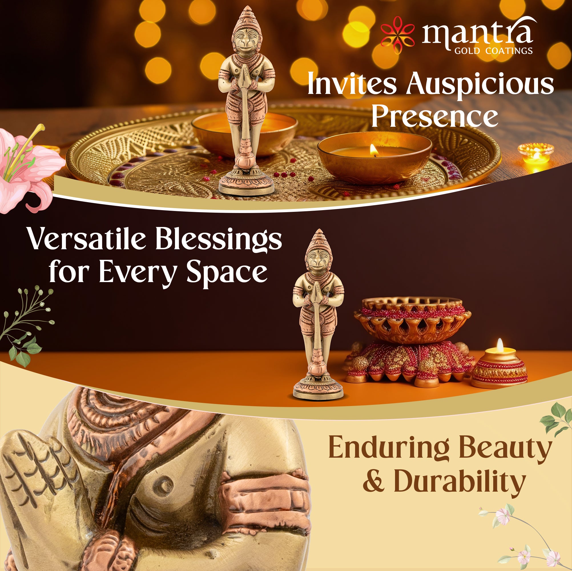 - Golden Grace: Elegantly crafted with a gleaming brass and copper antique finish, this Mantra’s Hanuman ji murti invites serenity, prosperity, and positivity into your home.