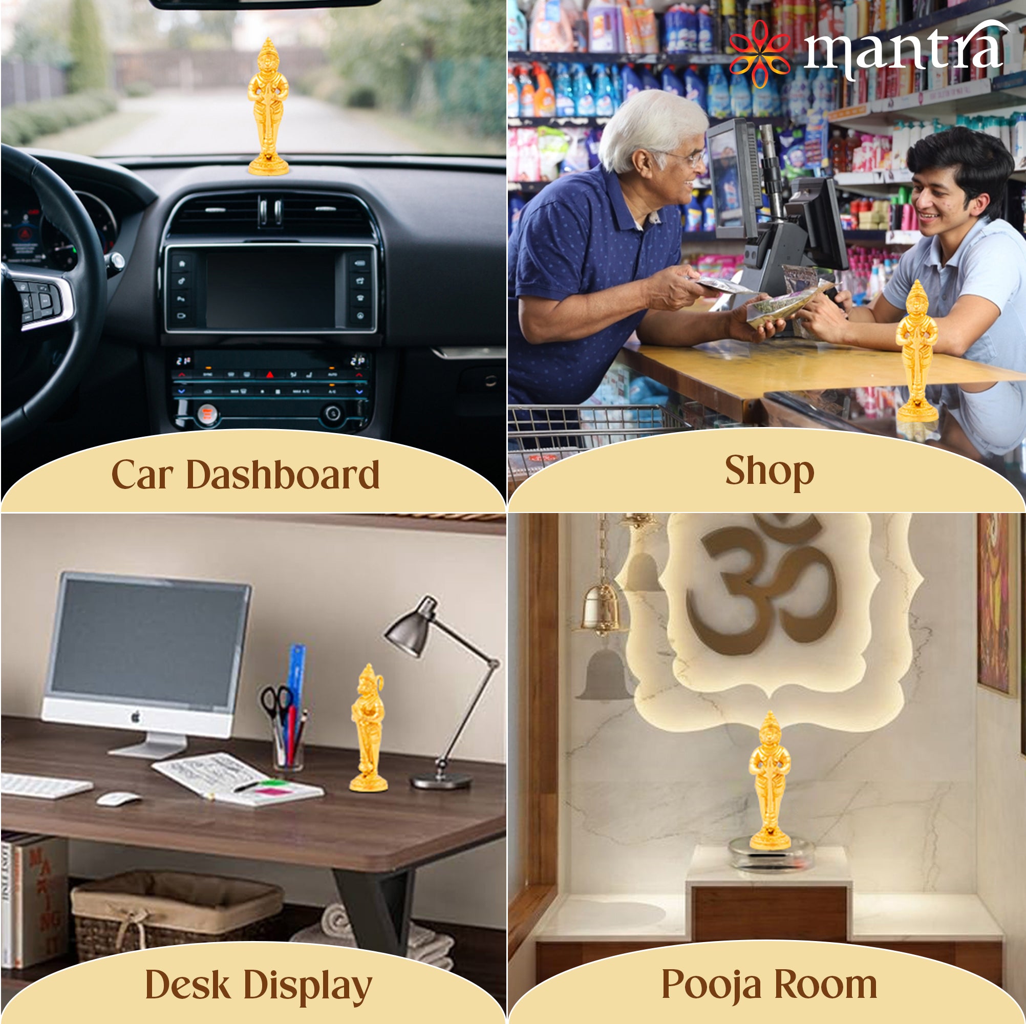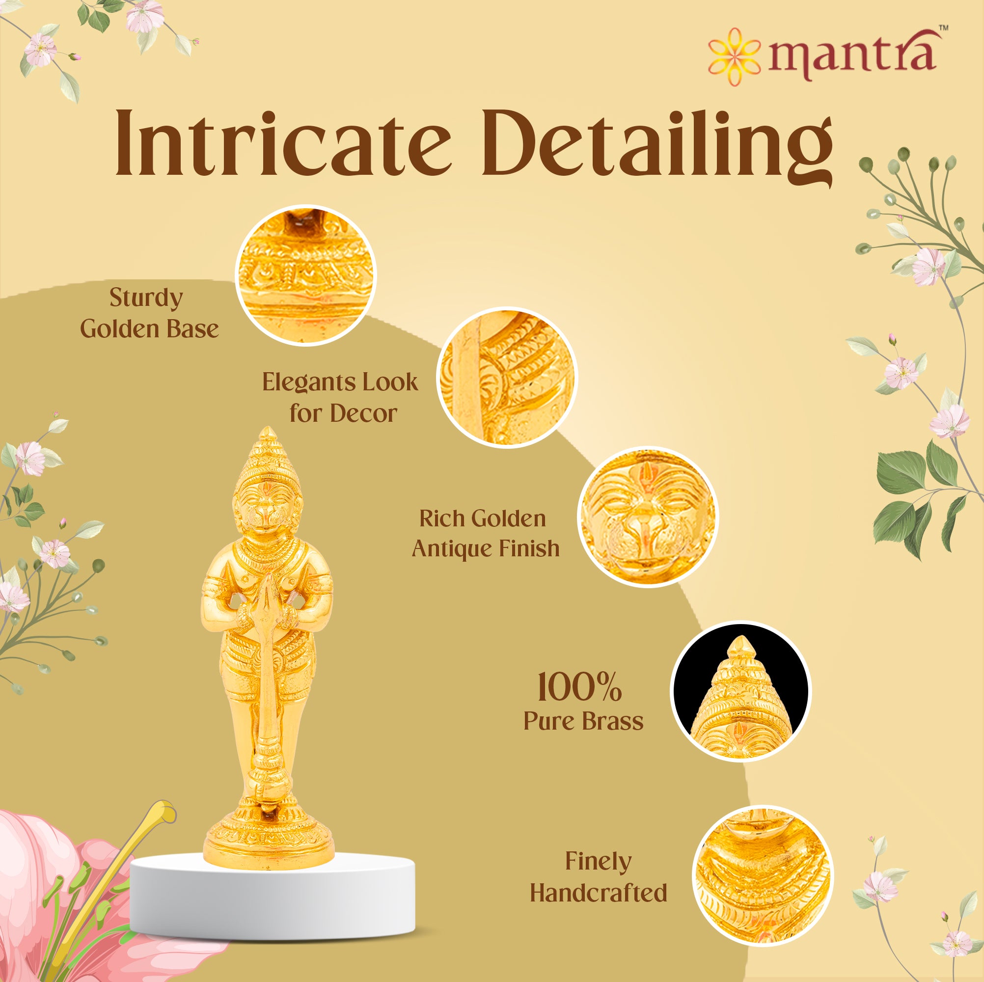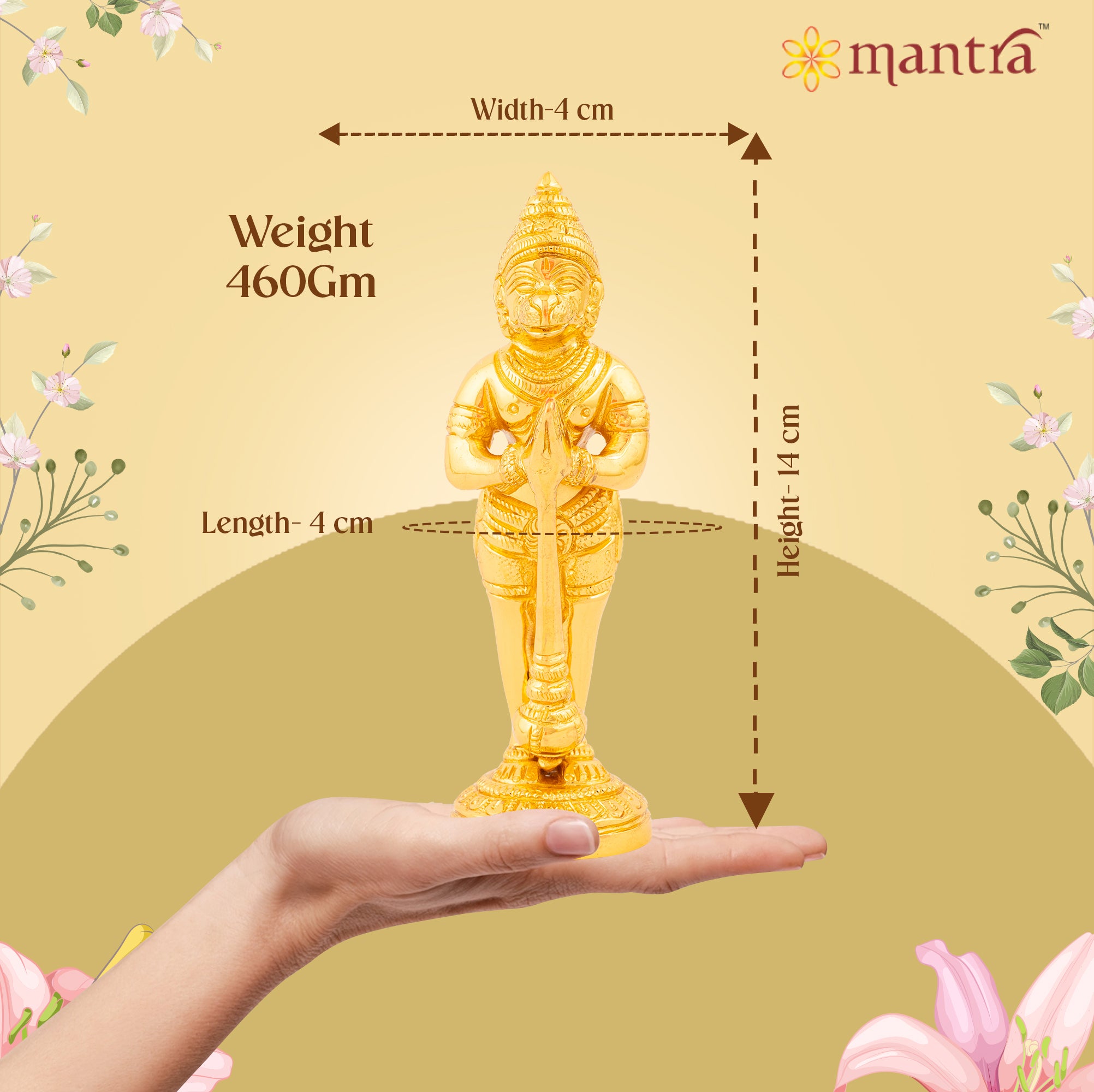 - Peace & Protection: Experience long lasting elegance and assured peace of mind with Mantra’s 1-year warranty for gold plating. Mantra’s Hanuman god idol is made of solid brass metal coated with pure 24 carat gold.
