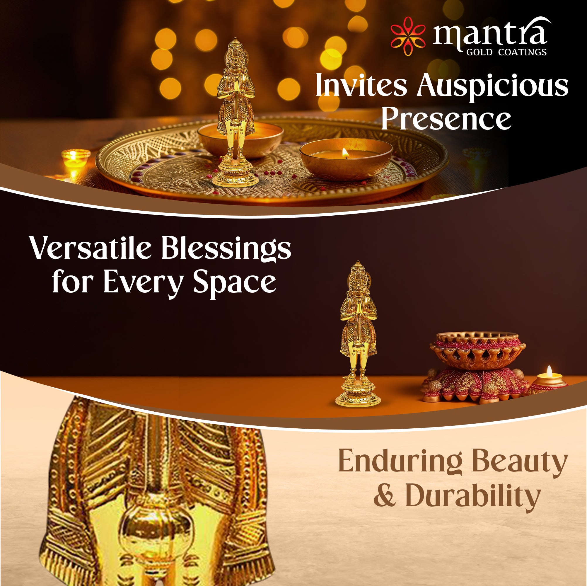Pure Solid Brass: Elegantly crafted with 100% pure brass and (24k gold plated finish), this Mantra’s Hanuman idol invites serenity, prosperity, and positivity into your home.