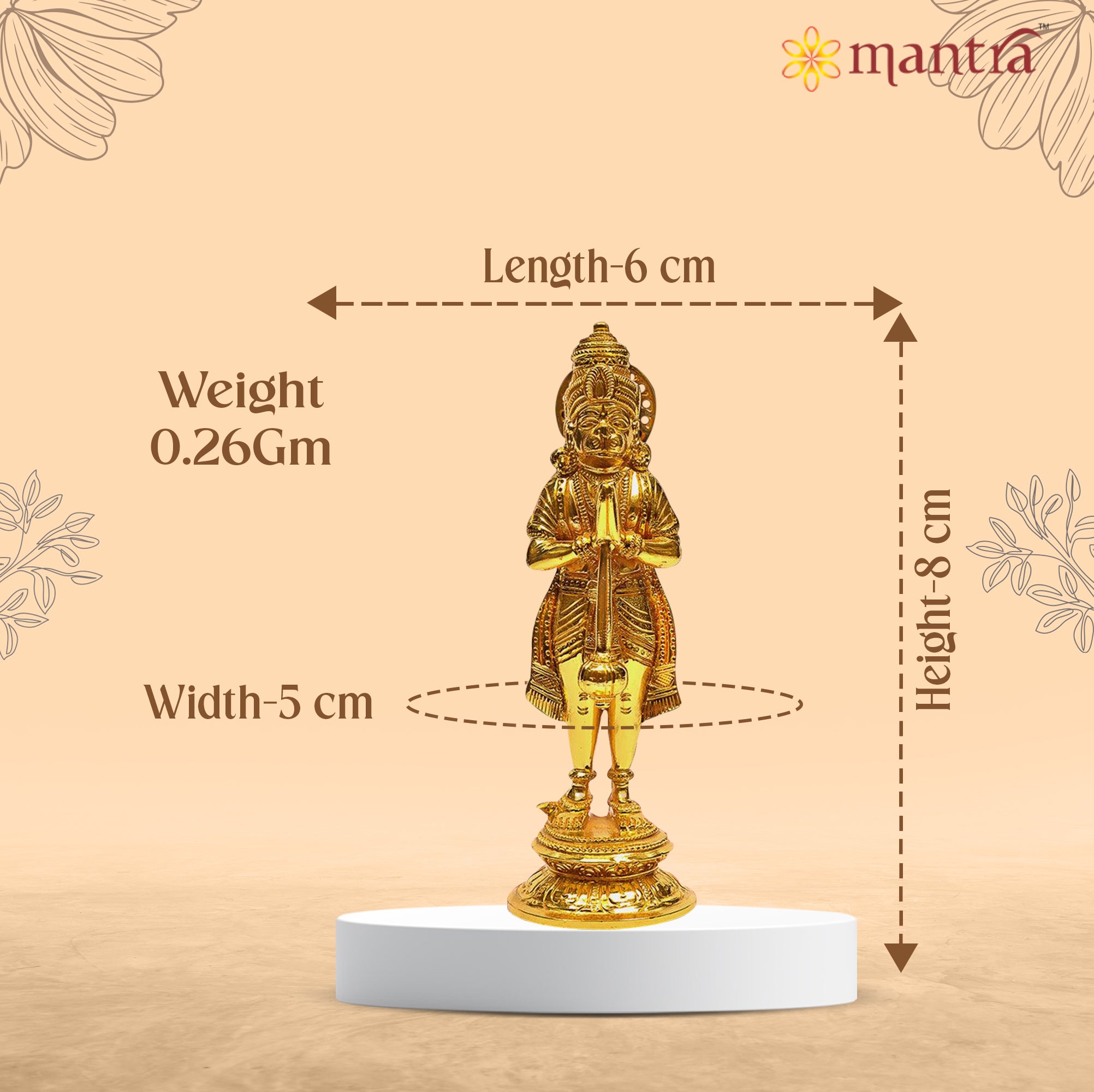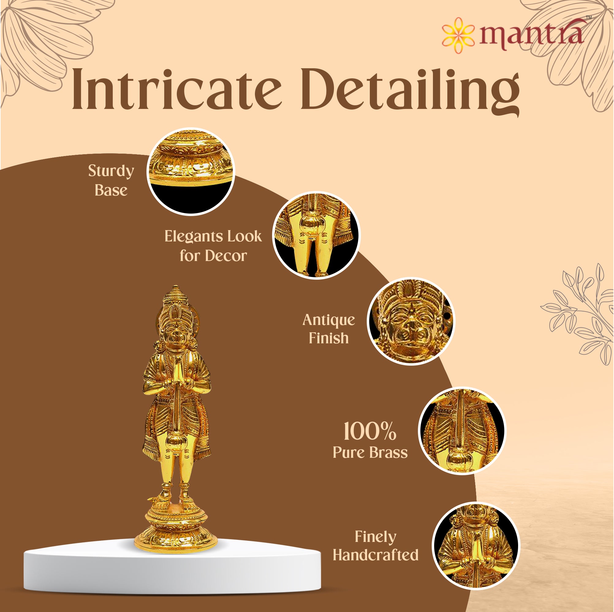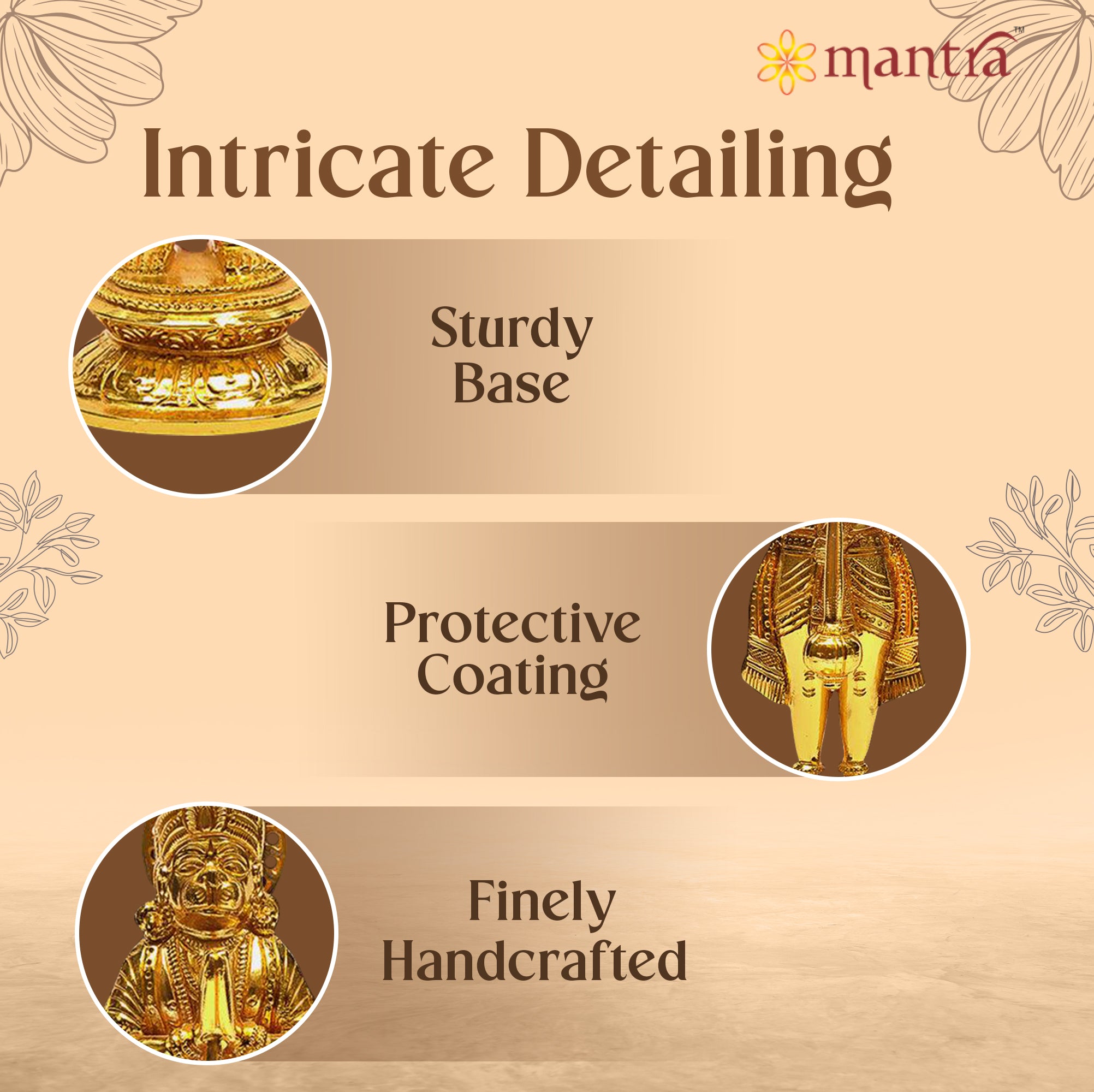 Elegance & Protection: Experience long lasting elegance with Mantra’s Hanuman Idol made of solid brass metal and gold plated finish is to prevent oxidation and dirt deposition.