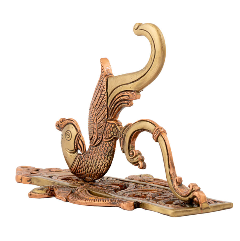 If you want to add an aesthetic appeal to your pooja room there is nothing better than our Two Parrot Wall Bracket. With a size of 10.2 inches, it is ideal for displaying small idols or religious artifacts, adding a touch of charm to your pooja space. With its prime focus on detailing and it’s craftsmanship craved in depth, it raises the vibration of the room in itself.