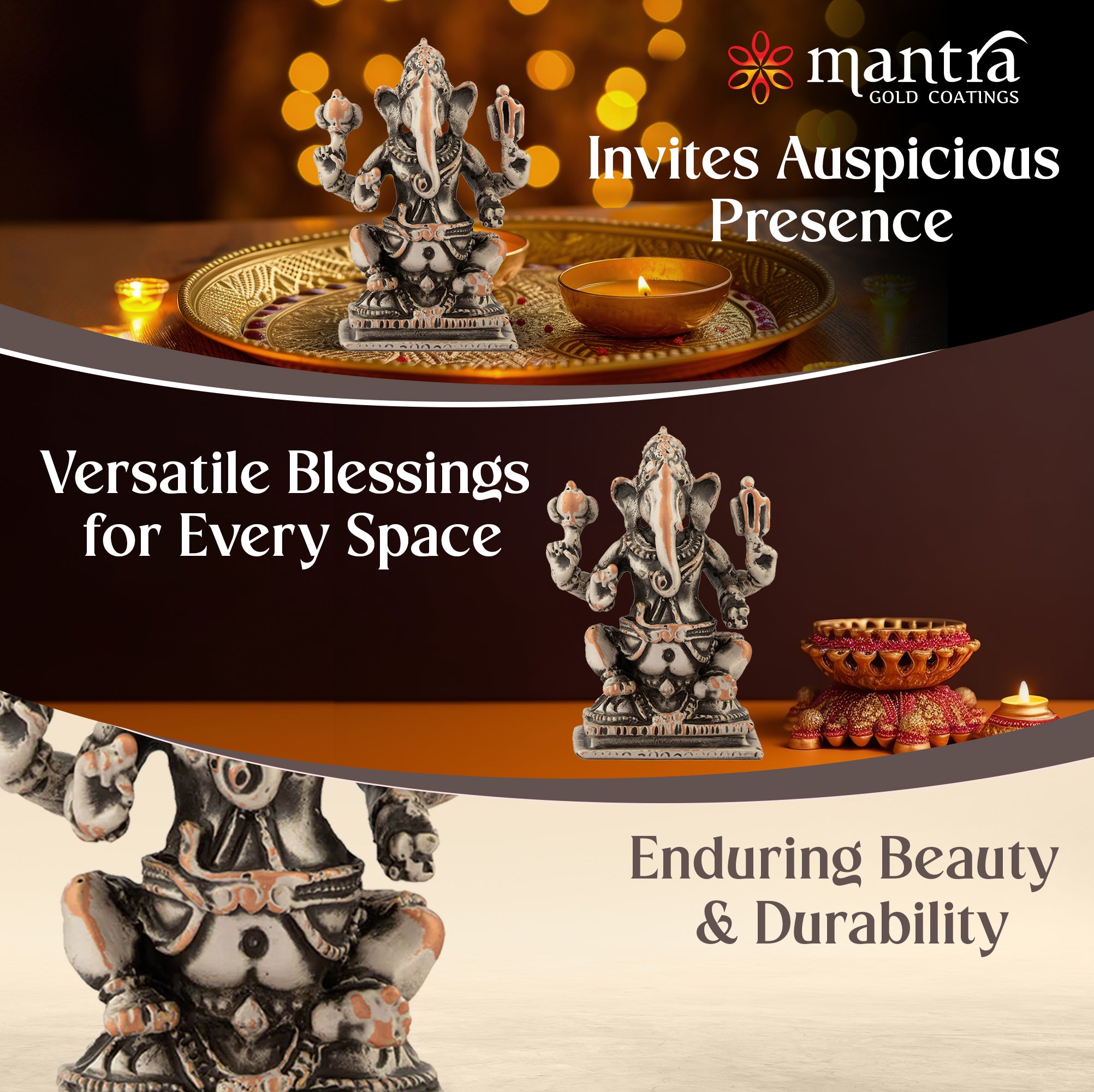 Pure Solid Brass: Elegantly crafted with 100% pure brass and (silver & copper finish), this Mantra’s Ganesh god idol invites serenity, prosperity, and positivity into your home.