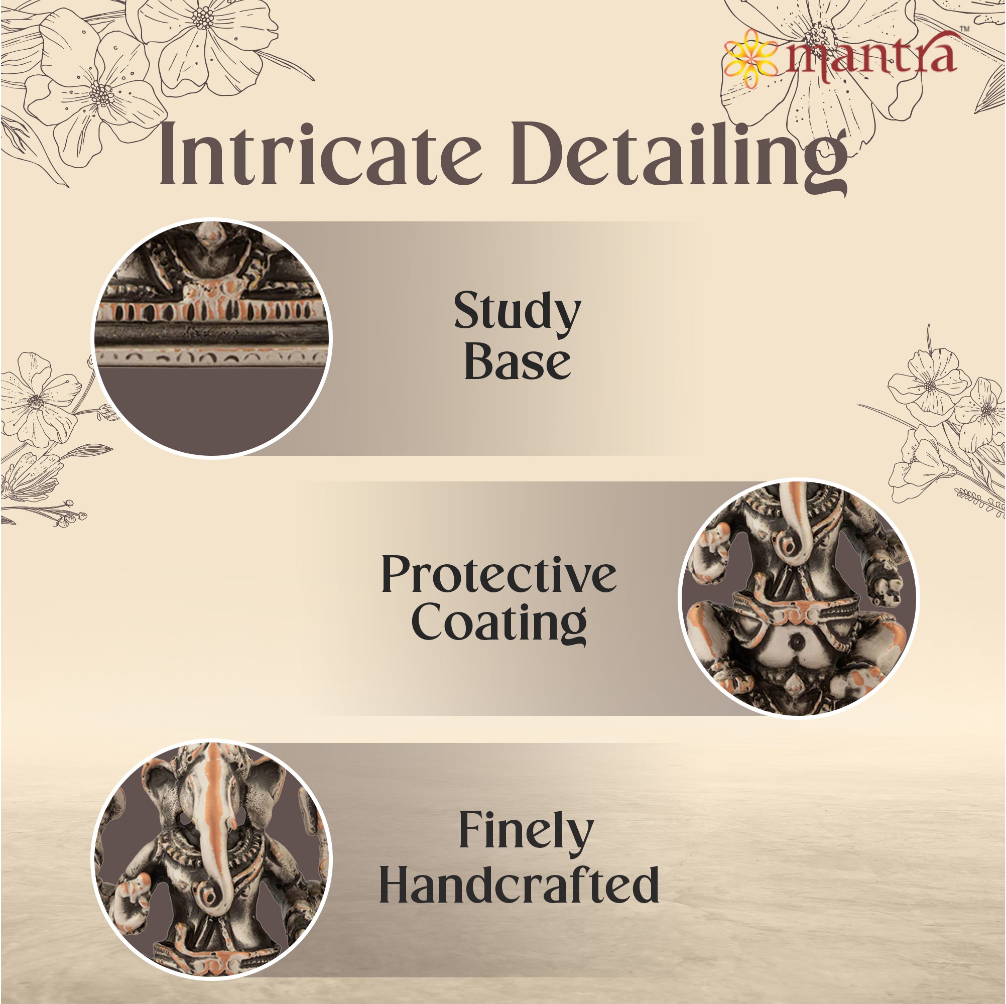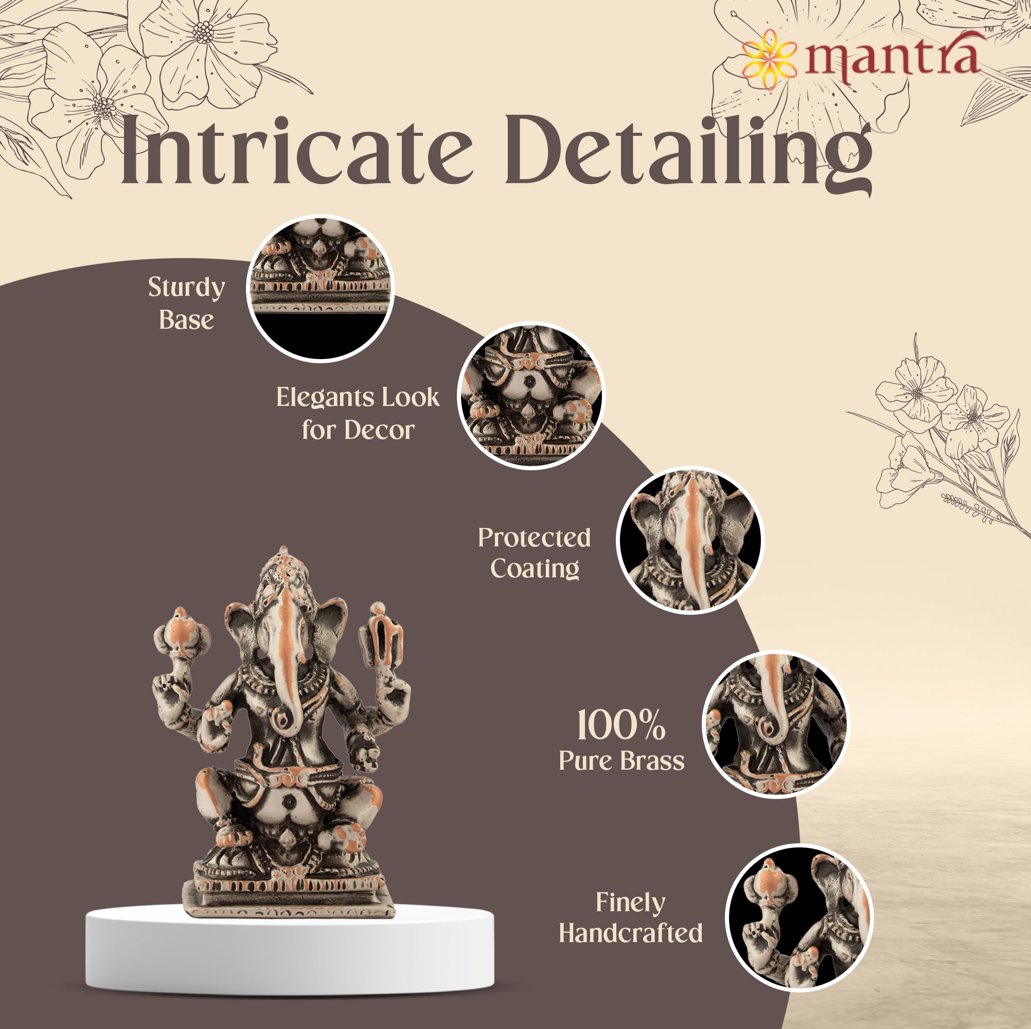 Exquisite Craftsmanship: Hand-crafted with meticulous attention to detail, This Ganesh ji murti is a stunning testament to the skill of Mantra’s expert artisans. This idol perfectly captures the divine essence of God Ganesha.